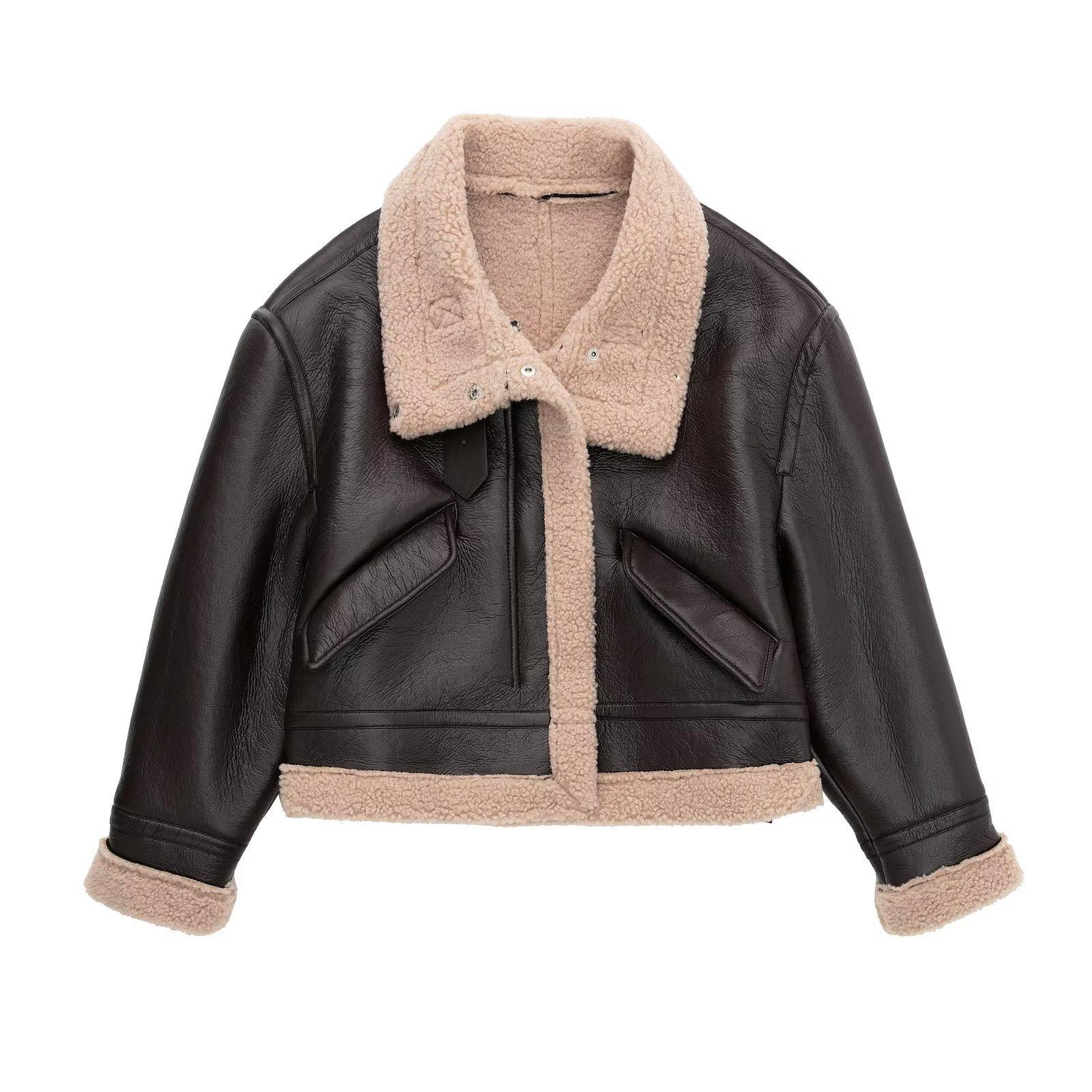 6001 Brown lambswool leather coat