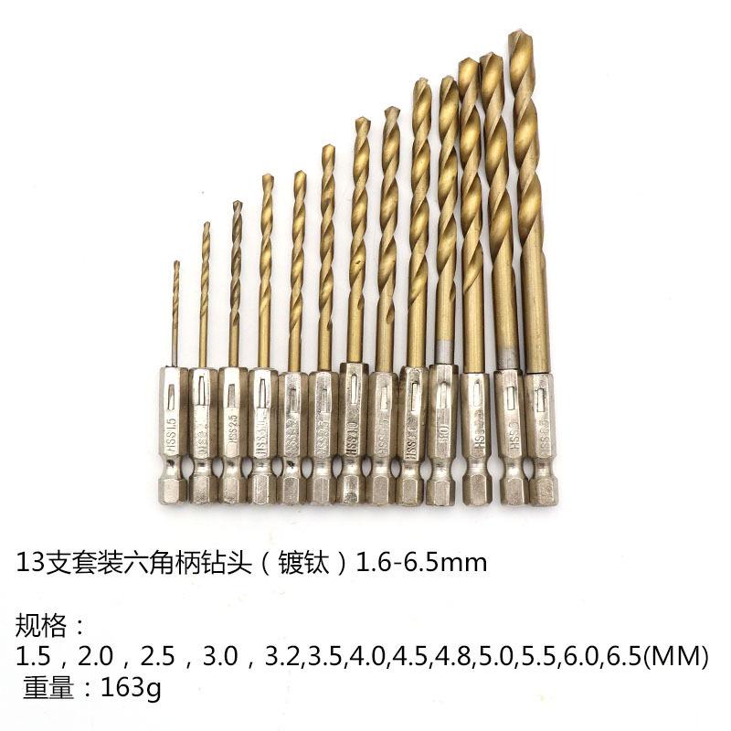 13 round handle titanium-plated drill bit 1.5-6.5mm, 13 PCs suit hex shank drill bit (titanium plated) 1.6-6.5...