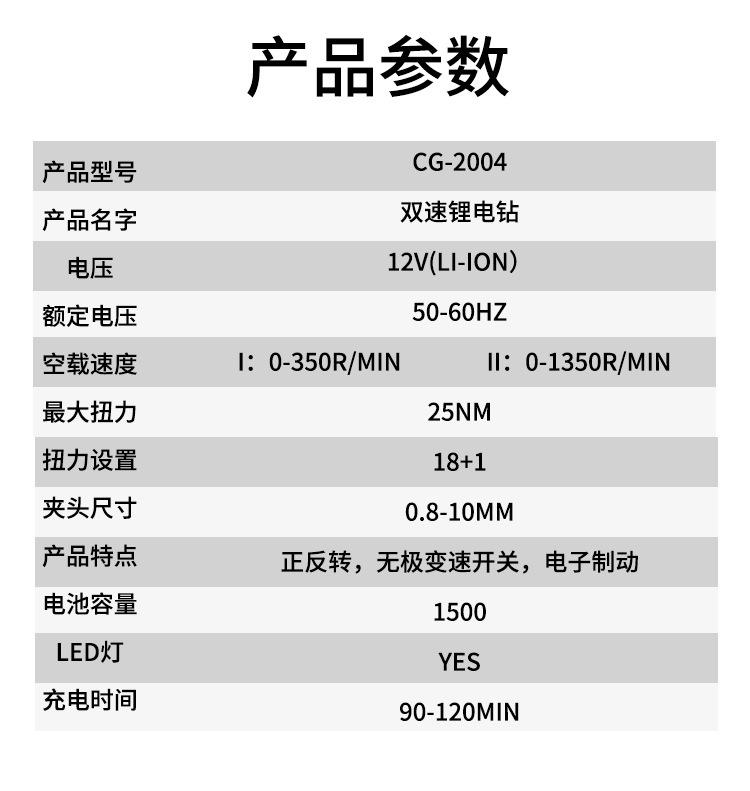 Taladro eléctrico de litio de dos velocidades CG2004, control de velocidad de múltiples velocidades, herramientas de hardware eléctrico para el hogar, taladro eléctrico de litio de alta potencia, taladro eléctrico manual