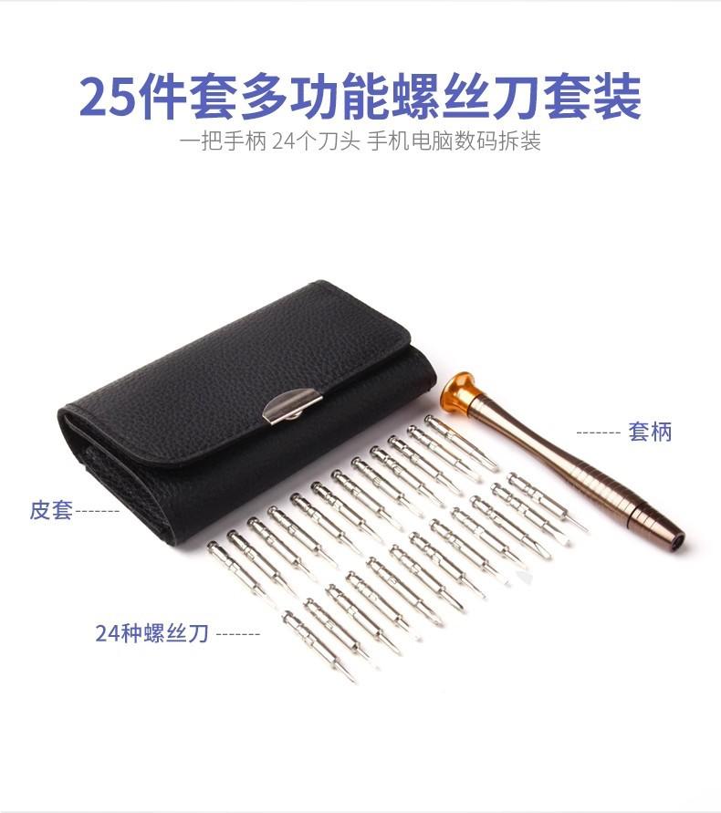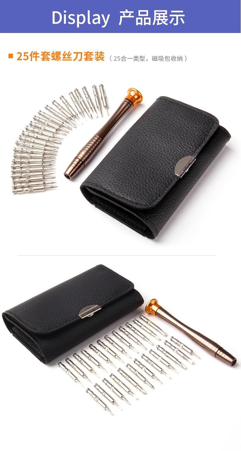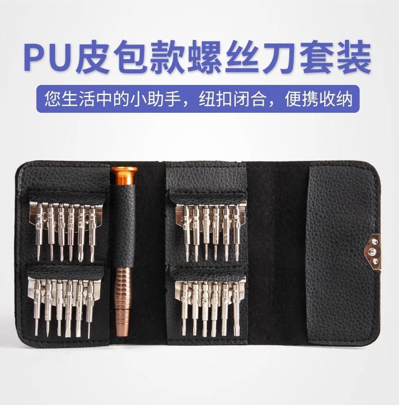 Estuche de cuero multiusos 25 en 1 para el hogar, destornillador manual, juego de herramientas para reparación de teléfonos móviles y portátiles