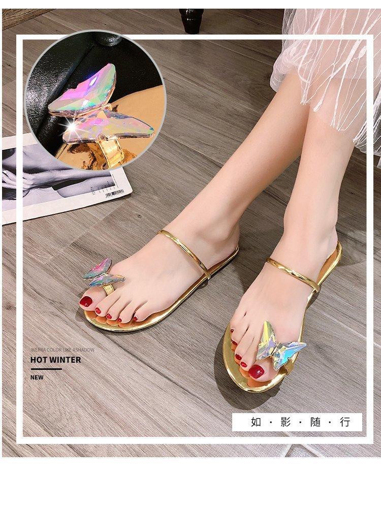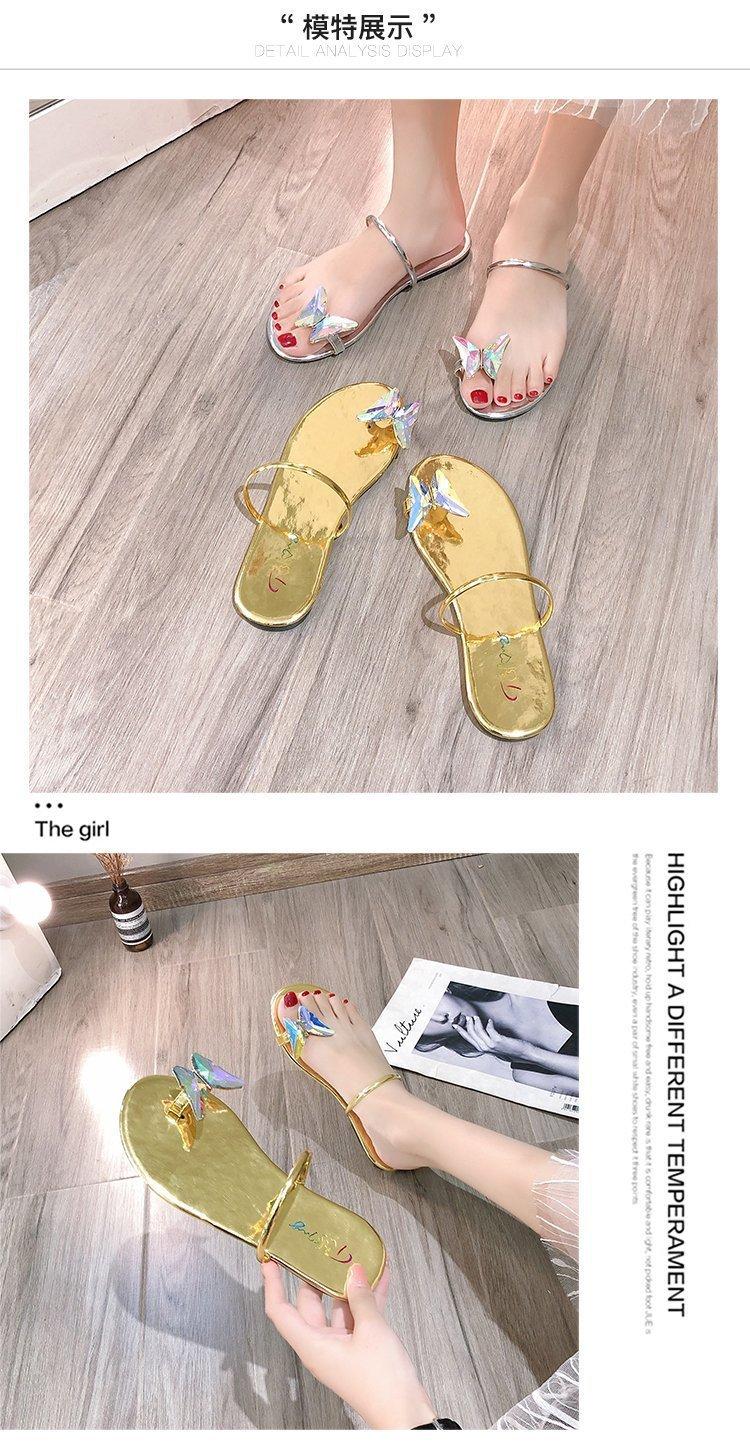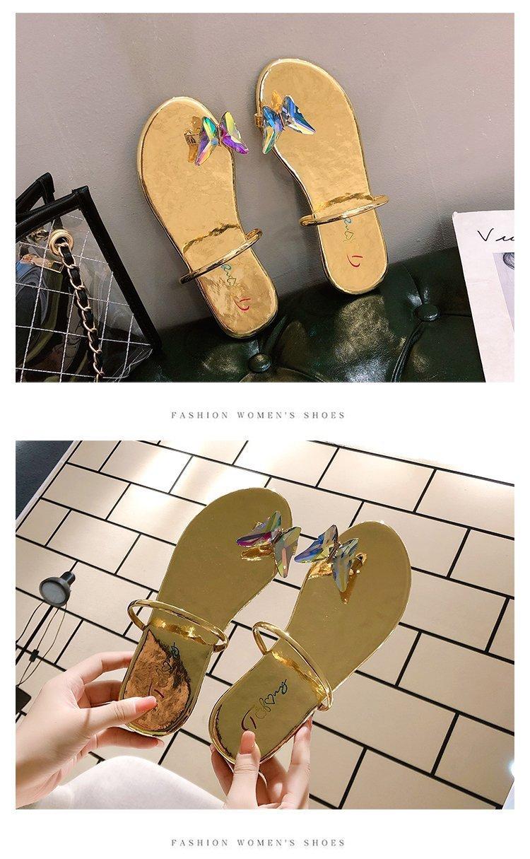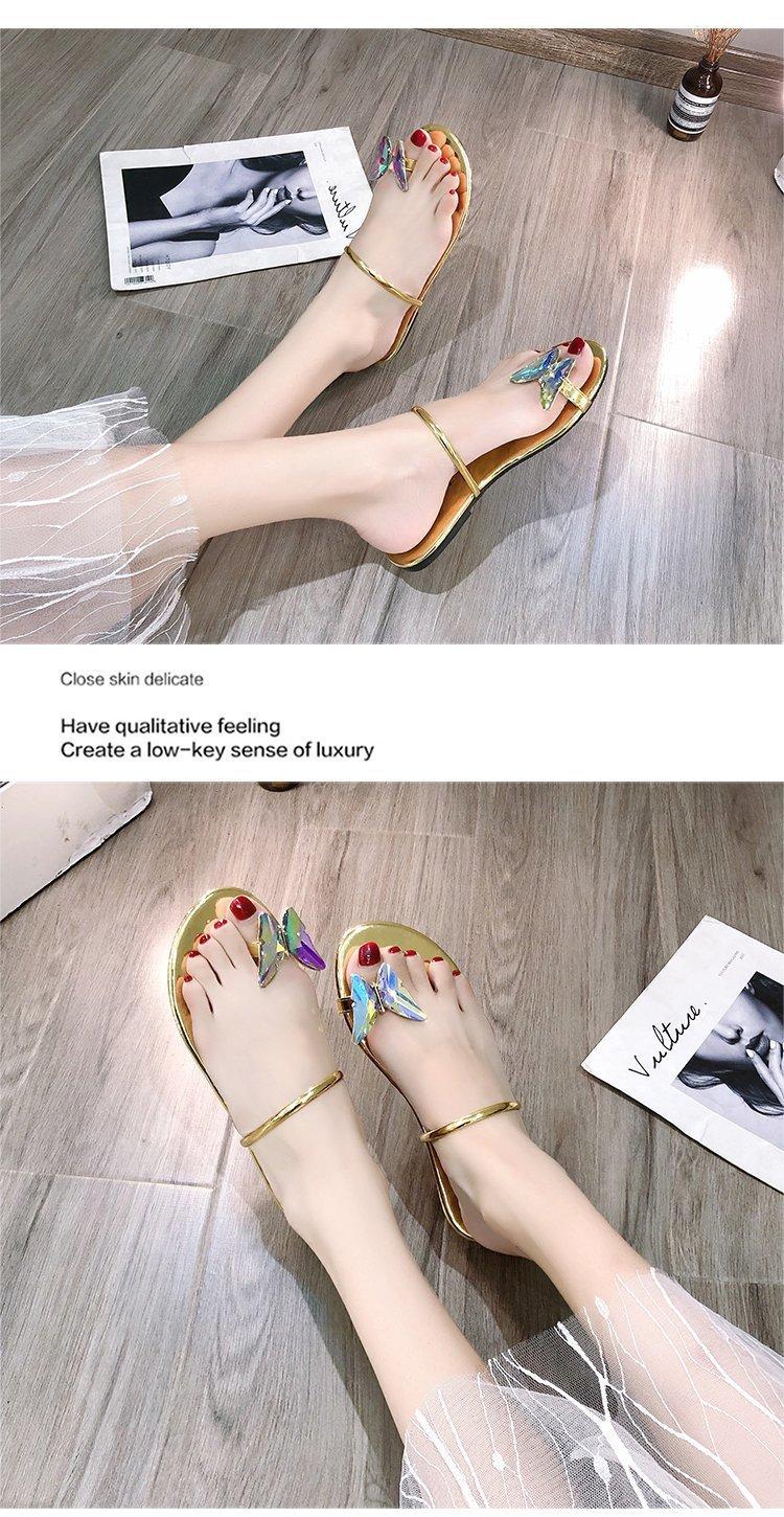 Sandalias de mariposa para mujer, planas, verano 2023, nuevas chanclas de hada para estudiantes, sandalias con diamantes de imitación, ropa exterior para mujer, venta al por mayor