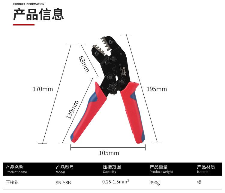 Alicates de crimpado SN-58B, alicates de crimpado de terminales de resorte de enchufe DuPont, alicates de crimpado de trinquete que ahorran mano de obra, conector de automóvil rápido