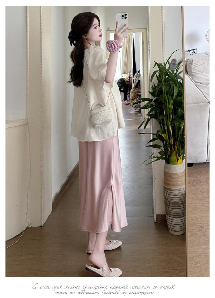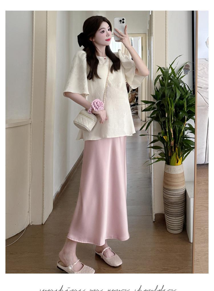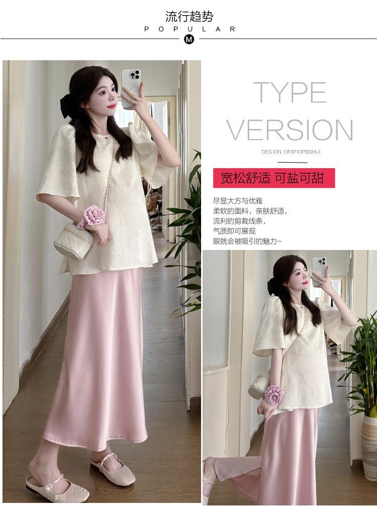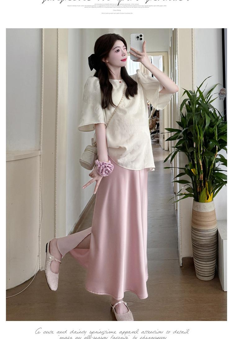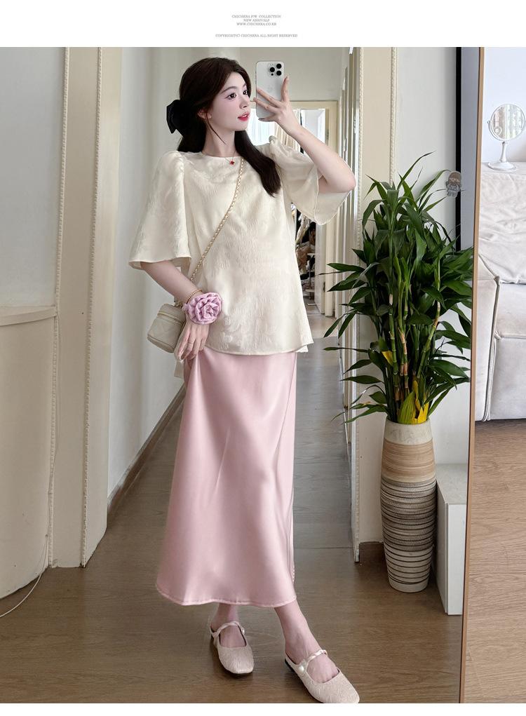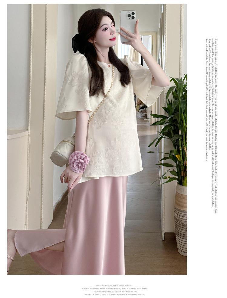 Apricot top, Pink skirt, Apricot top + pink skirt suit