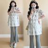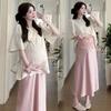 Una gran cantidad de stock de moda de verano de maternidad nuevo coreano suelto y cómodo traje de dos piezas para mujeres embarazadas