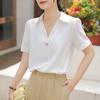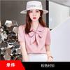 Camisa de Chifón Blanco de Verano para Mujer Diseño con Cordones Top Profesional de Manga Corta Camisa con Lazo de Temperamento
