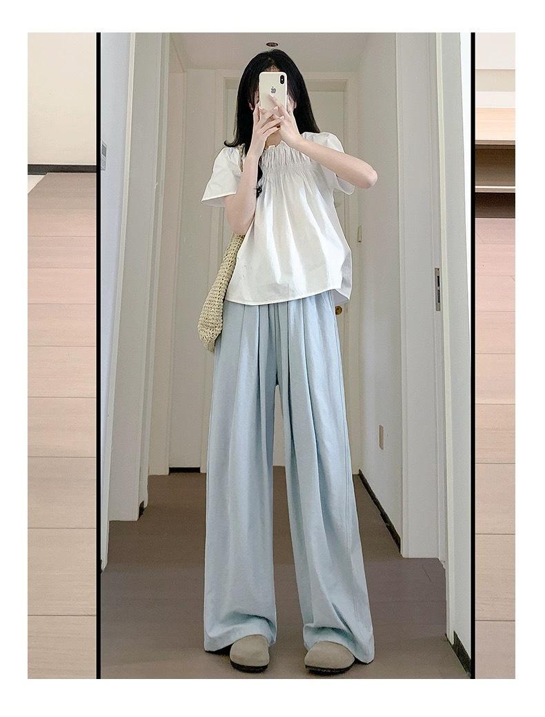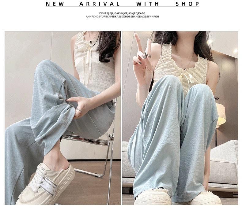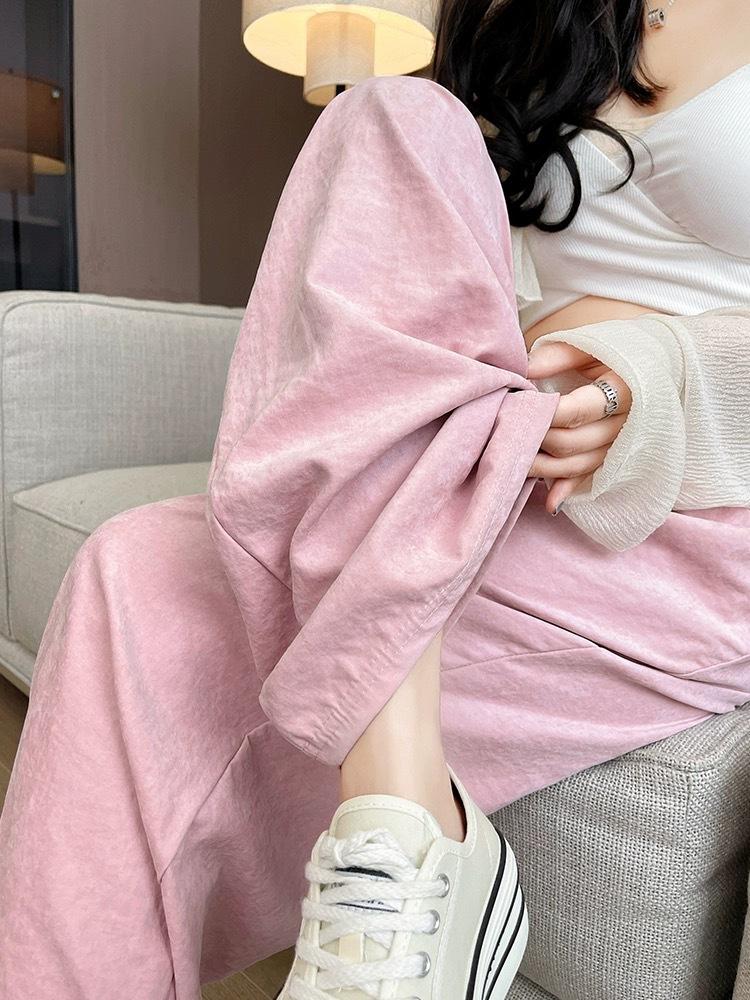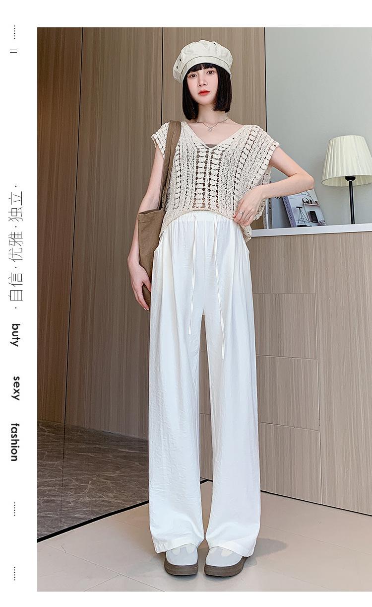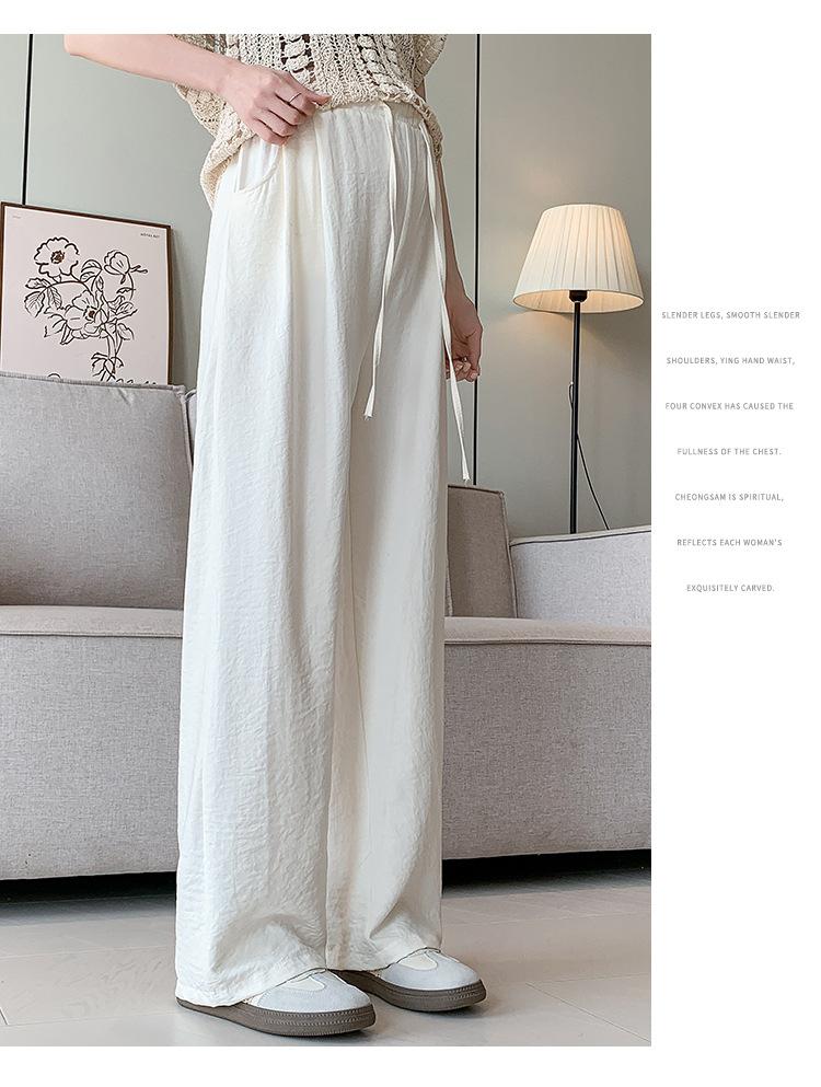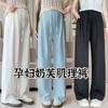 Pantalones de Mujer Embarazada Pantalones de Leche Verano Delgados Dosificación Casual Tubo Recto Textura Abdominal No Soportante Seda Helada Pantalones de Pierna Ancha para Mujer Embarazada