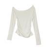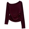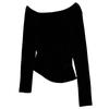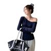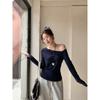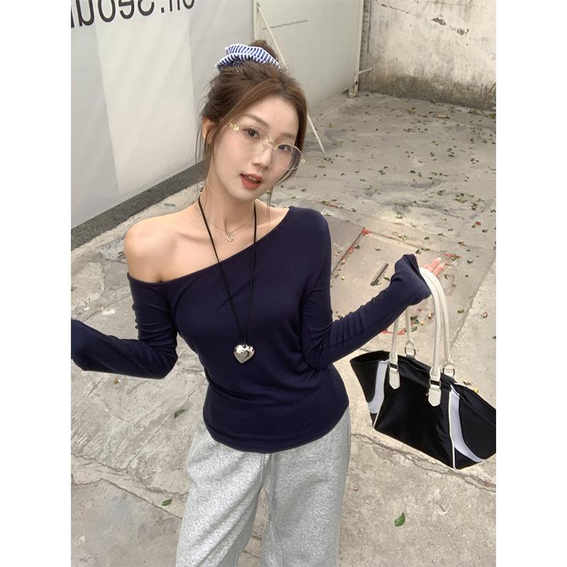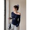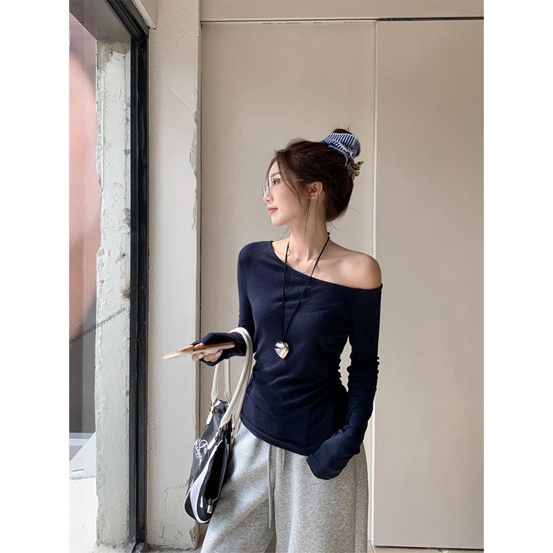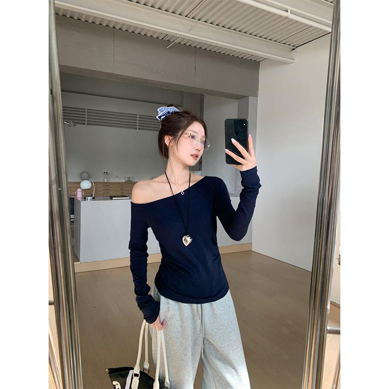Playera de Manga Larga con Hombro Inclinado Asimétrico de Ajuste Ceñido para Mujer Otoño 2025 Deseo Puro Cuello de Un Hombro Top Descubierto