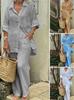 Amazon 2026 Primavera y Verano Nuevo Comercio Transfronterizo Comercio Exterior Ropa de Mujer Solapa Manga Larga Cárdigan Top y Pantalones Conjunto de Dos Piezas