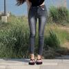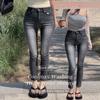 Pantalones ajustados de estilo coreano, estilo retro, de moda, color blanco, diseño de verano 2024, cintura alta, ajustados, adelgazantes, elásticos, para mujer.