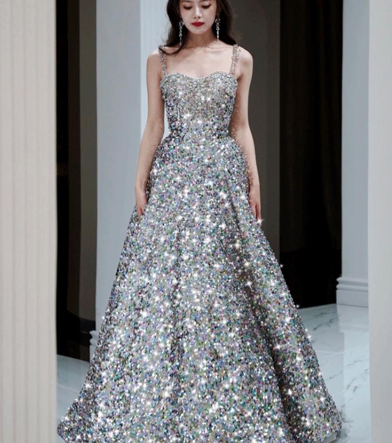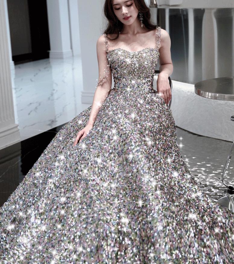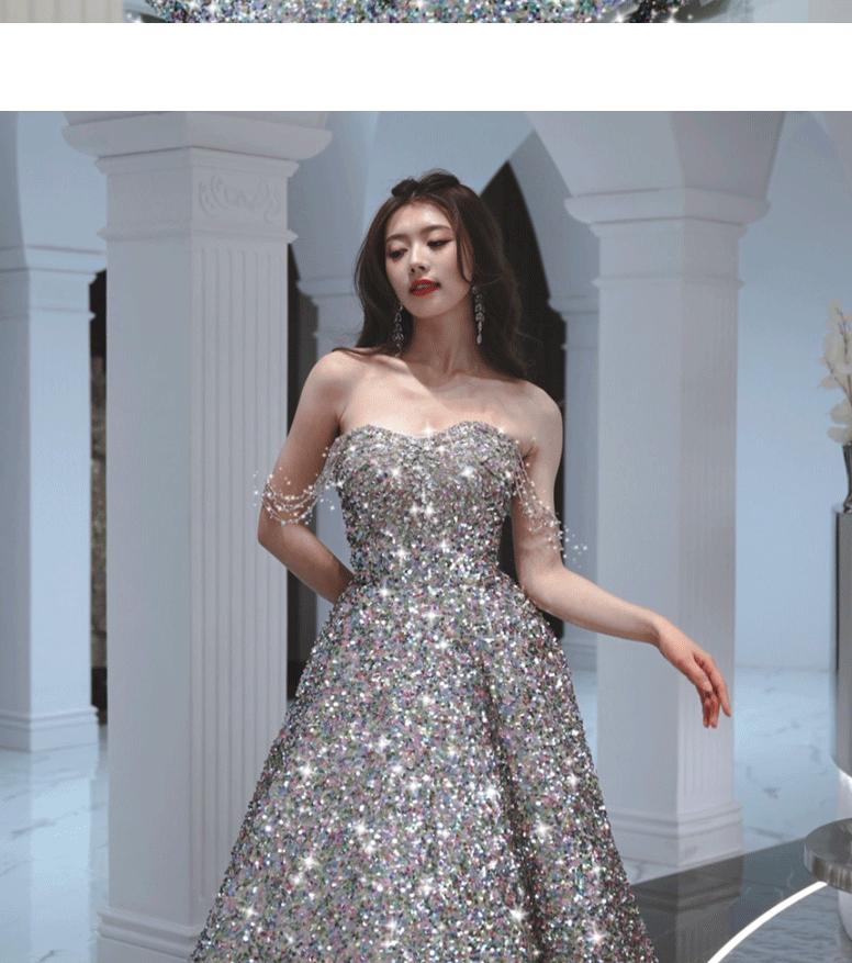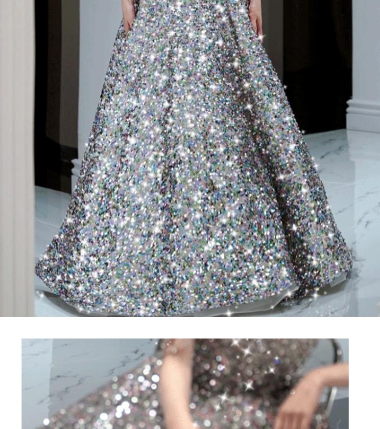 Vestido de noche estrellado con lentejuelas estilo europeo y americano lujo ligero elegante fiesta socialité anfitrión Reunión Anual vestido de novia vestido de brindis novia