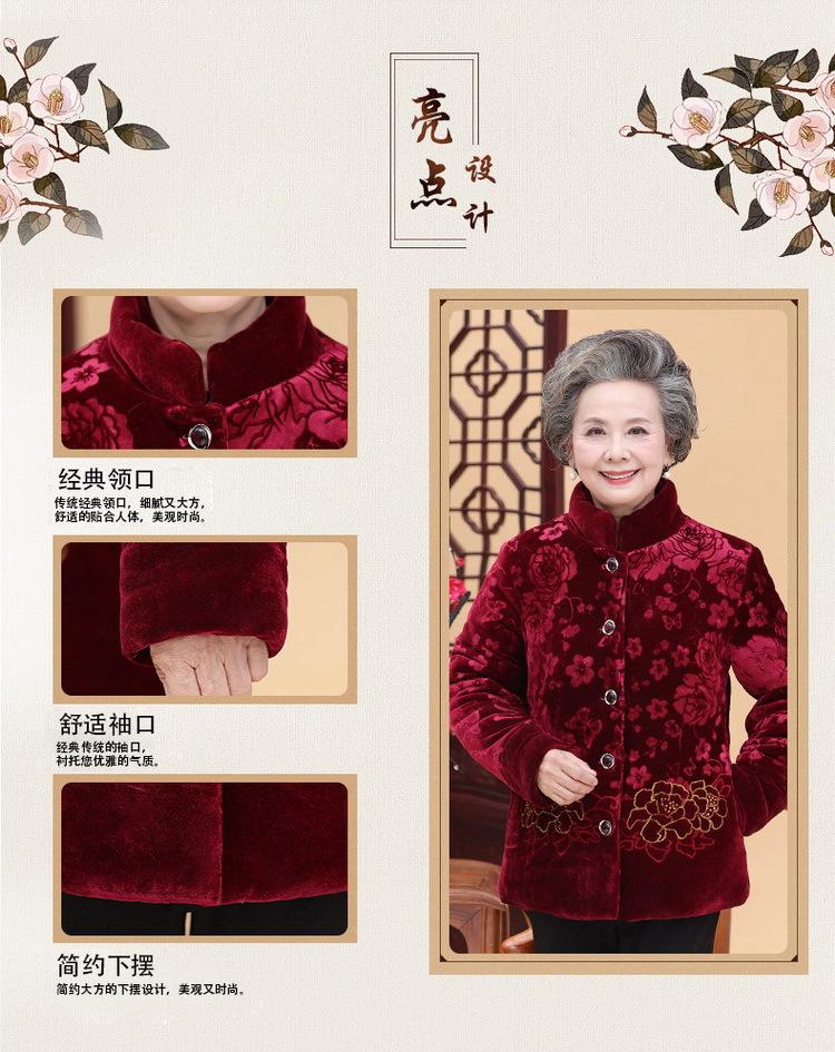 Chamarra acolchada de algodón para hombre mayor, chamarra acolchada de algodón para madre, chamarra acolchada de algodón de terciopelo dorado para abuela, gruesa, para 60-70-80 años, ropa de invierno para mujer