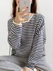 Playera a Rayas para Mujer de Manga Larga Otoño Top Holgado Ropa Exterior Estilo Coreano Otoño Ropa de Madre Otoño Versátil Camiseta de Fondo