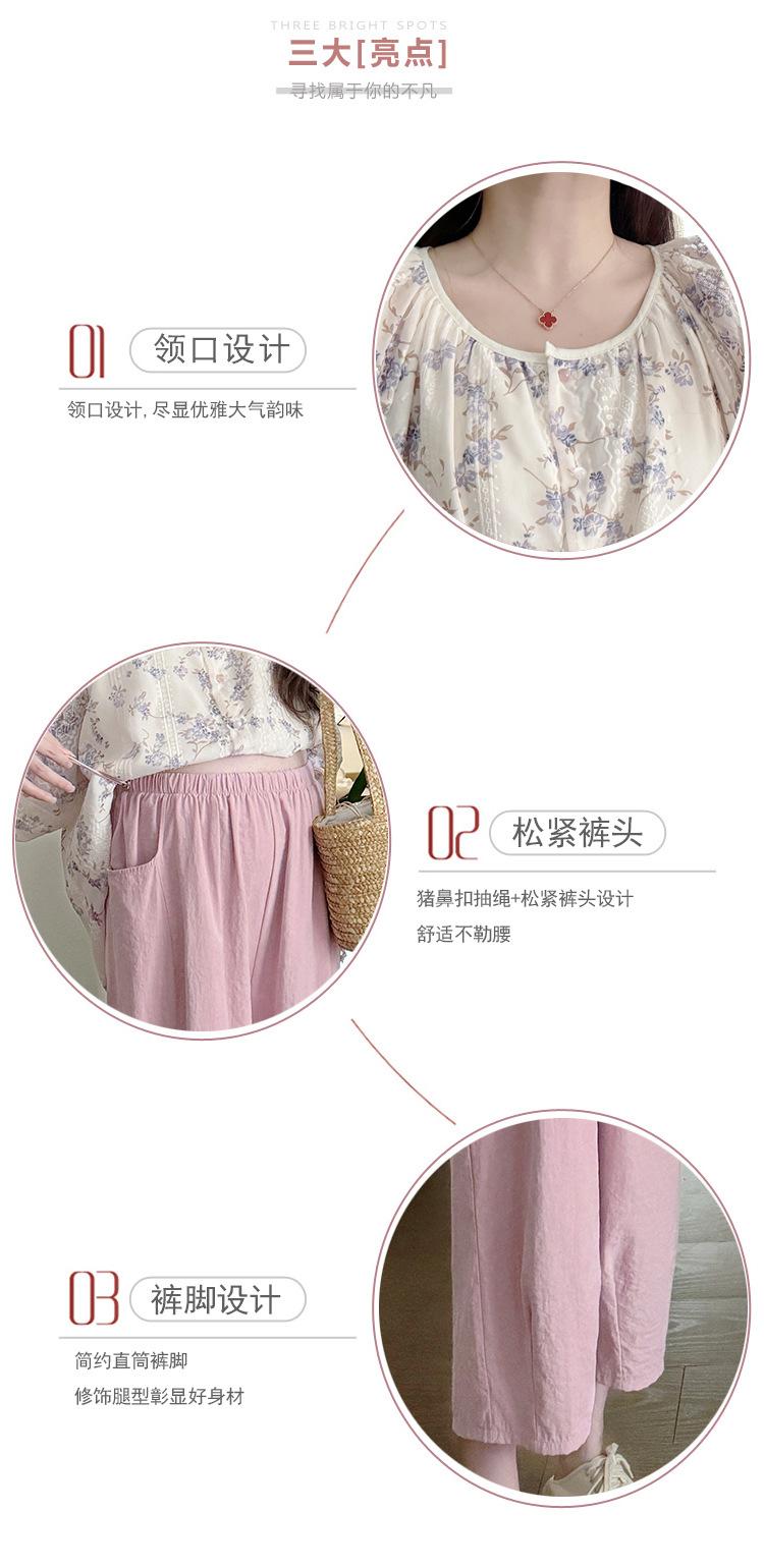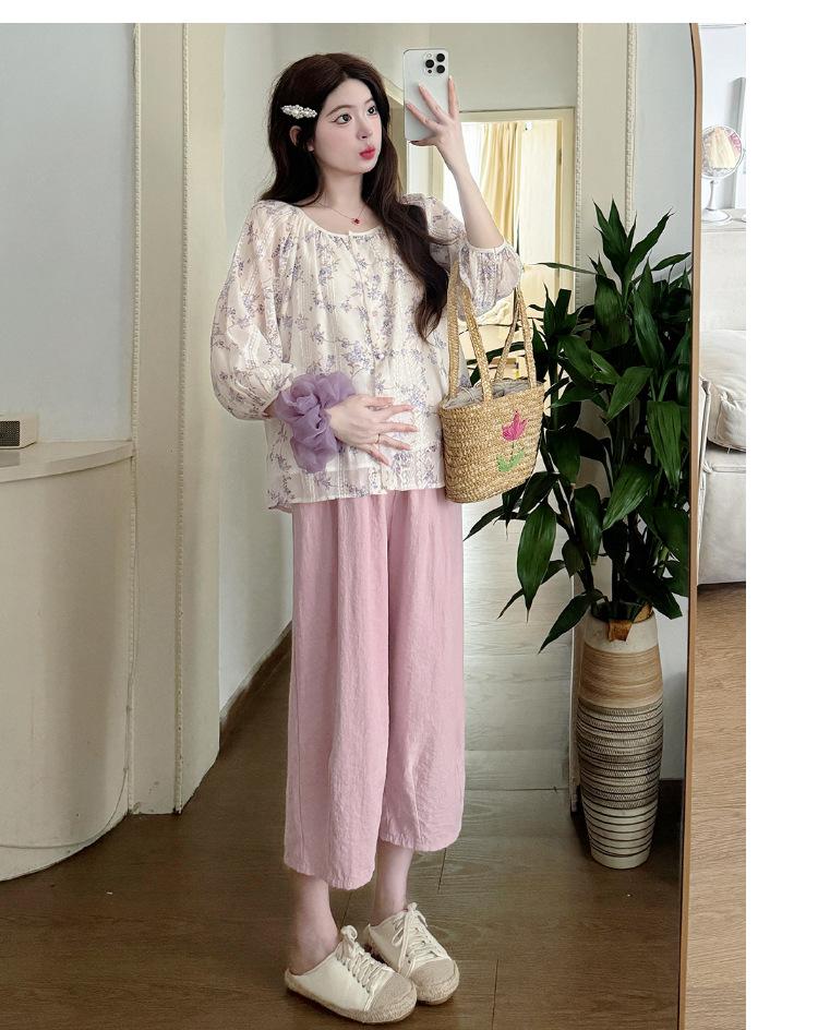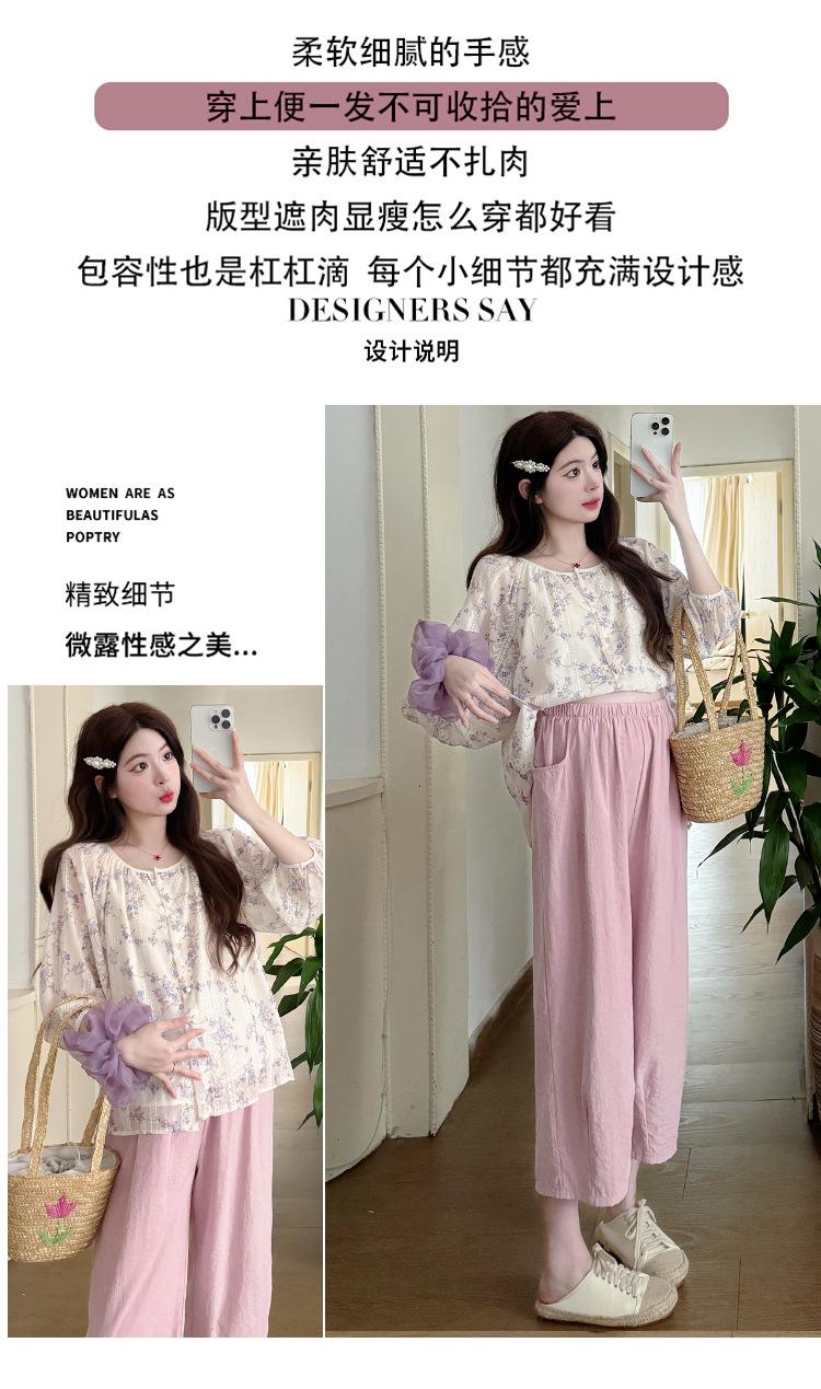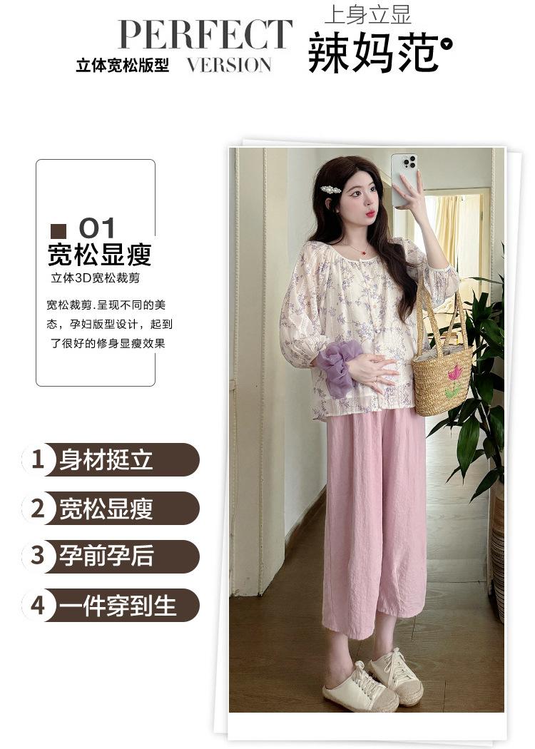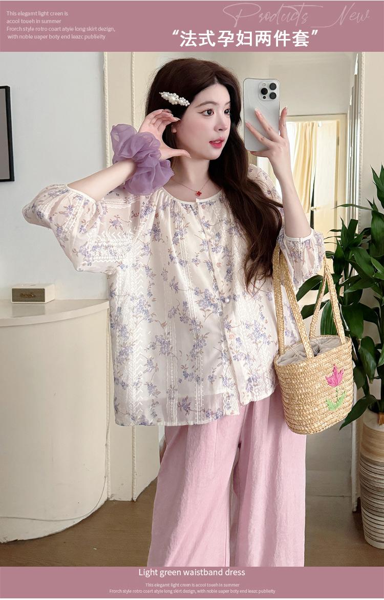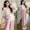 En stock, traje de mujer embarazada, nueva moda de verano, suelto, dulce, bordado, parte superior, cordón lateral, pantalones de mujer embarazada, traje de dos piezas