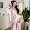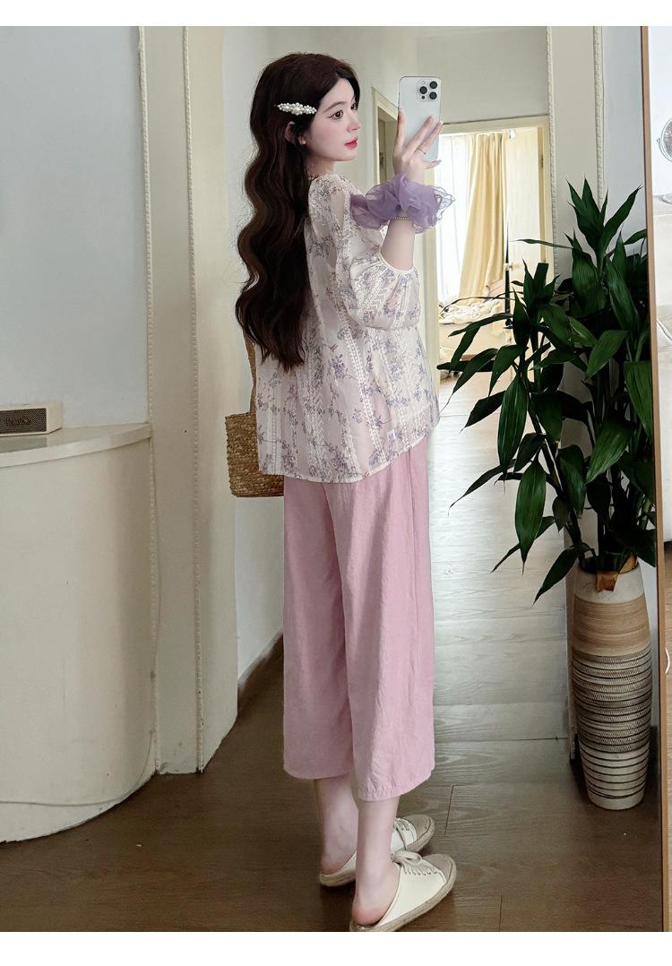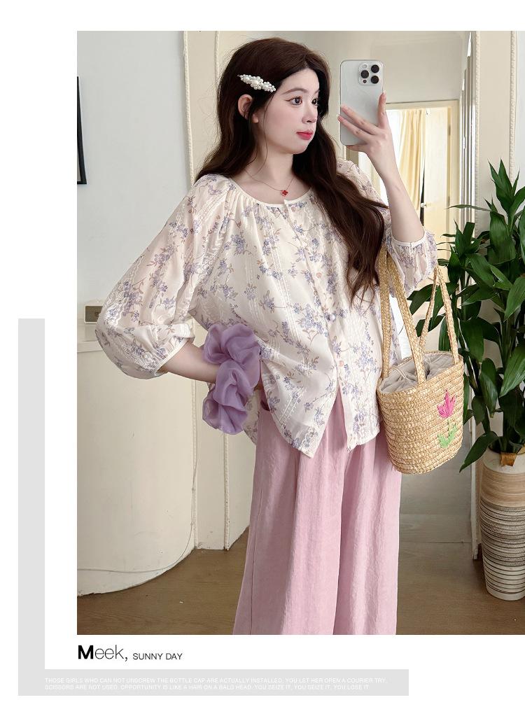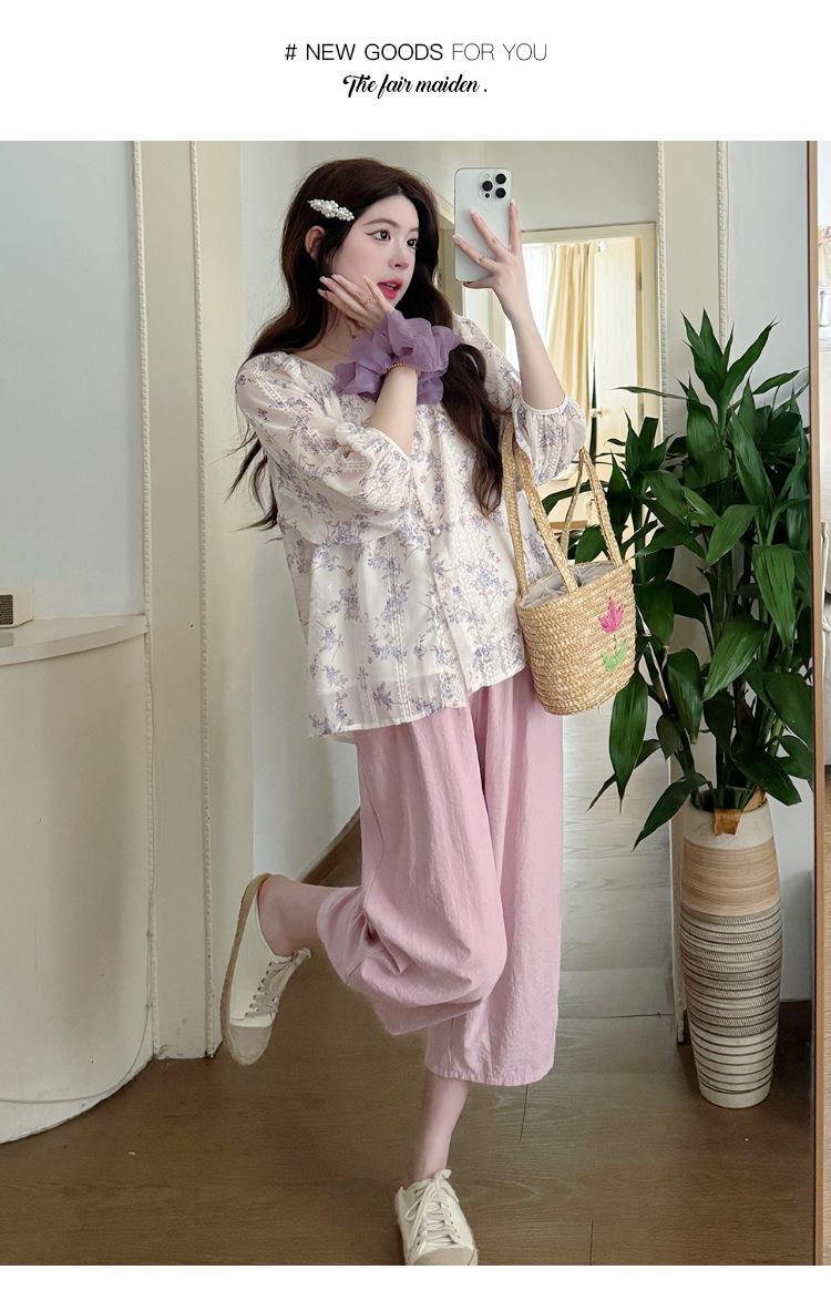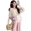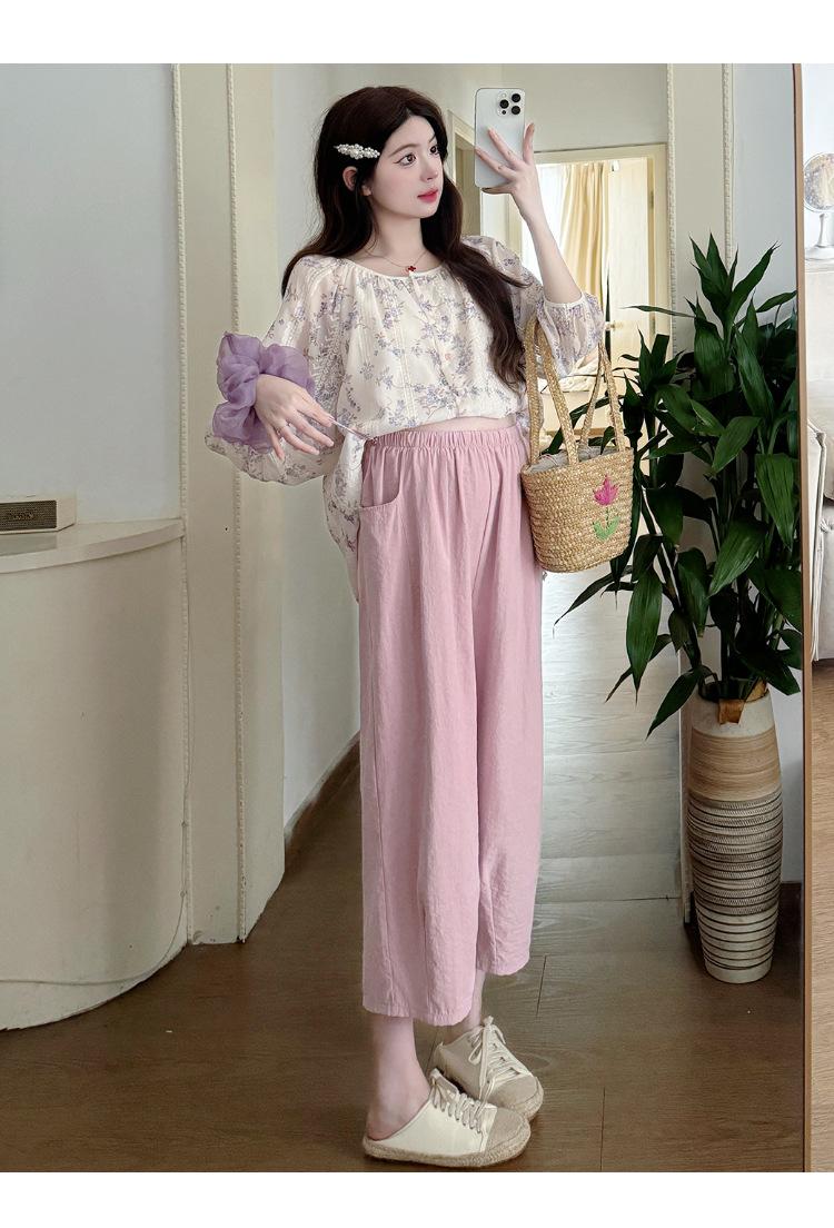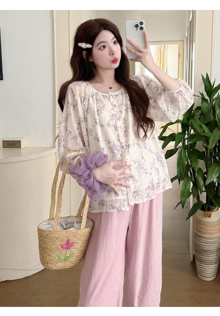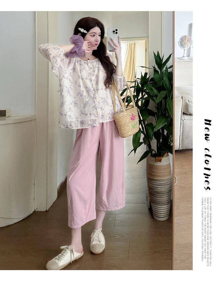 En stock, traje de mujer embarazada, nueva moda de verano, suelto, dulce, bordado, parte superior, cordón lateral, pantalones de mujer embarazada, traje de dos piezas