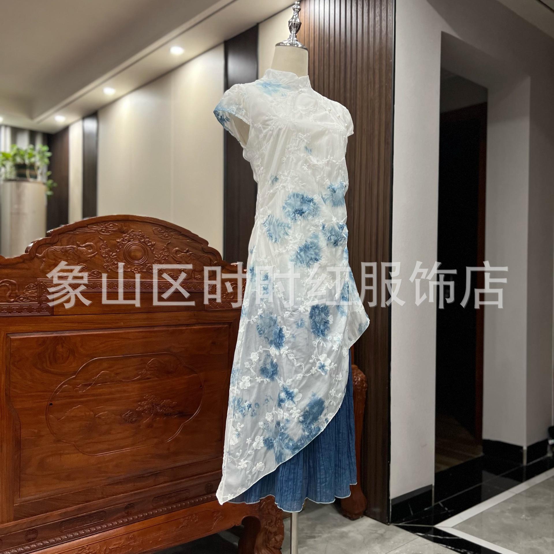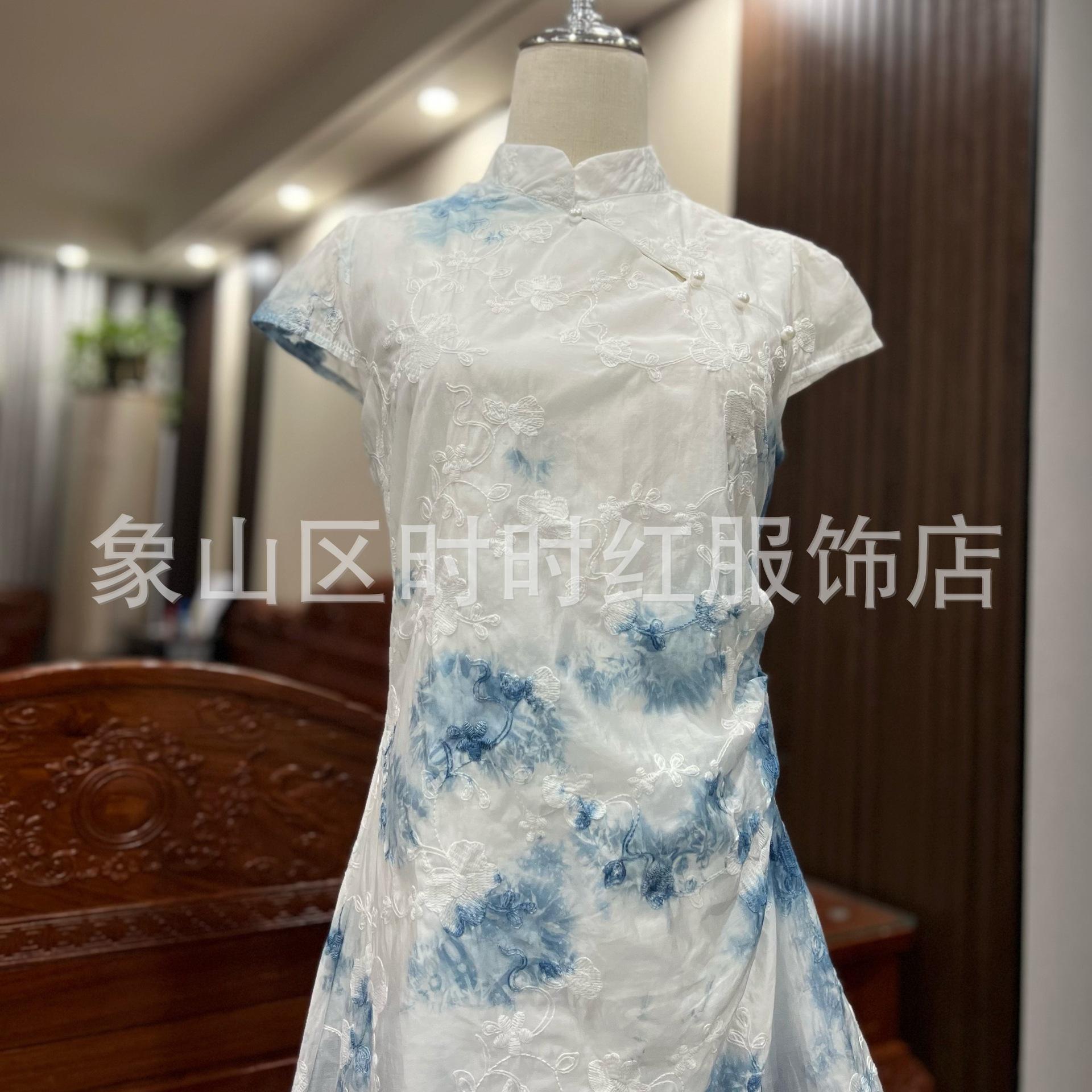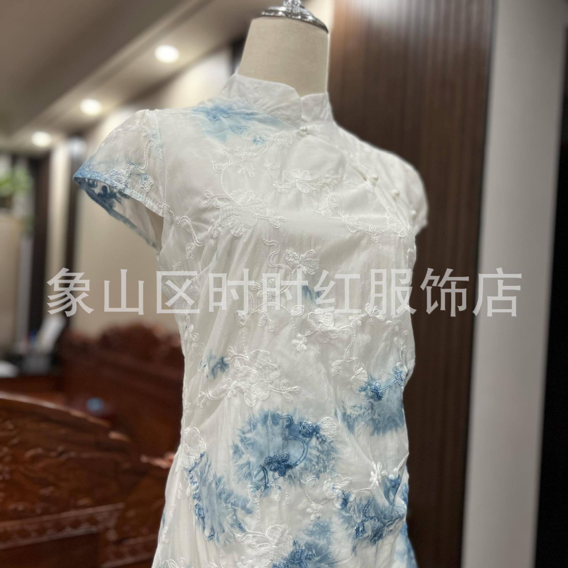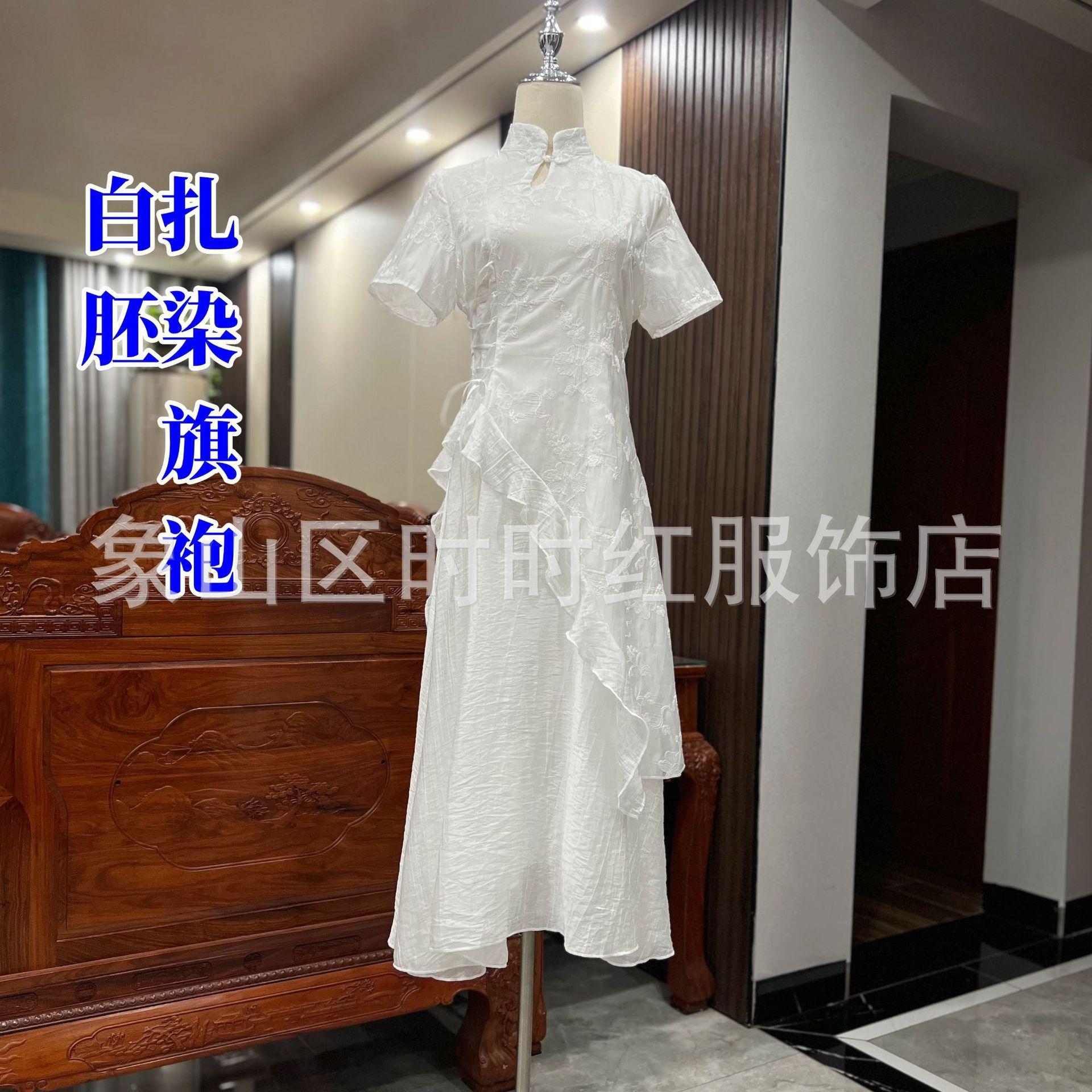 Tie-dye cheongsam skirt, White embryo cheongsam skirt, White cheongsam, Tie-dye cheongsam