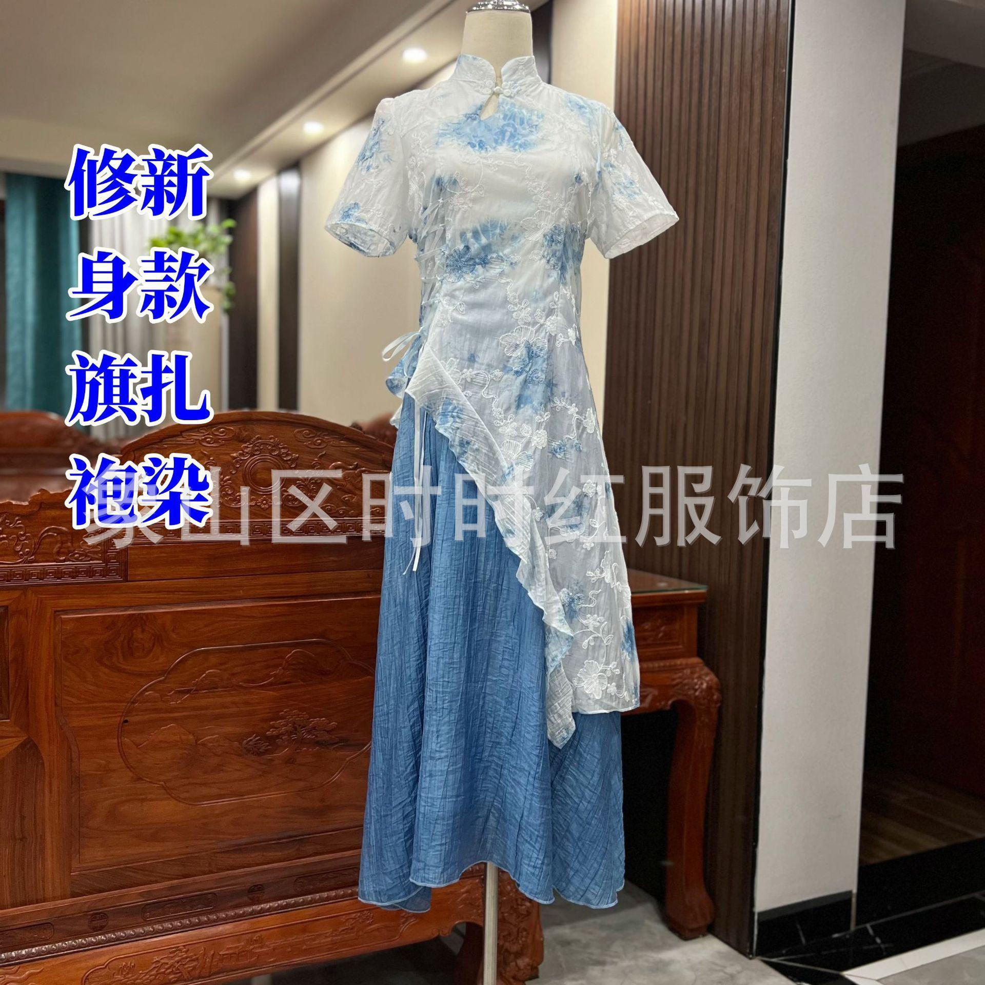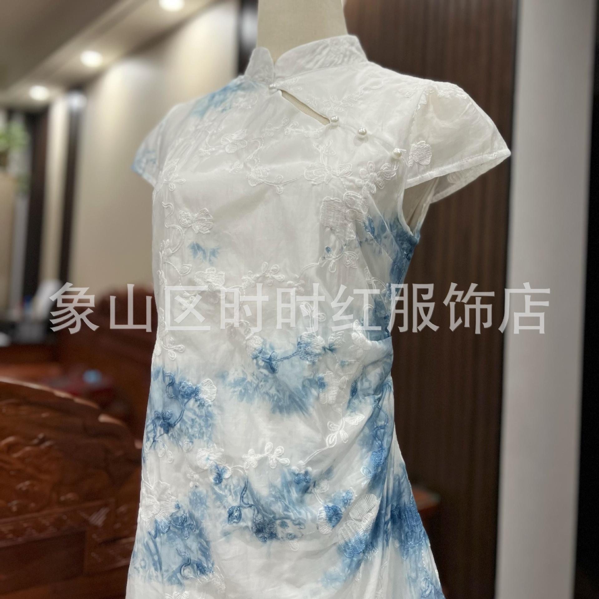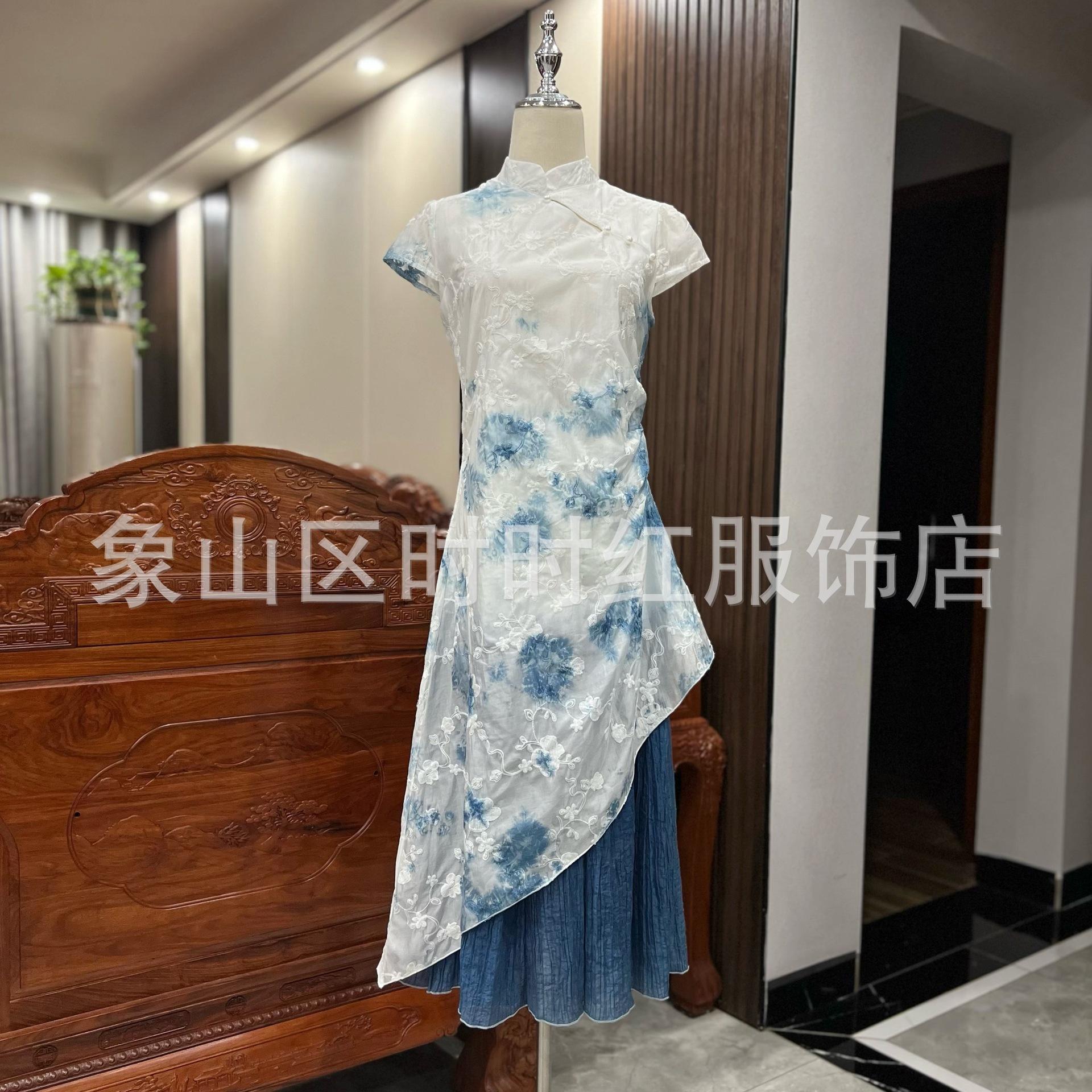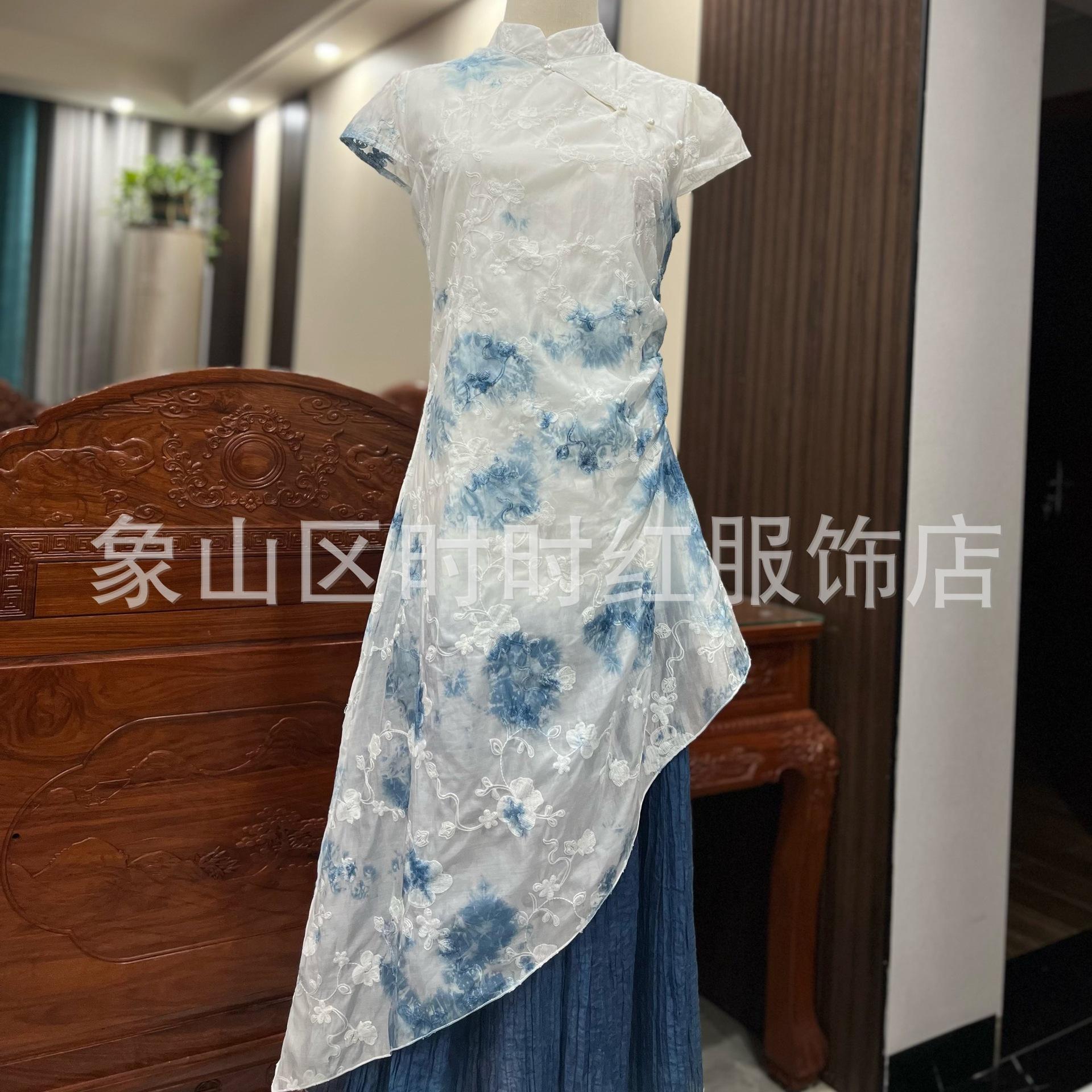 Tie-dye cheongsam skirt, White embryo cheongsam skirt, White cheongsam, Tie-dye cheongsam