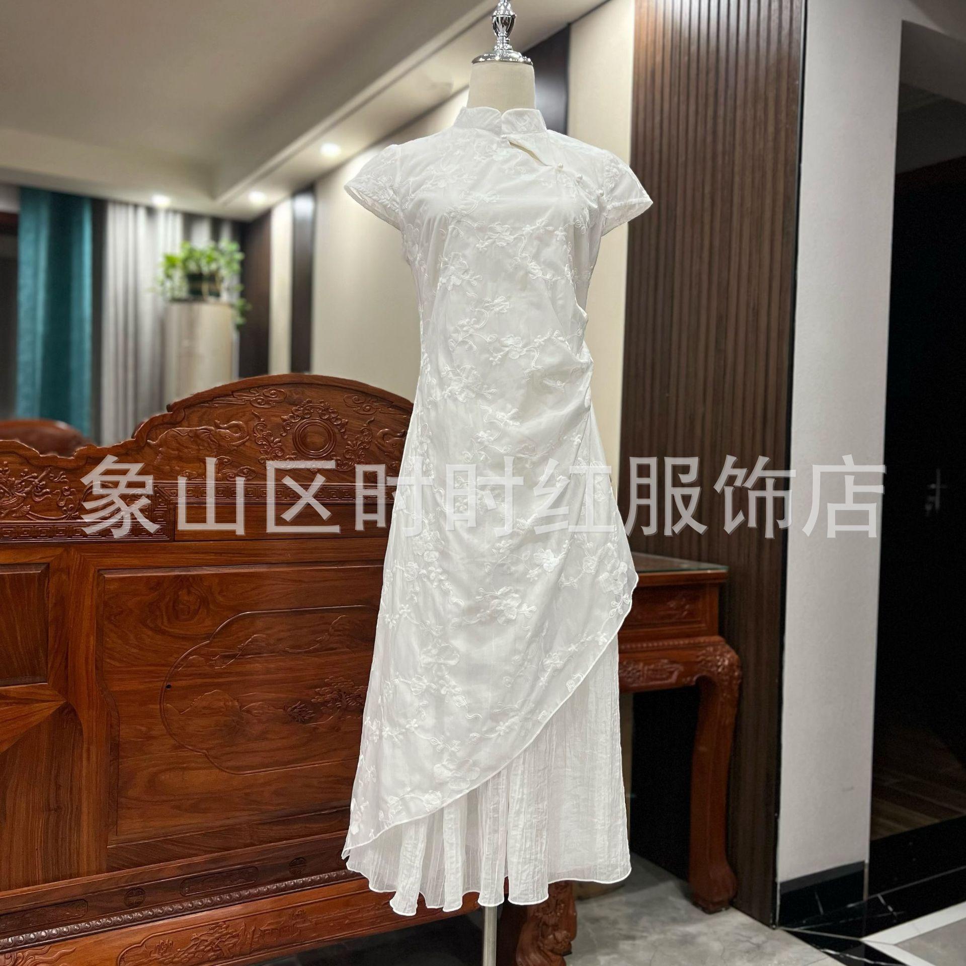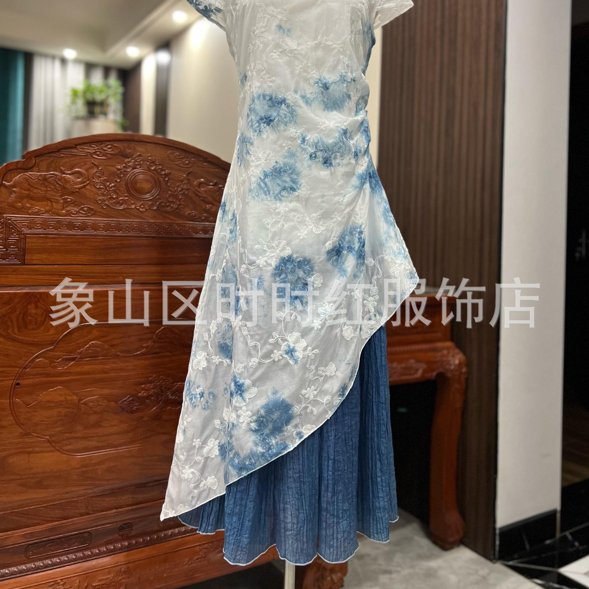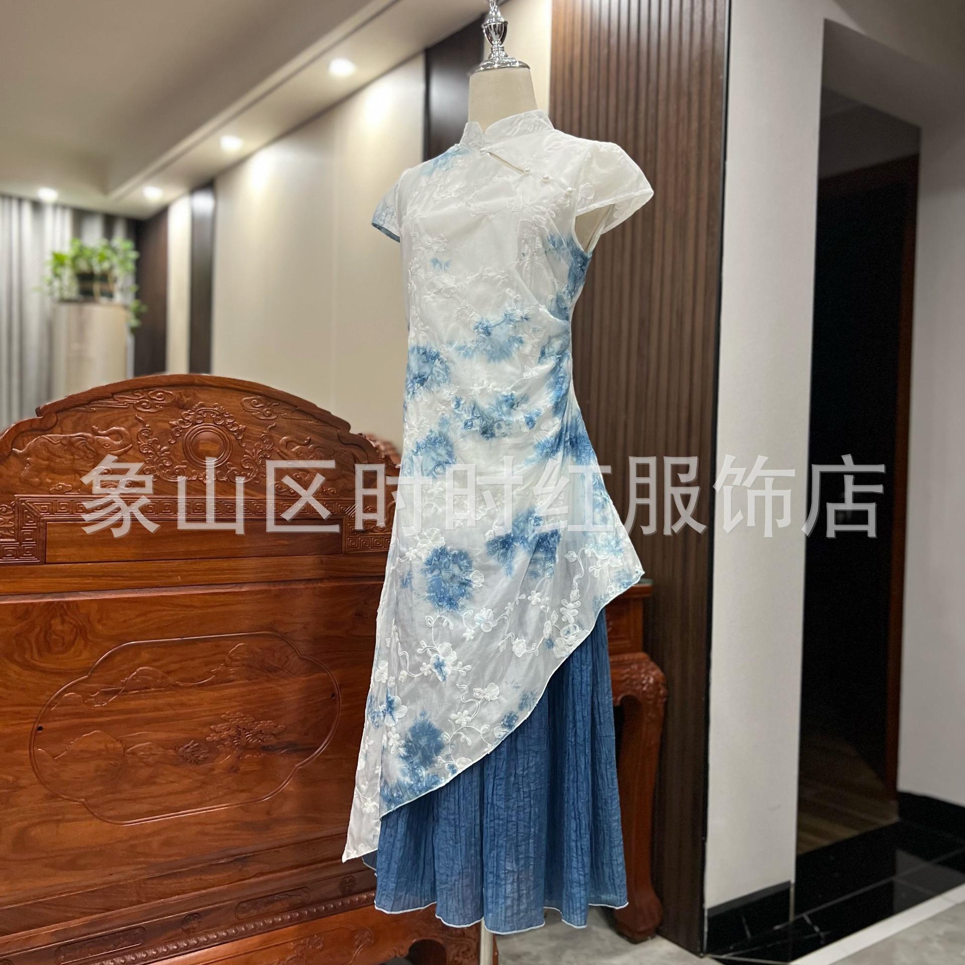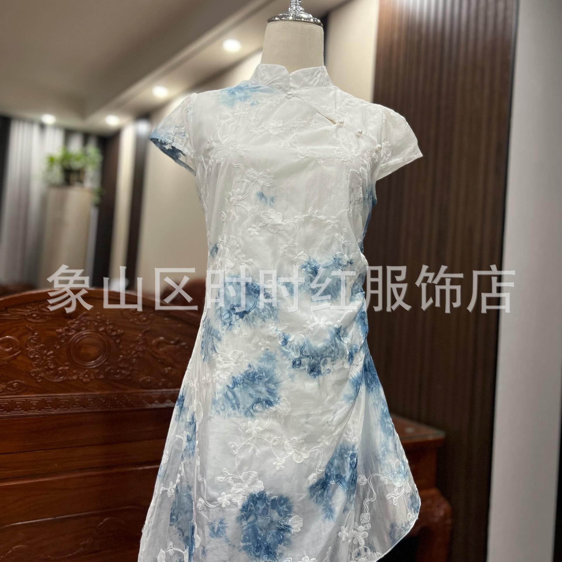 Tie-dye cheongsam skirt, White embryo cheongsam skirt, White cheongsam, Tie-dye cheongsam