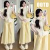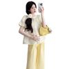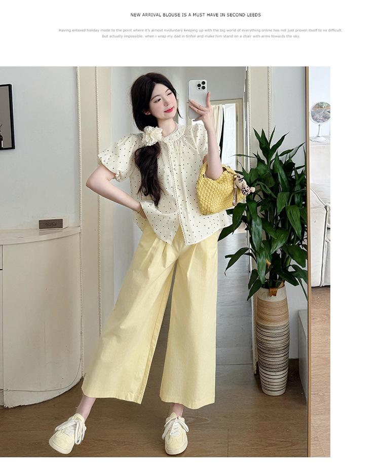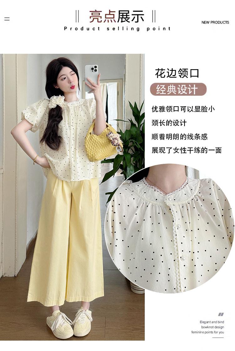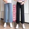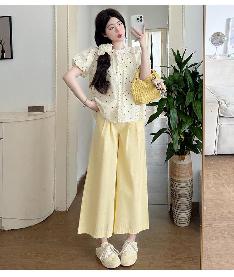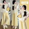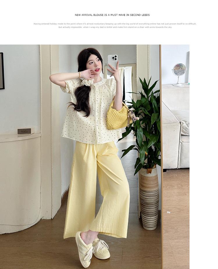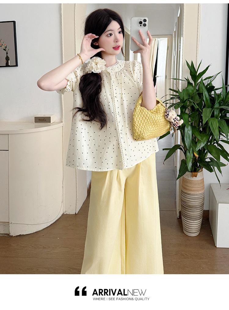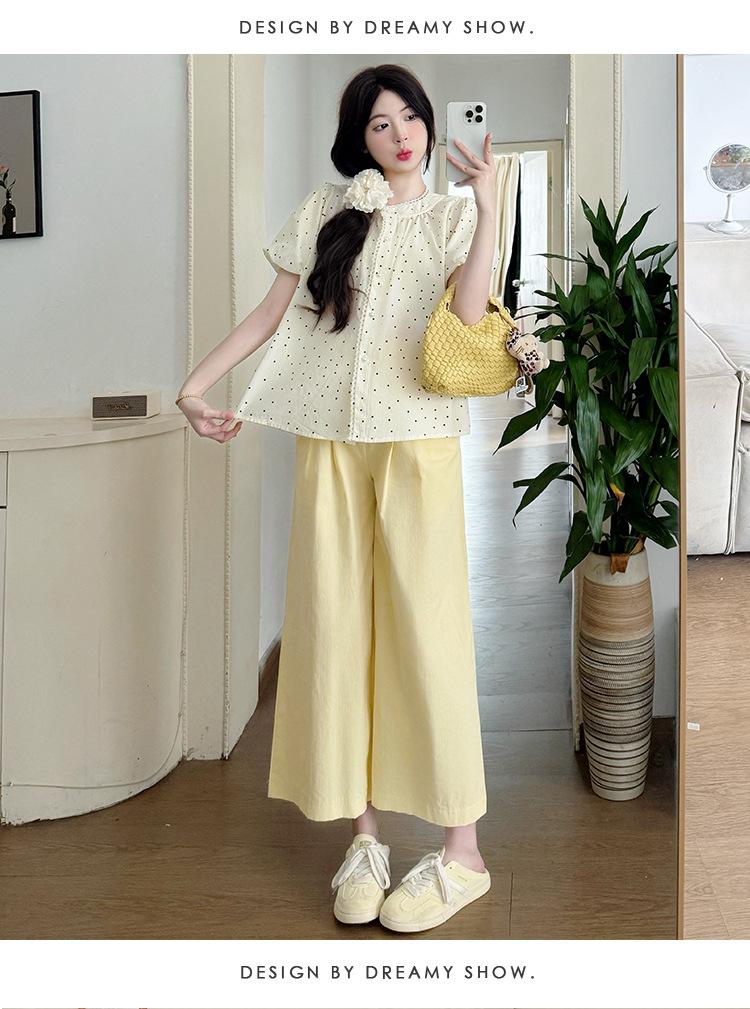 Vestido de verano 2025 para embarazadas, traje coreano dulce y bonito, top de punto tipo polo, pantalones anchos de pierna amarillo leche para embarazadas, conjunto de dos piezas