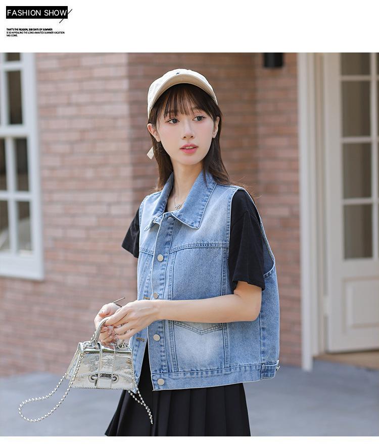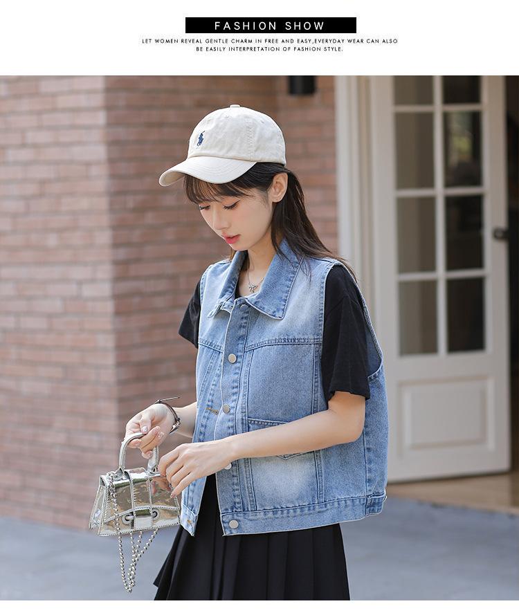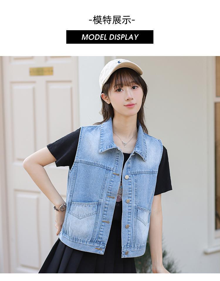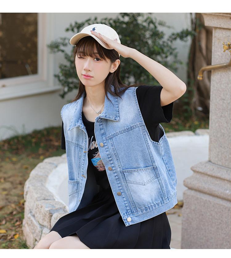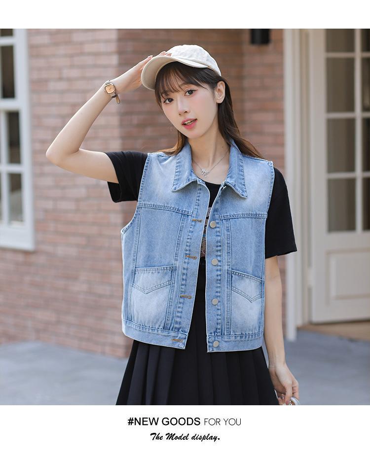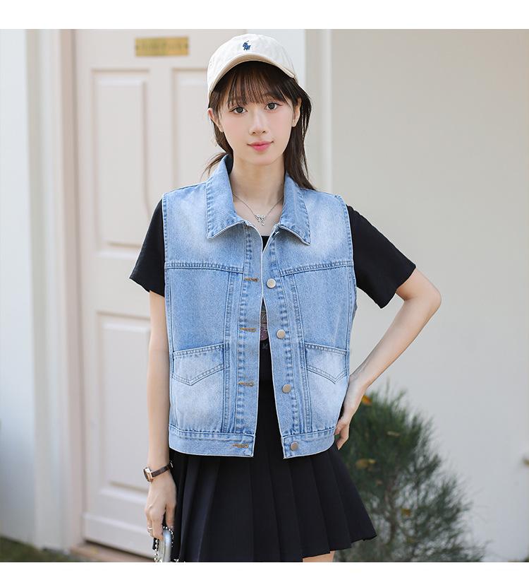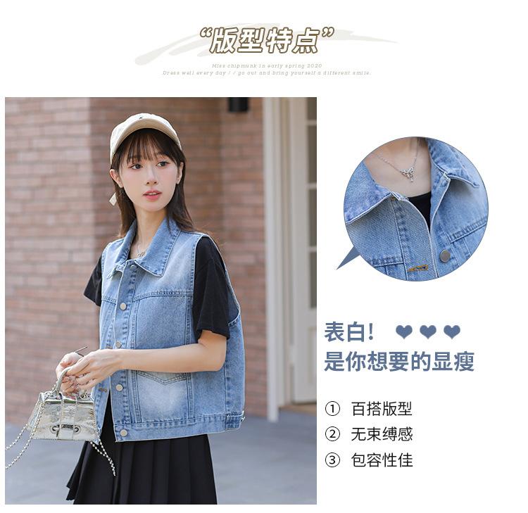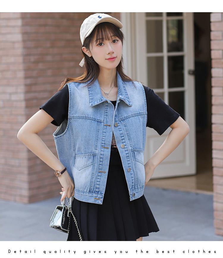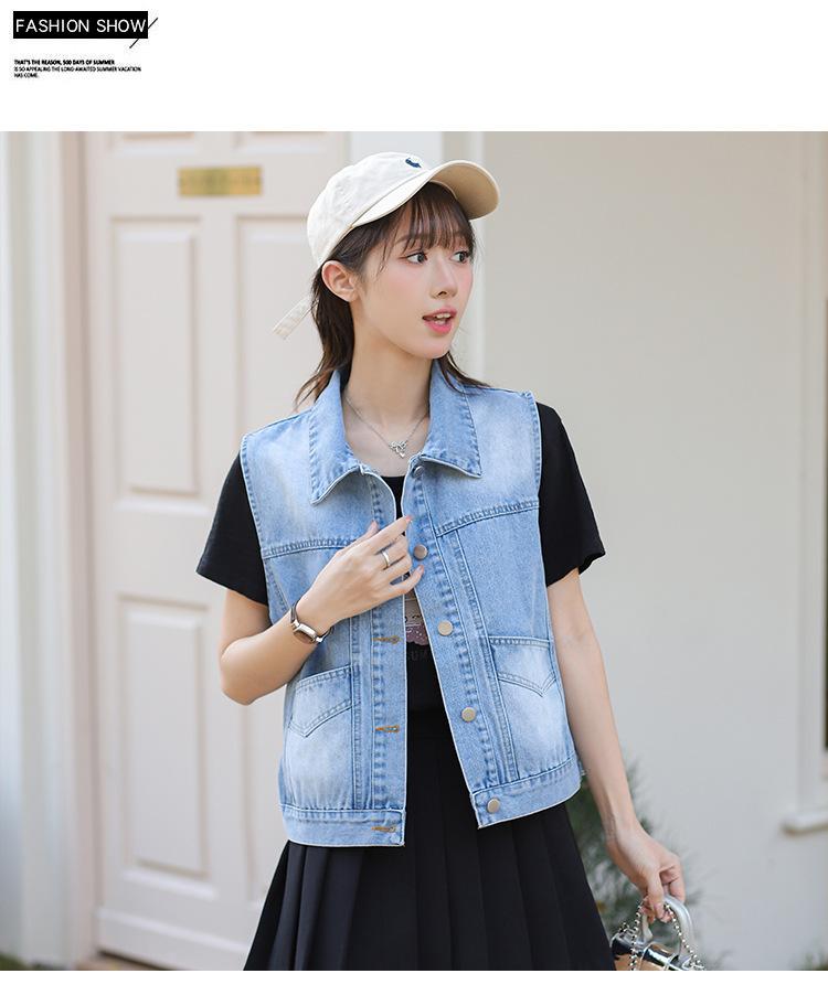 Chaleco vaquero de bolsillo para mujer, estilo coreano, vintage, lavable, holgado, combinable, a la moda, primavera y verano 2025