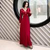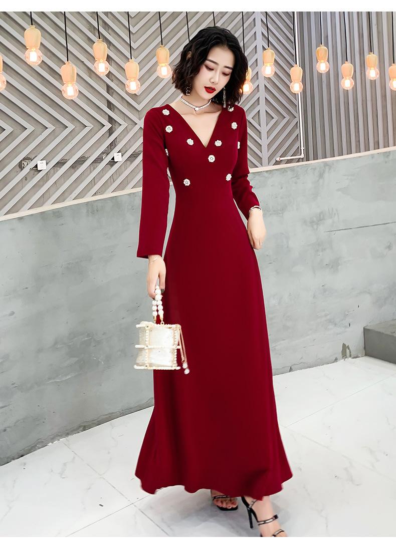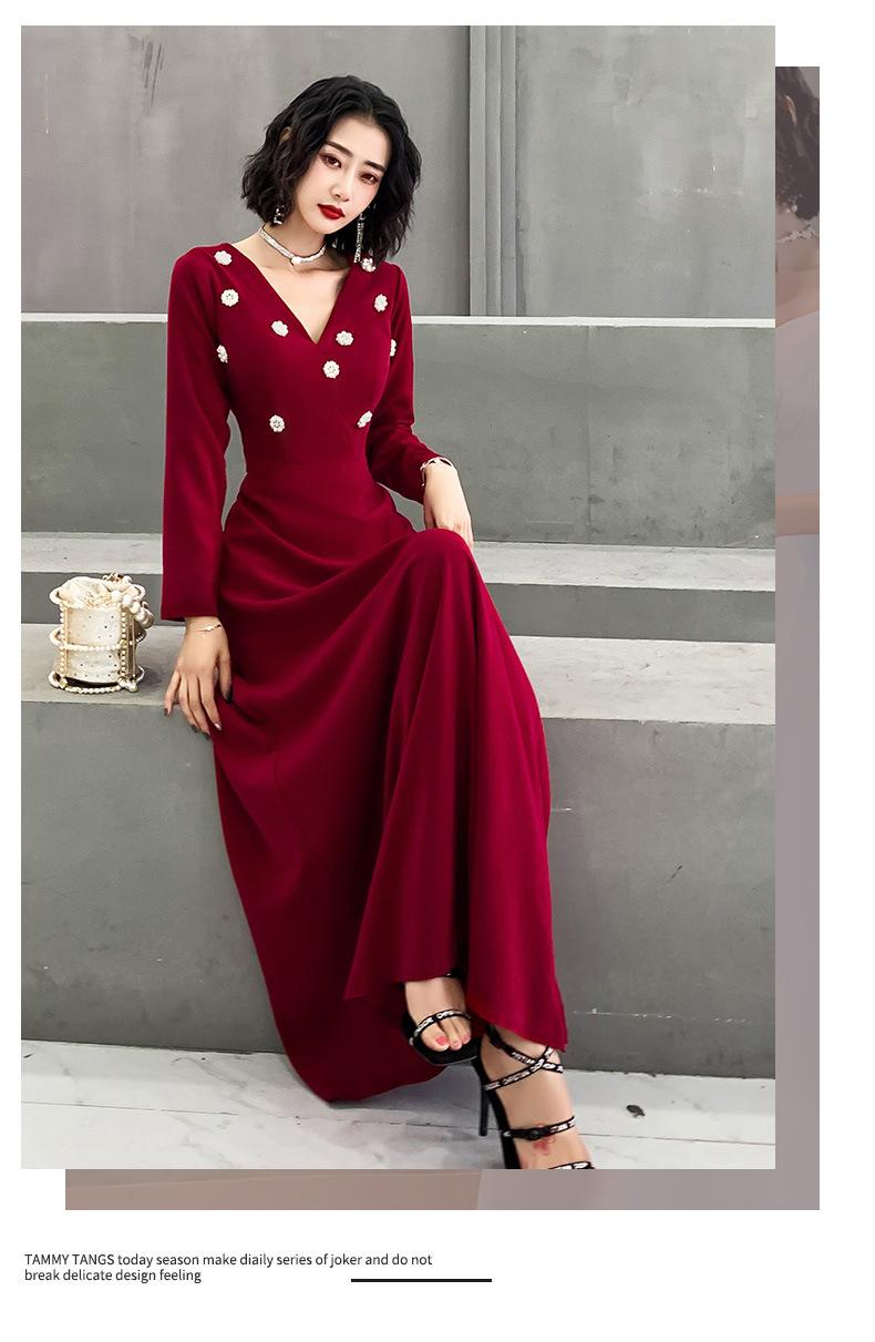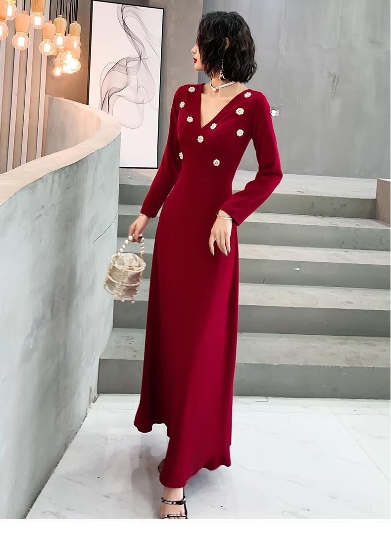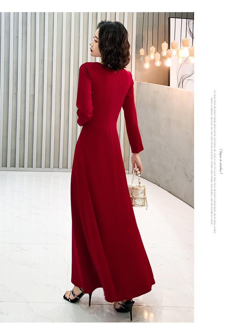 Toast Wear Bridal Borgoña 2025 Nuevo Otoño e Invierno Largo Boda Hogar Banquete Vestido Falda Mujer Cuello V Manga Larga