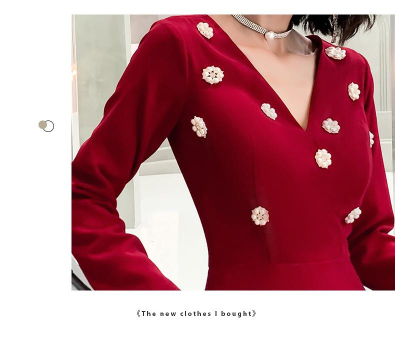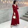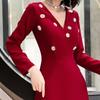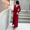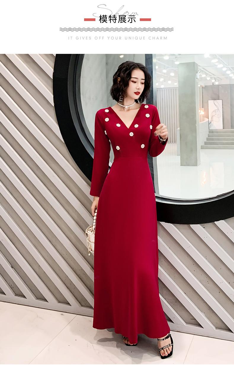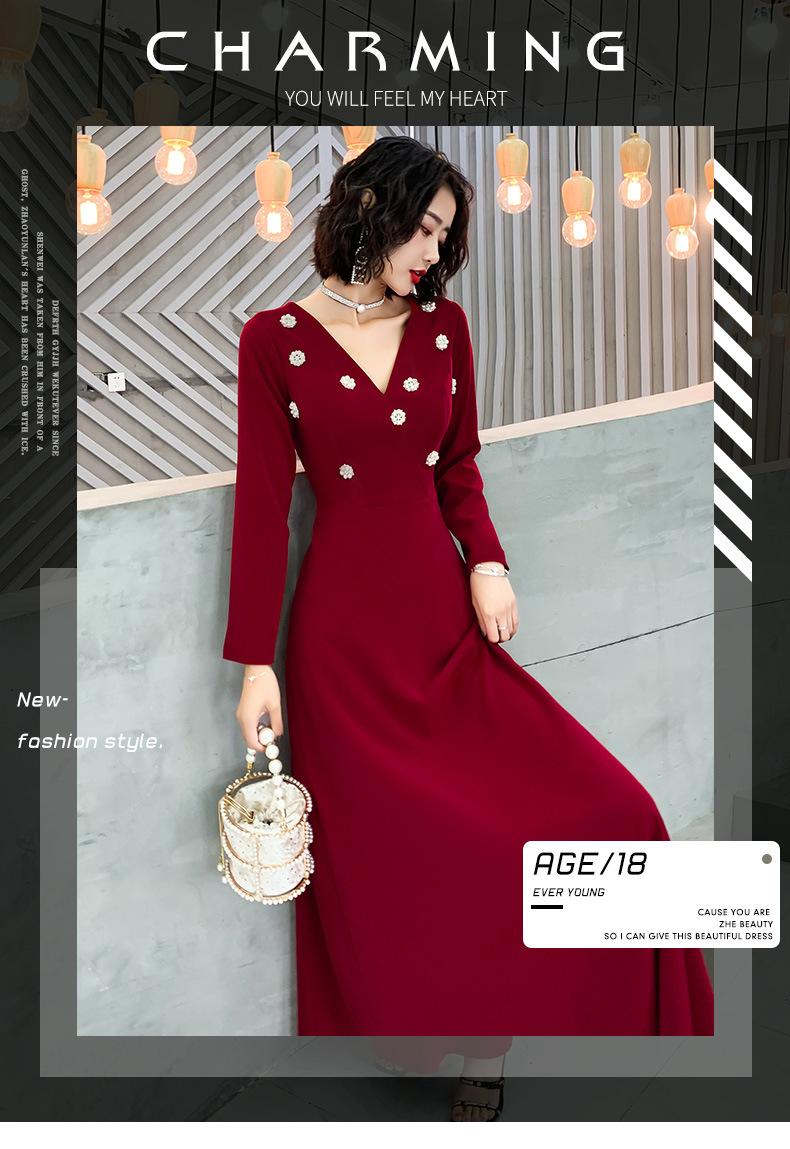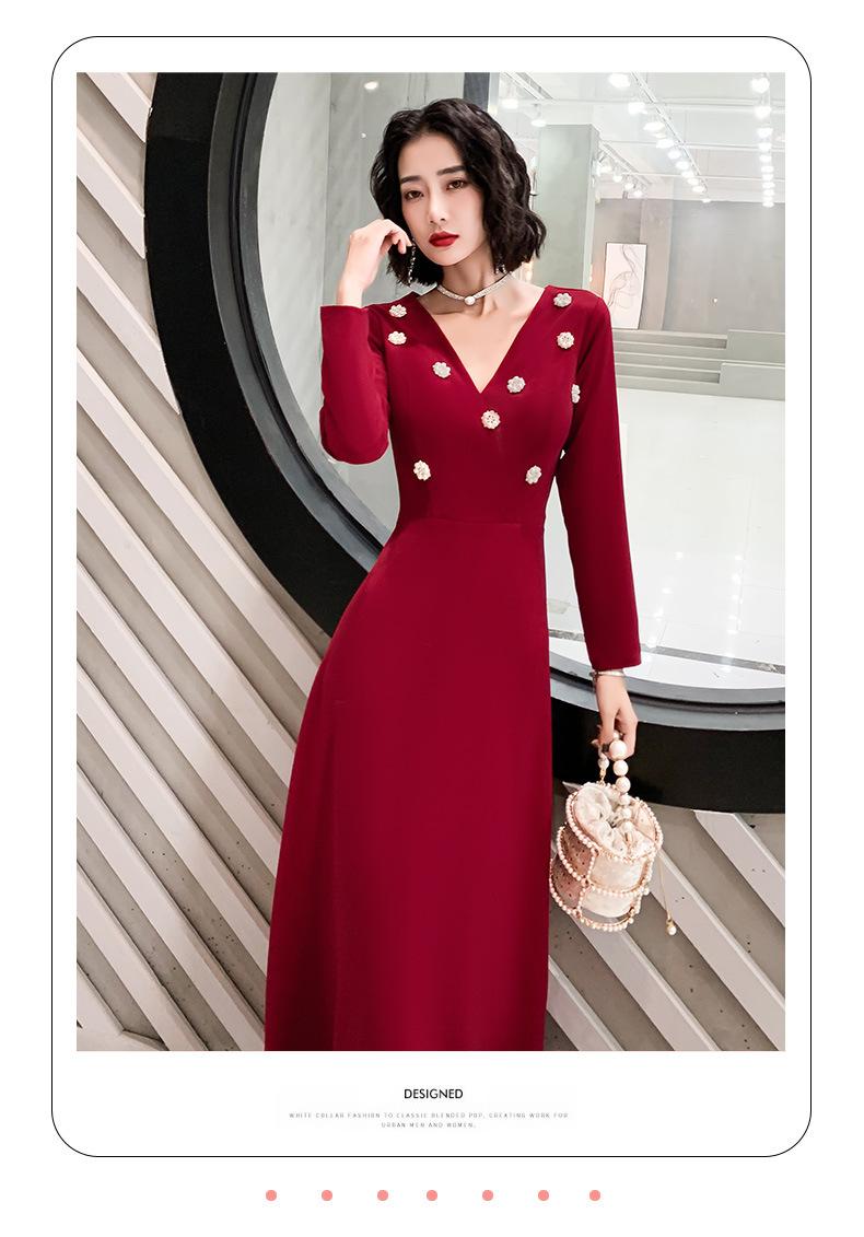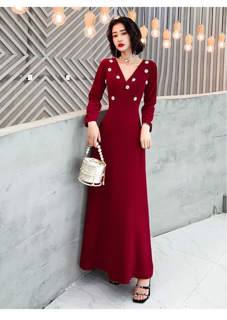 Toast Wear Bridal Borgoña 2025 Nuevo Otoño e Invierno Largo Boda Hogar Banquete Vestido Falda Mujer Cuello V Manga Larga