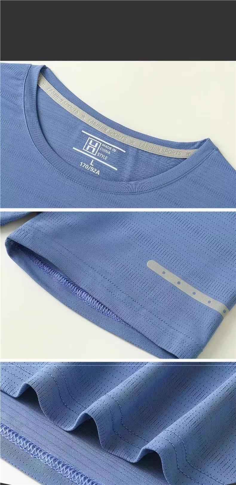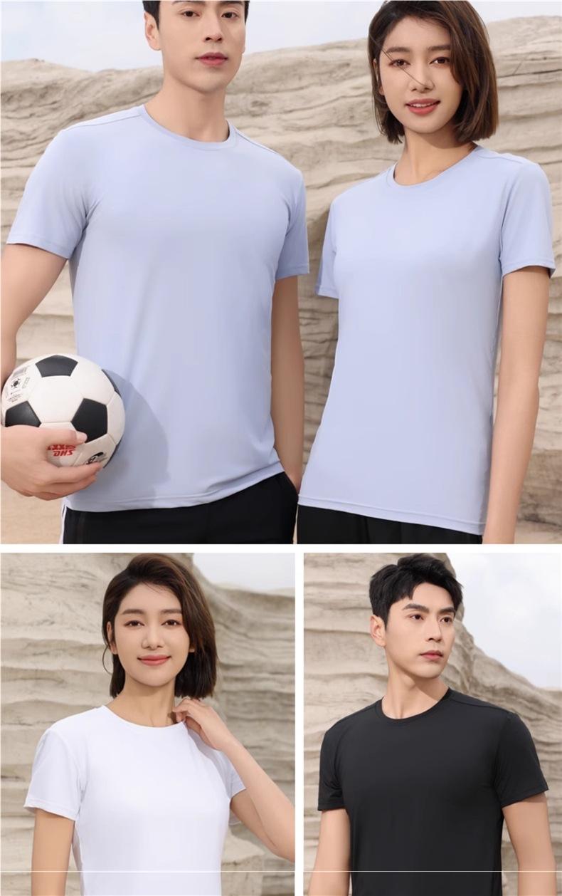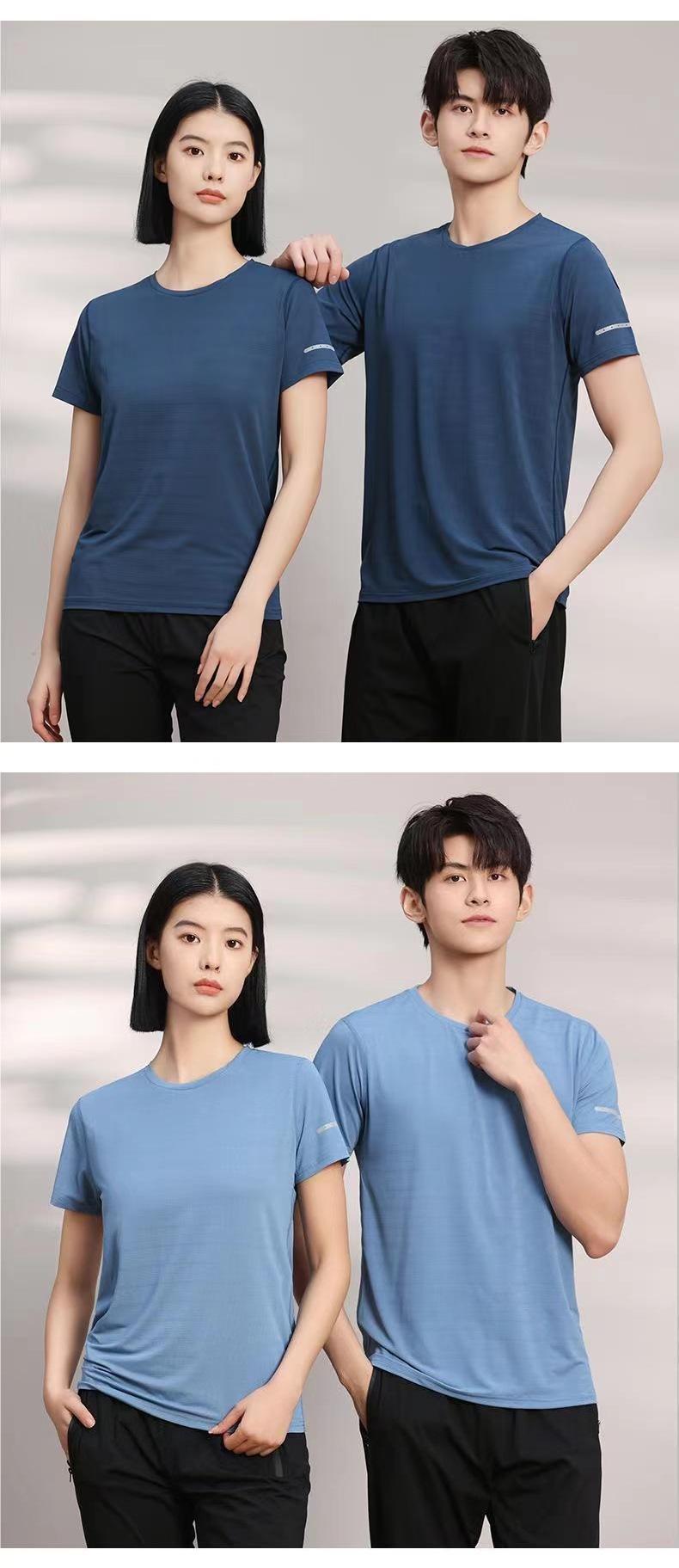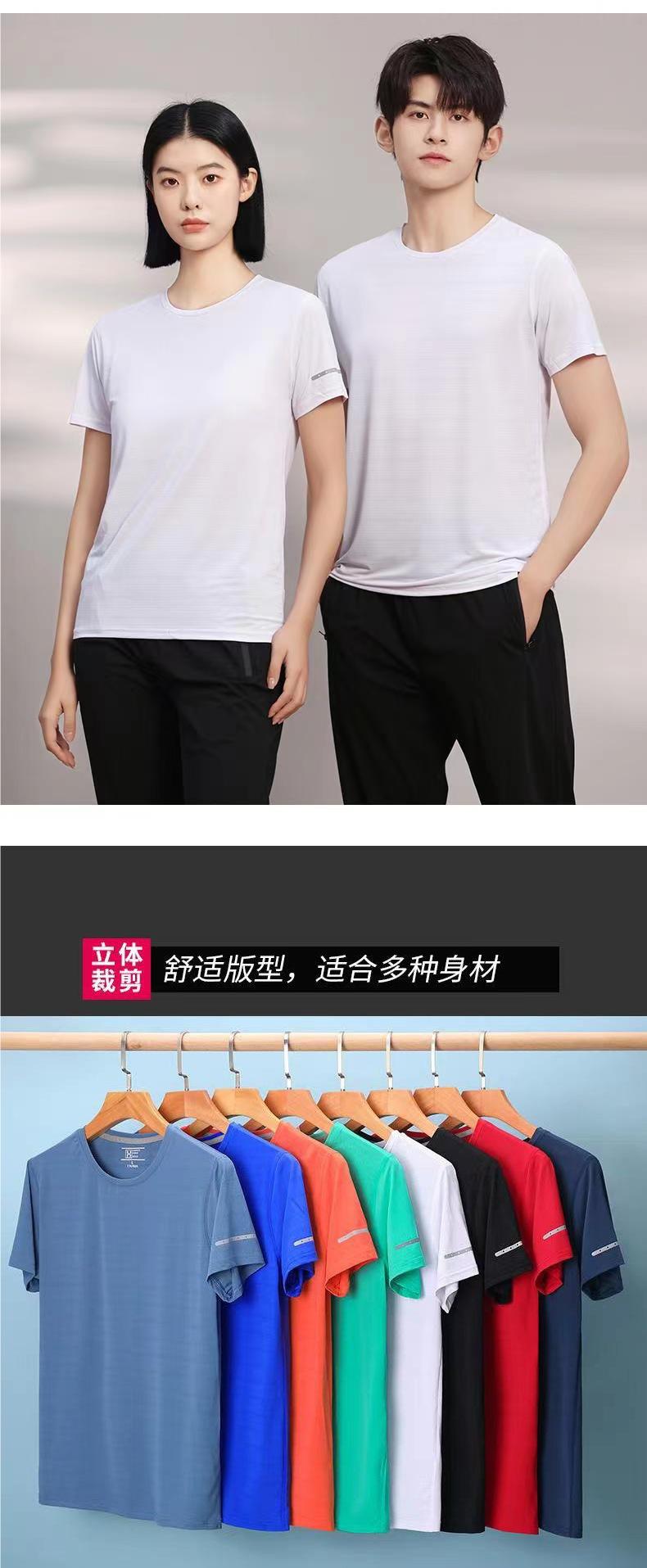 Camiseta de seda de hielo de secado rápido, ropa de trabajo de verano, cuello redondo, manga corta, equipo deportivo de maratón, pedido LOGO