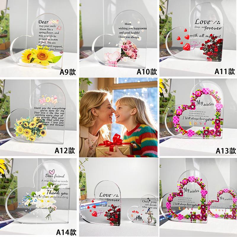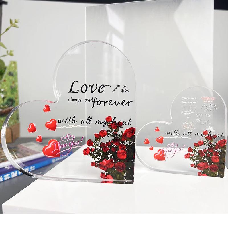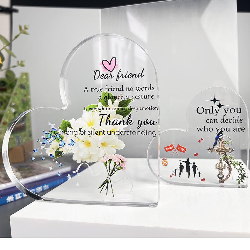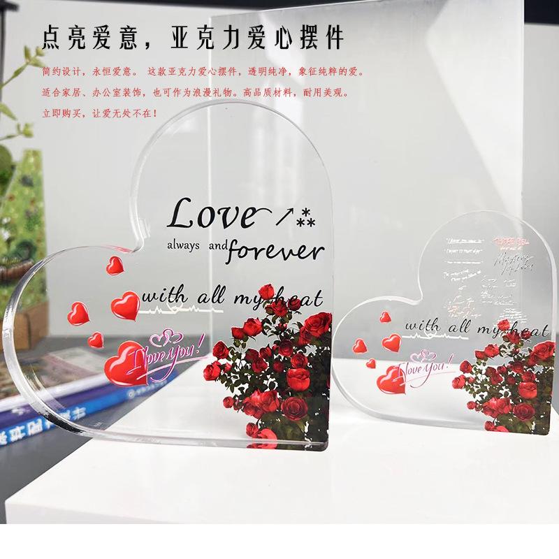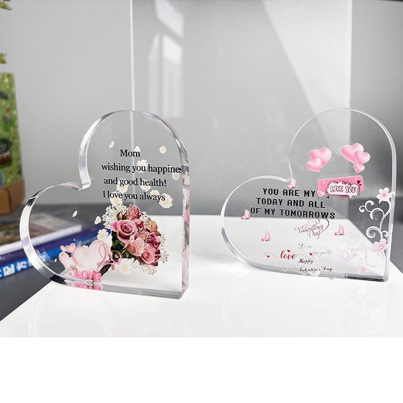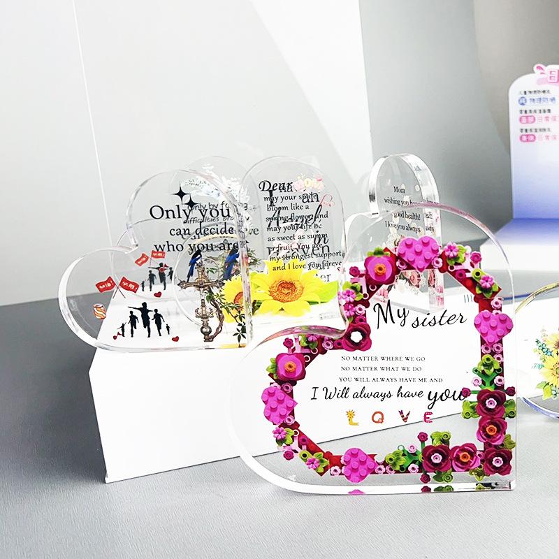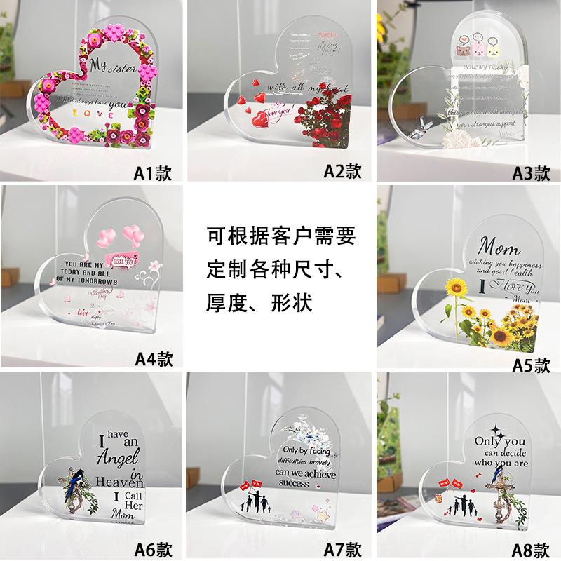 Adornos de Marco de Fotos Acrílico en Forma de Corazón Transfronterizo como Regalos para Amigos y Familiares, Manualidades en Forma de Corazón, Decoración de Escritorio, Standees Acrílicos