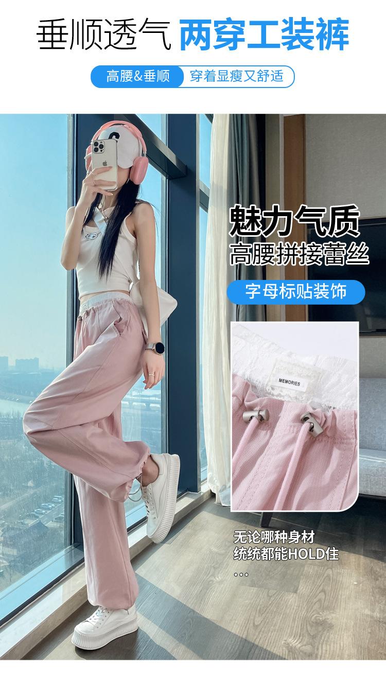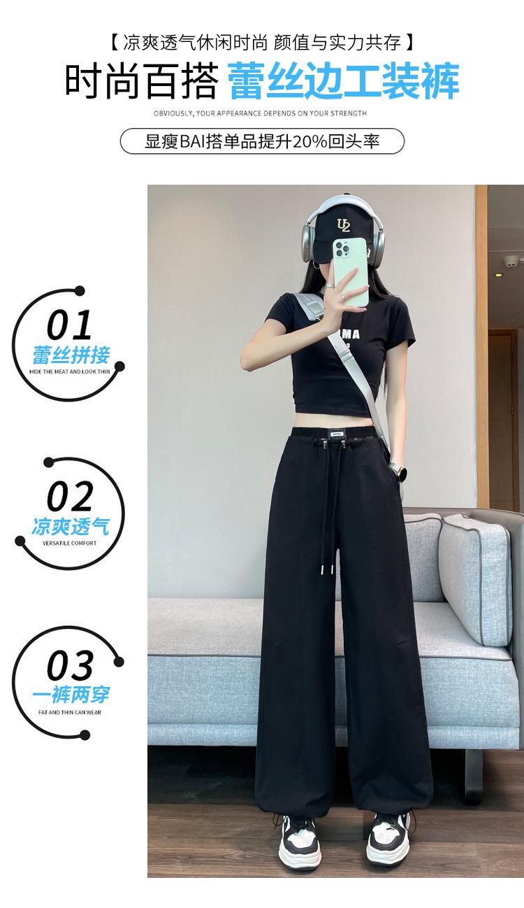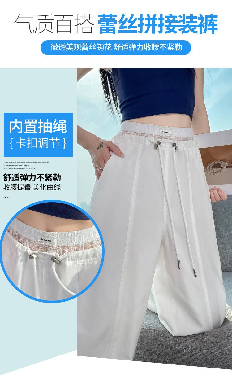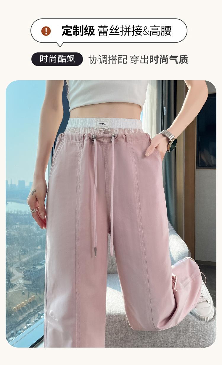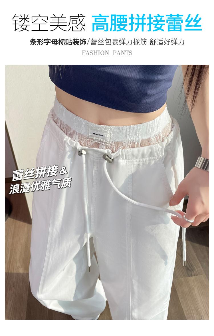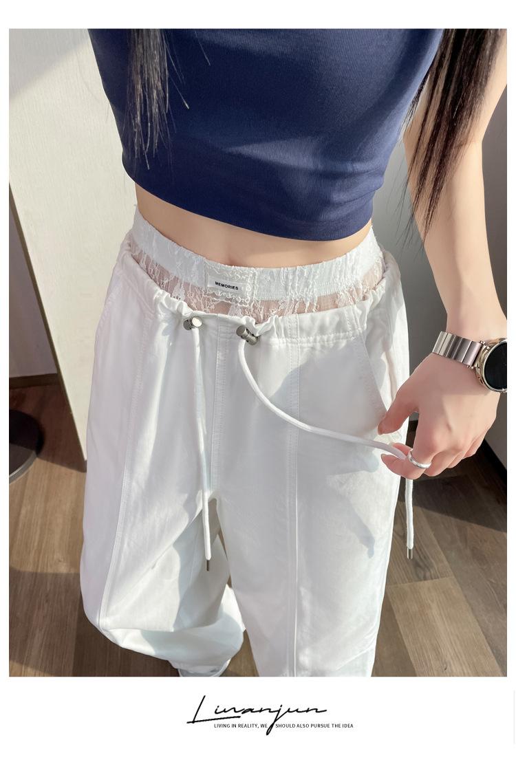 Delicias Cuidadosamente Seleccionadas 2025 Otoño y Verano Nuevo Pantalón Cargo de Encaje Delgado con Lazos en las Piernas Pierna Ancha Dos Usos Pantalones Casuales Pantalones Deportivos para Mujer