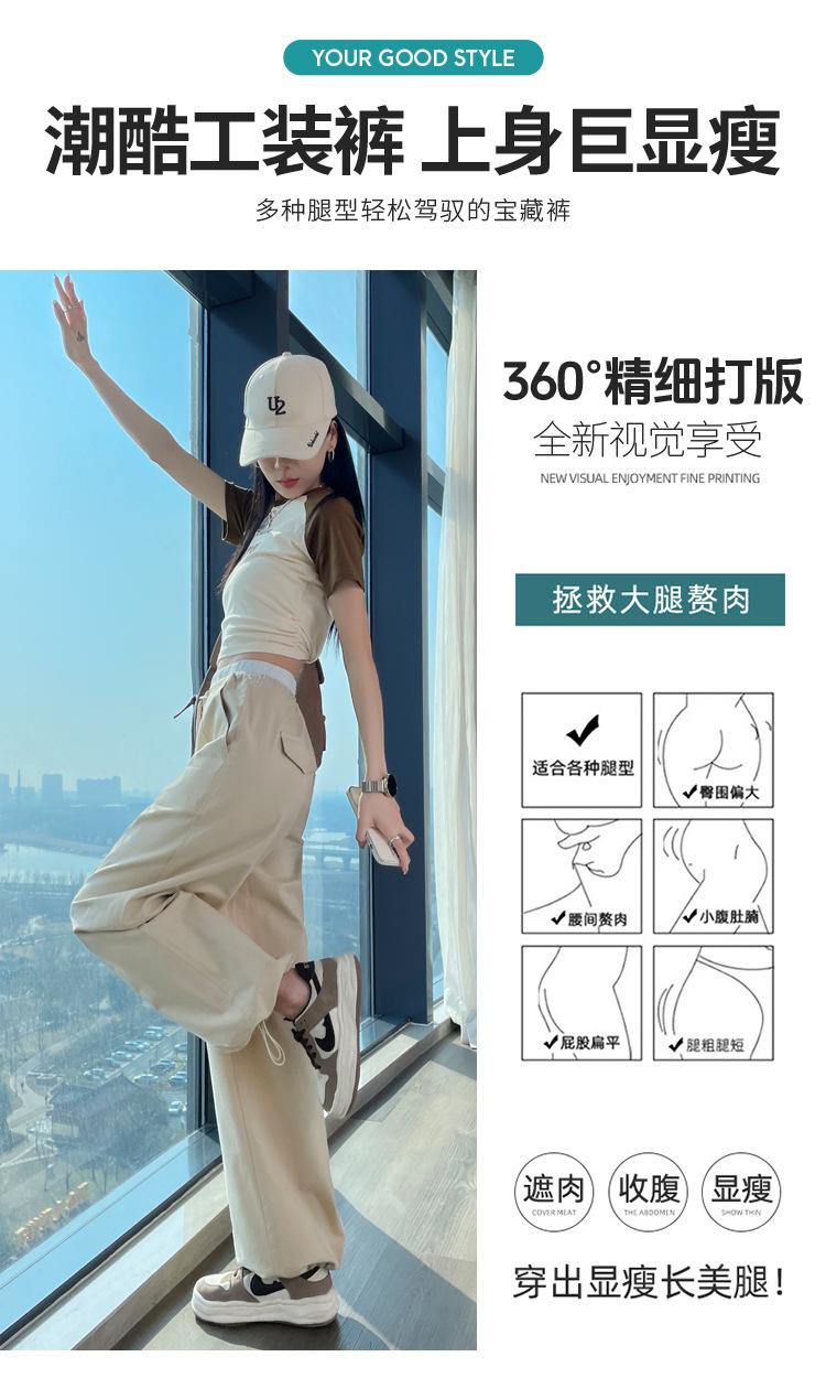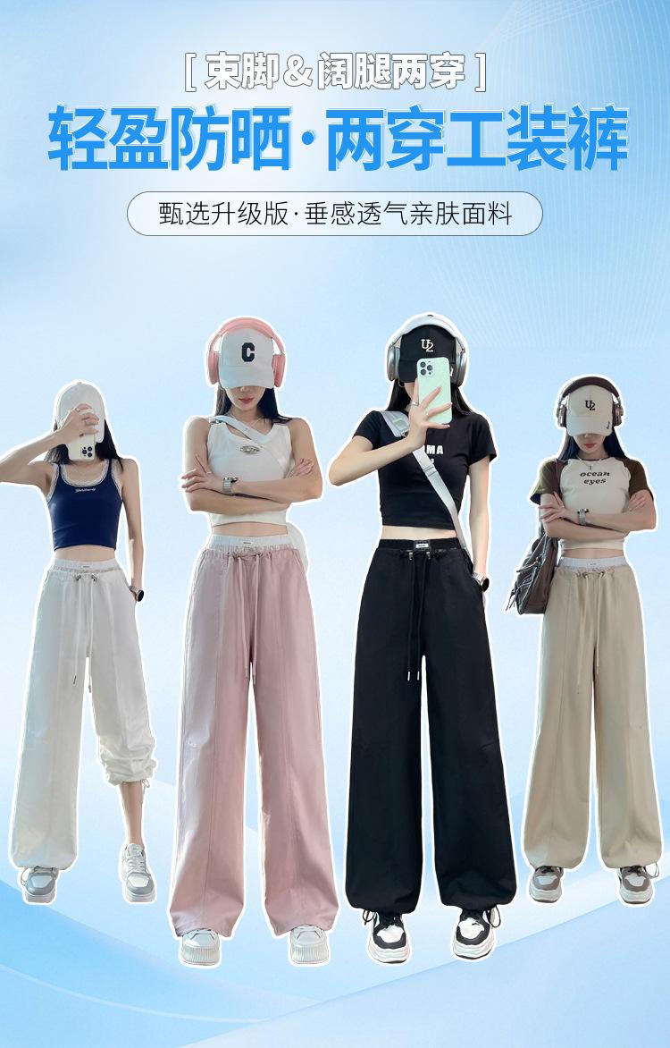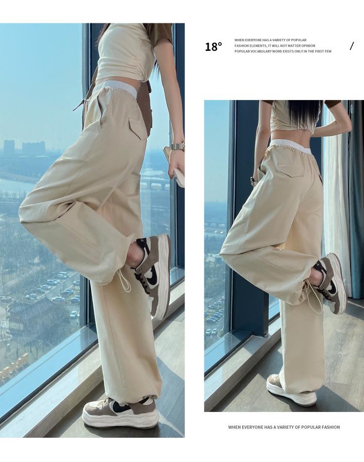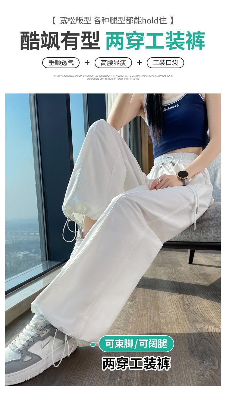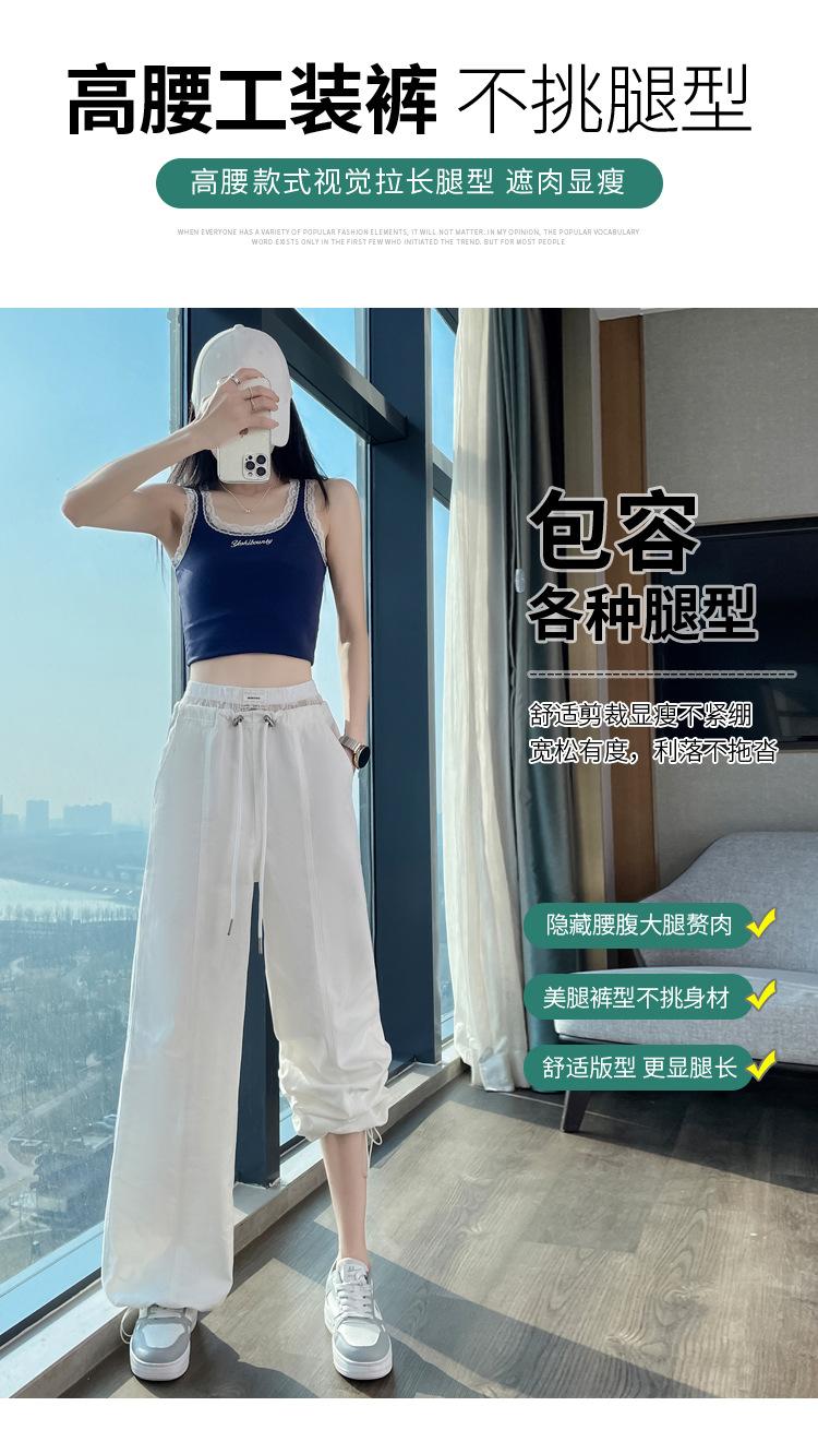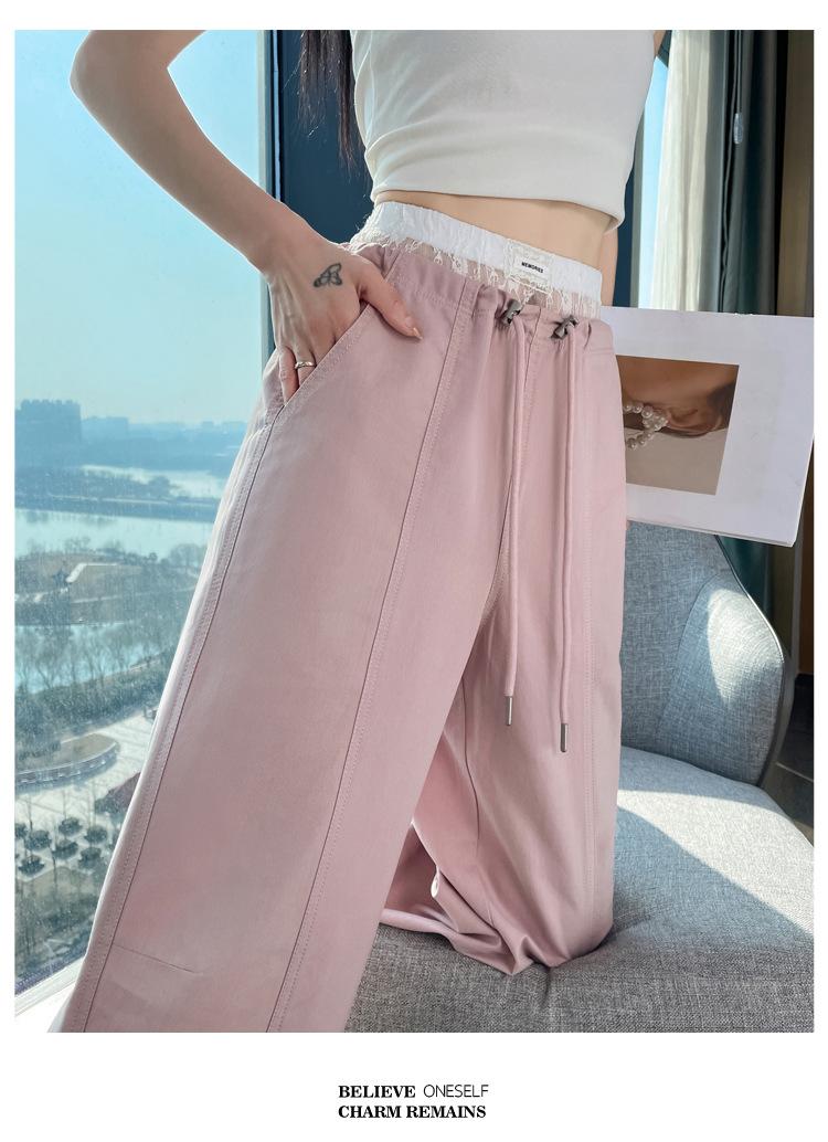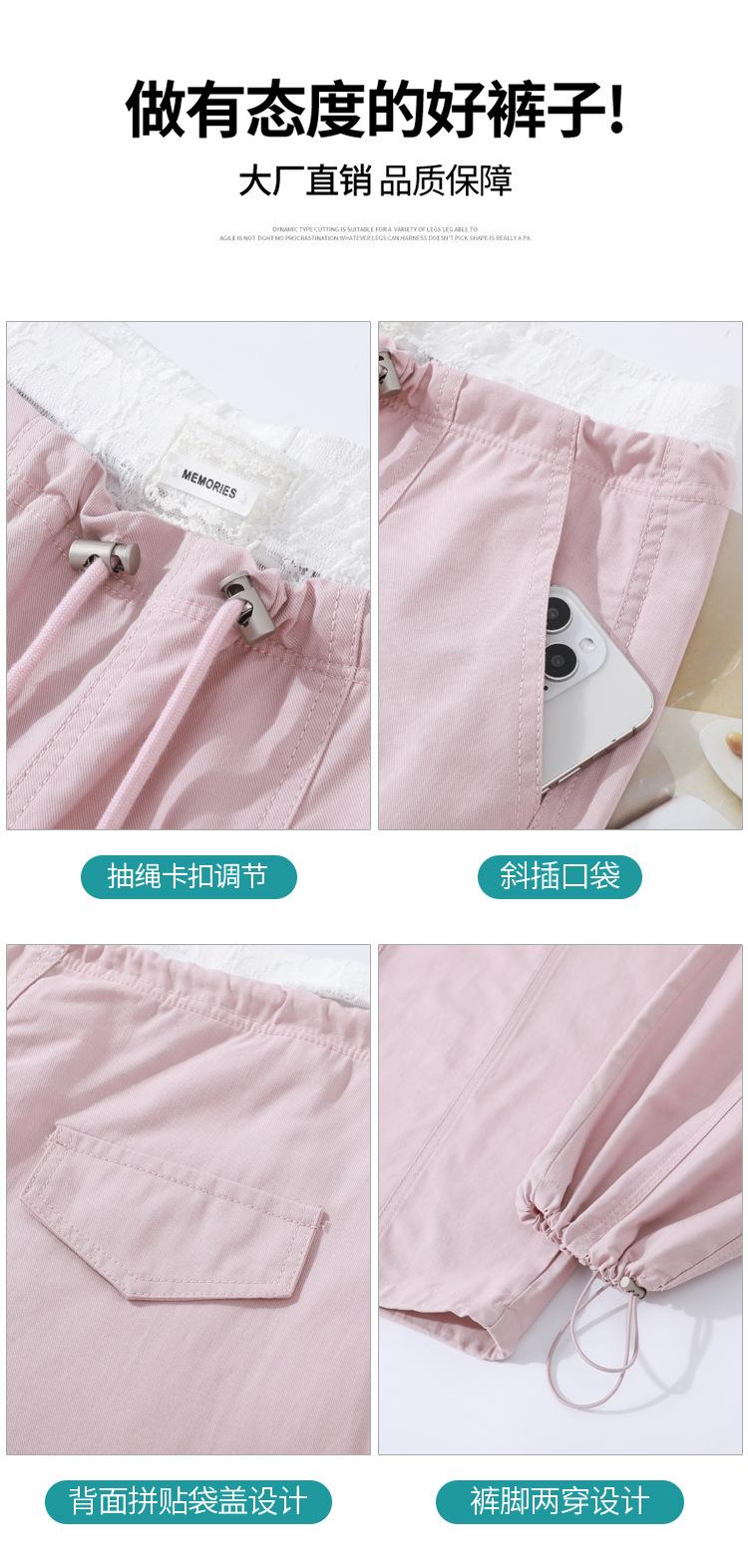 Delicias Cuidadosamente Seleccionadas 2025 Otoño y Verano Nuevo Pantalón Cargo de Encaje Delgado con Lazos en las Piernas Pierna Ancha Dos Usos Pantalones Casuales Pantalones Deportivos para Mujer