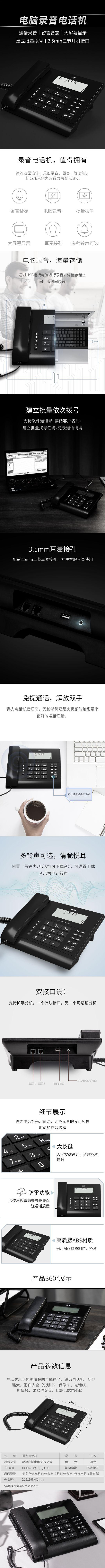 Teléfono multifunción para oficina y hogar, color negro, con grabación de computadora, Deli 13550S, venta al por mayor