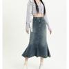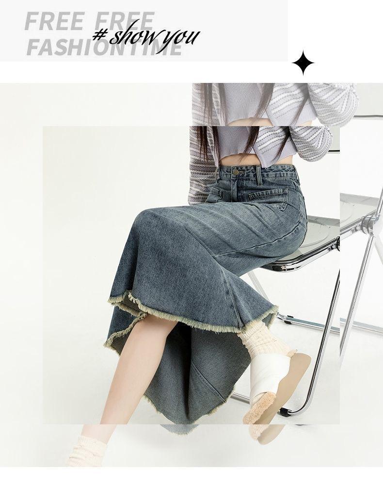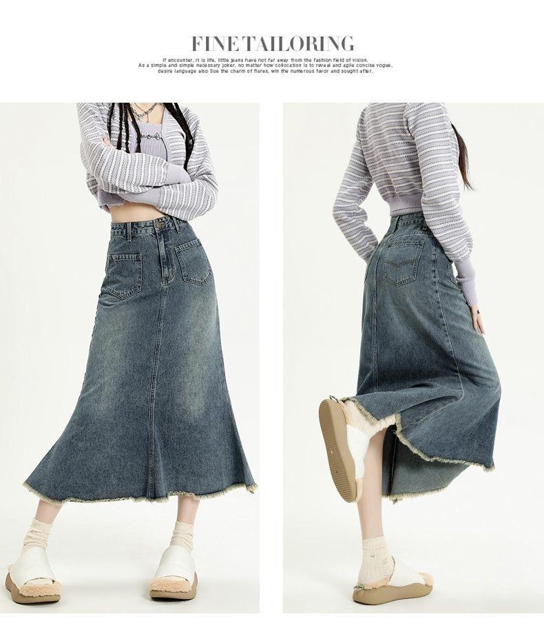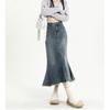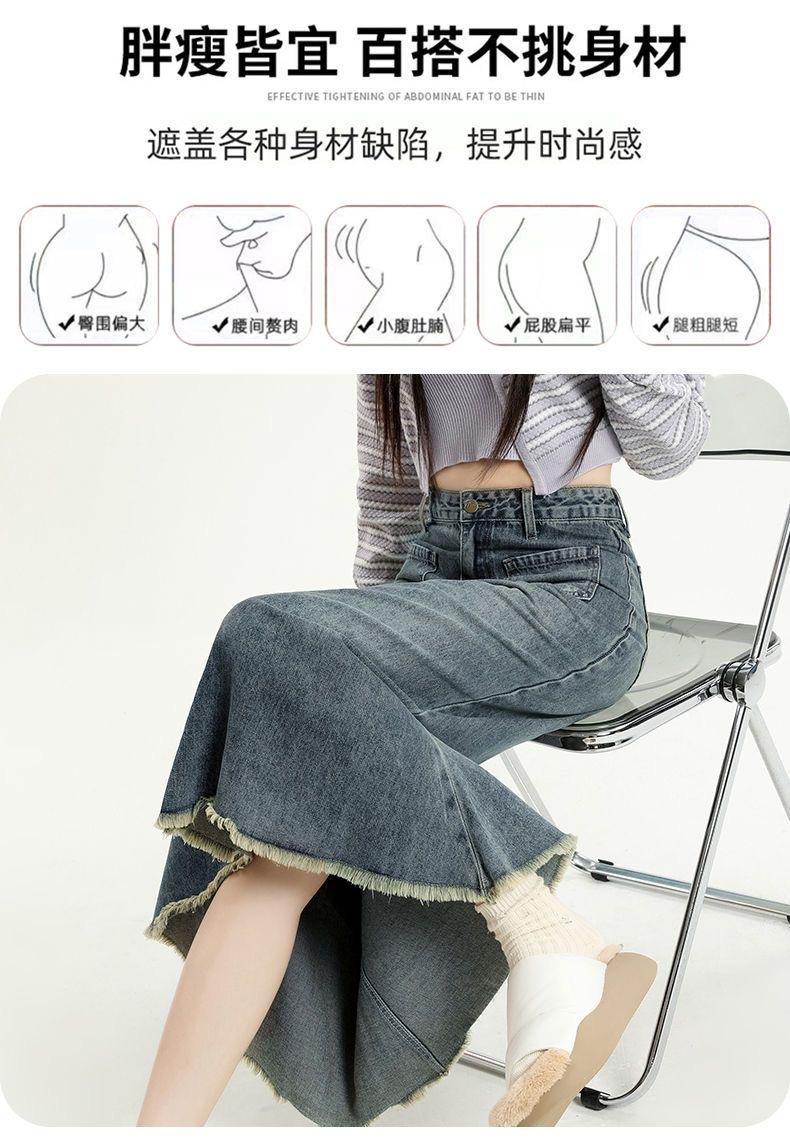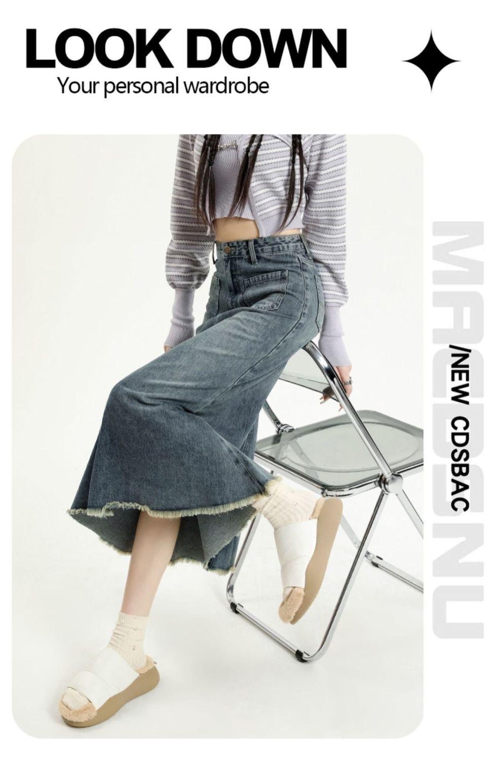 Falda vaquera vintage para mujer, primavera y otoño 2023, nueva falda de verano de longitud media, adelgazante, línea A, larga, dividida.
