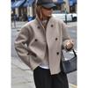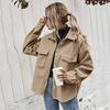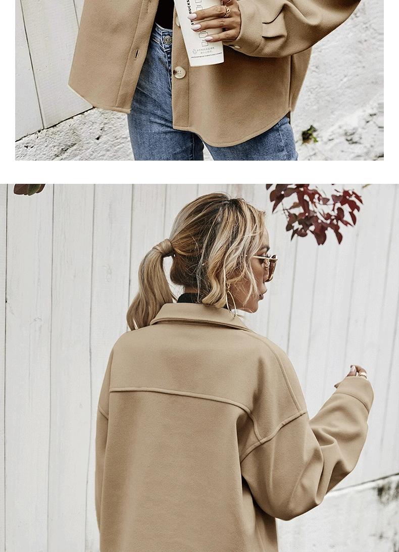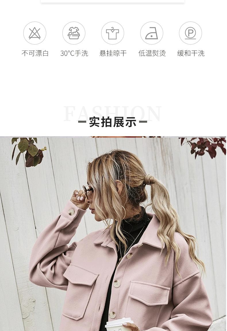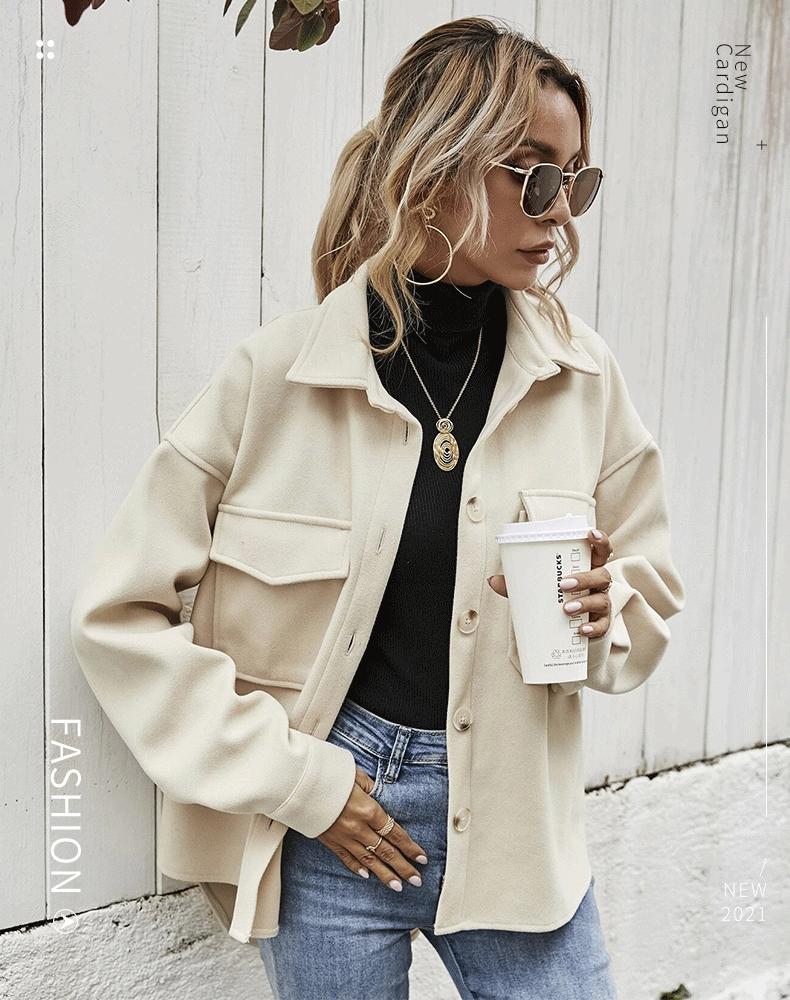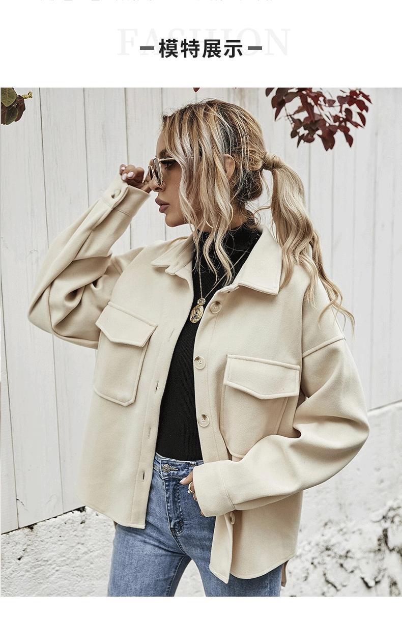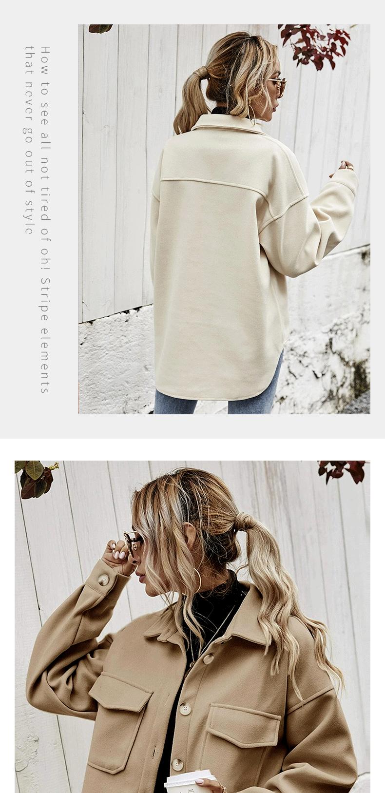 Europeo y americano transfronterizo 2021 otoño e invierno solapa abotonadura simple engrosado color sólido camisa lana abrigo suelto para mujer
