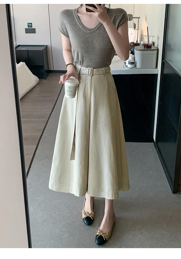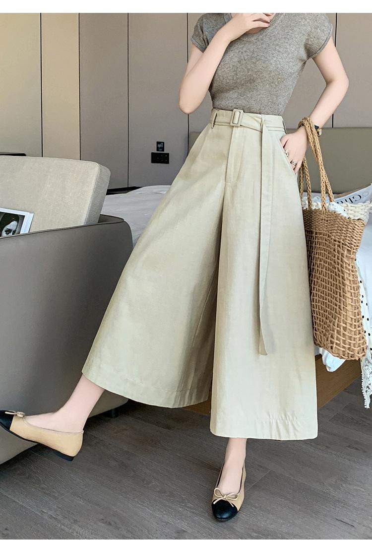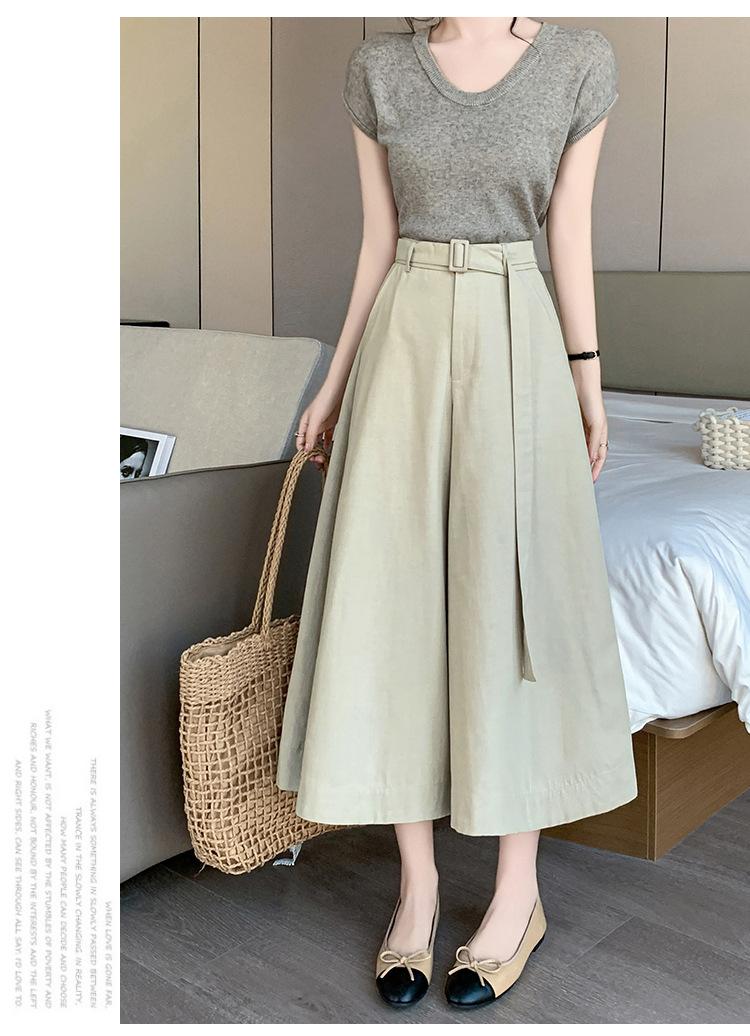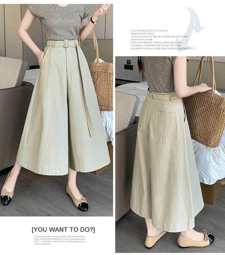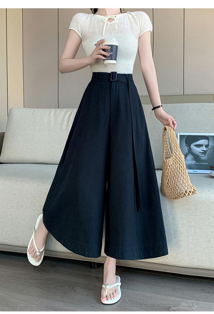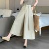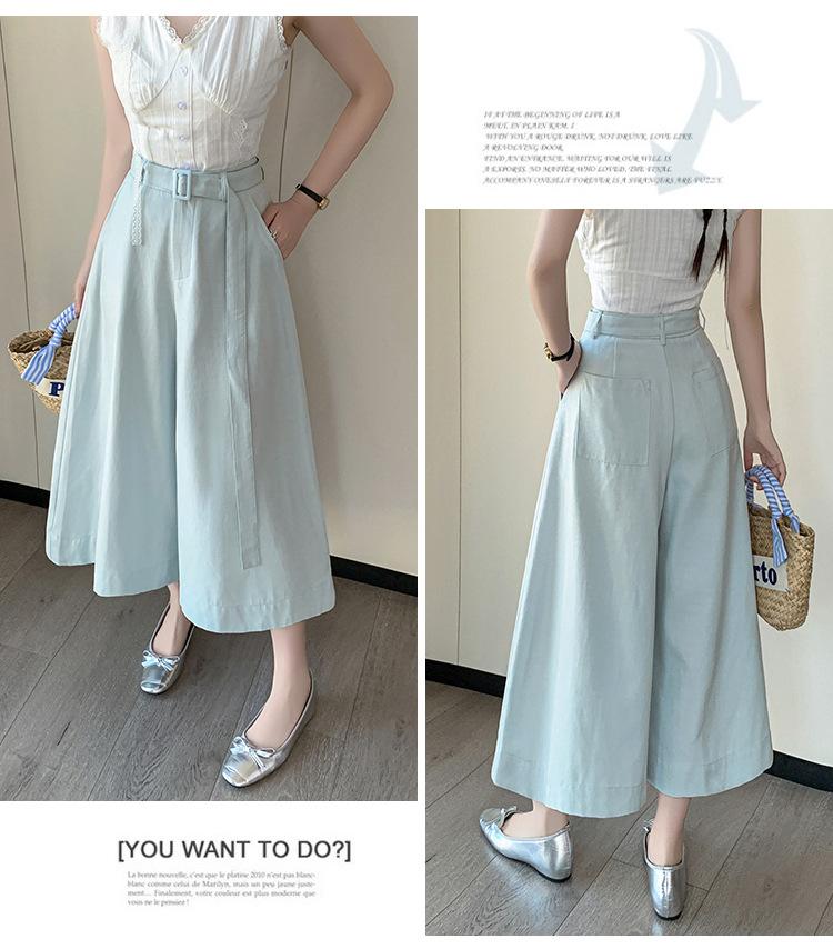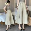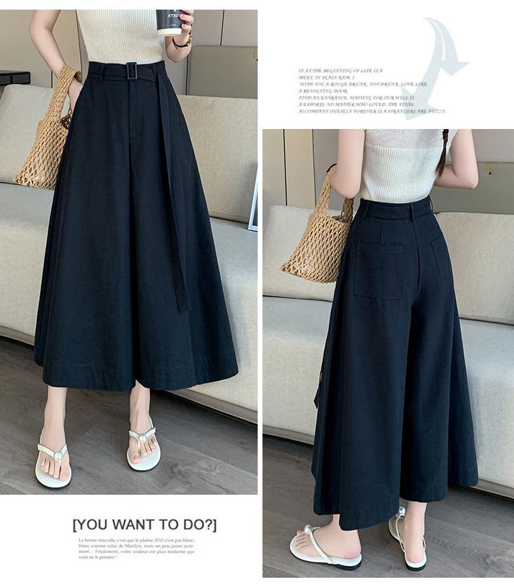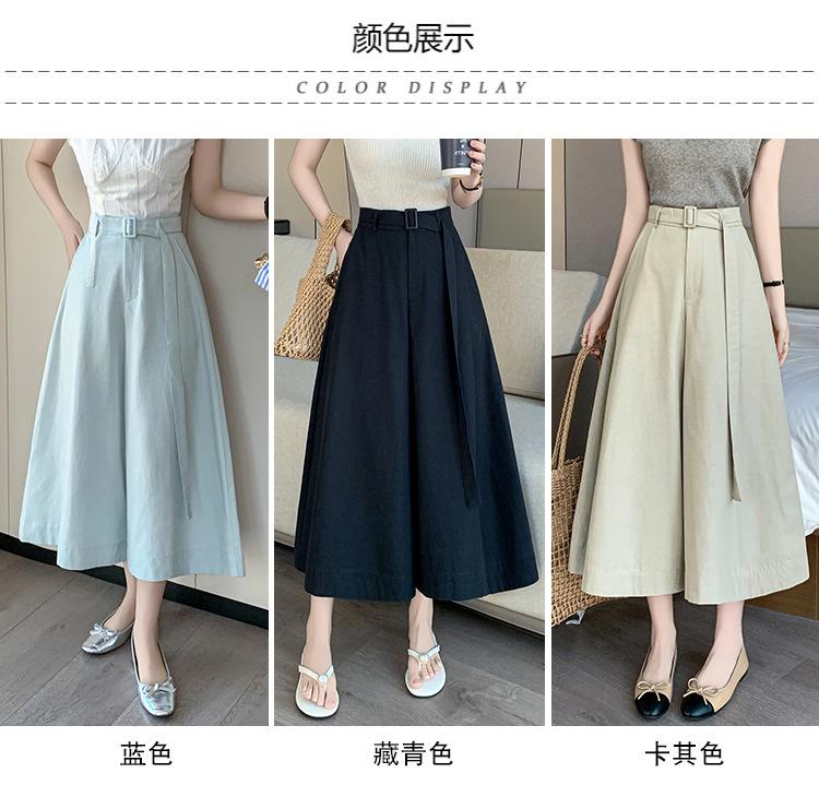 Foto Real Verano 2025 Pantalones Casuales Nuevos Diseño Adelgazante Sentido Cintura Alta Pantalones 7/8 Sueltos Gran Vuelo Pierna Ancha Falda Pantalón Línea A para Mujer