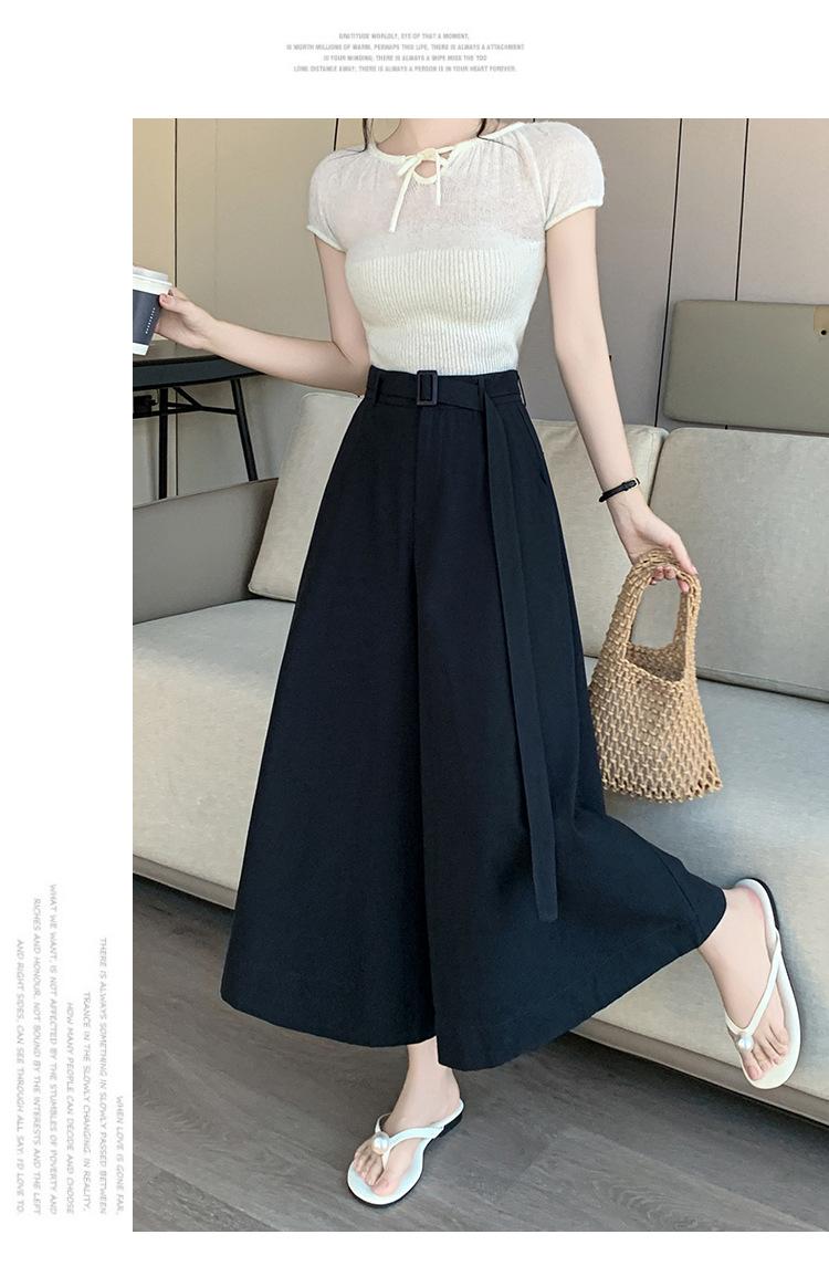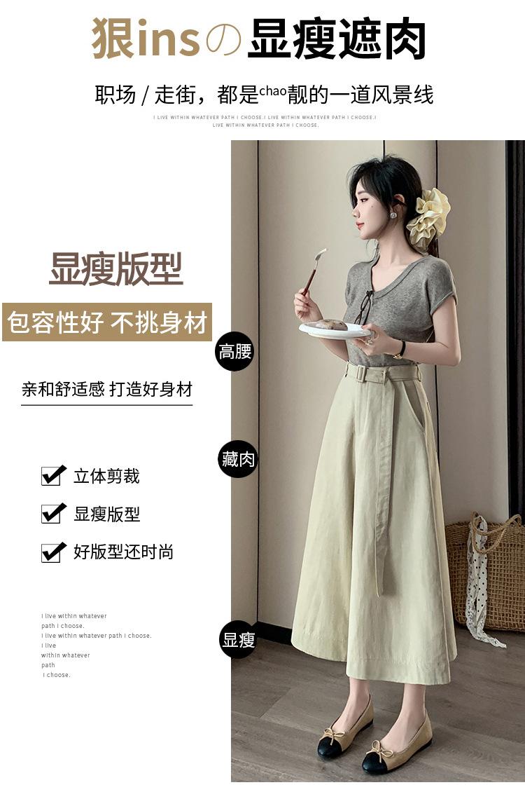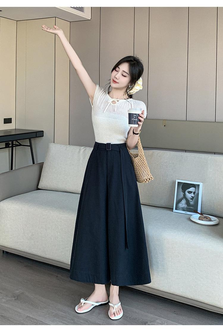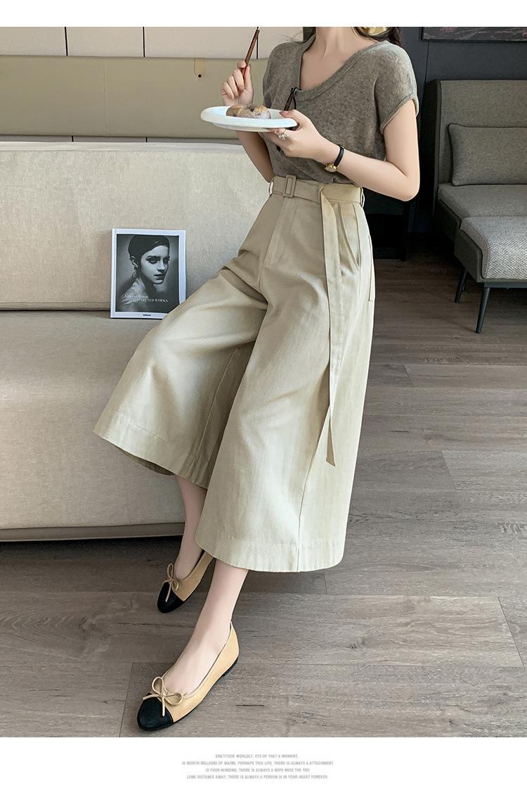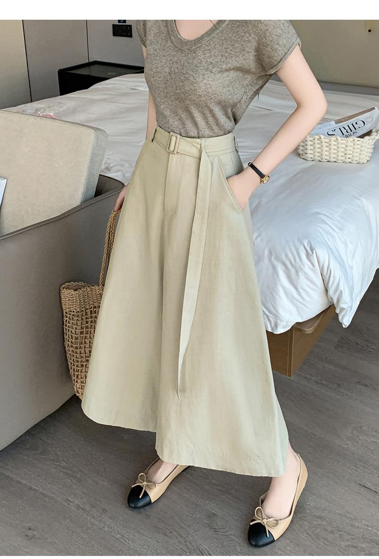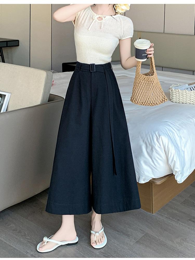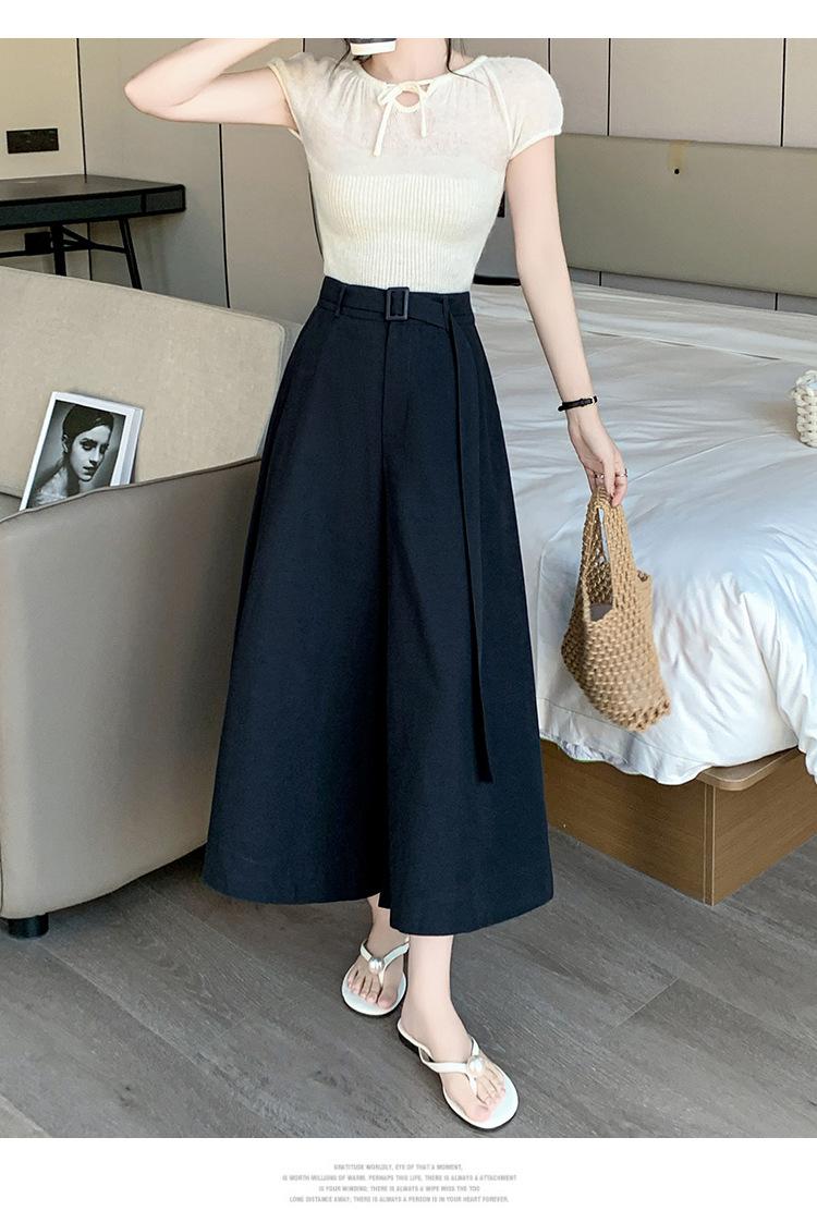 Foto Real Verano 2025 Pantalones Casuales Nuevos Diseño Adelgazante Sentido Cintura Alta Pantalones 7/8 Sueltos Gran Vuelo Pierna Ancha Falda Pantalón Línea A para Mujer