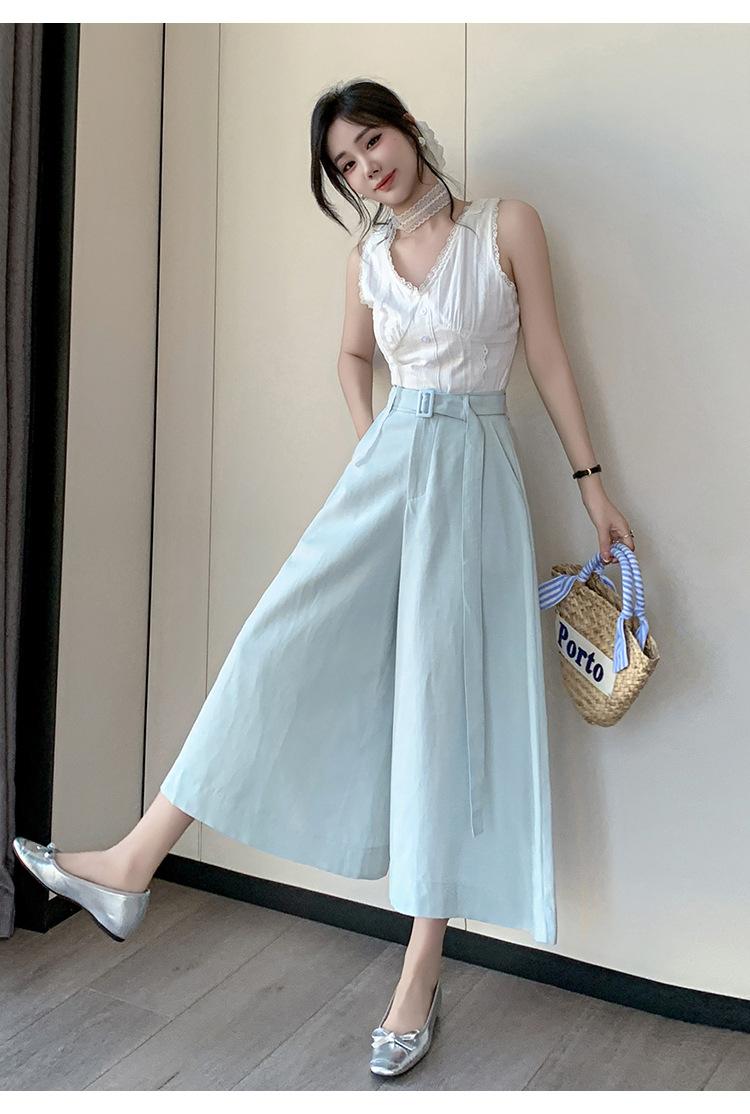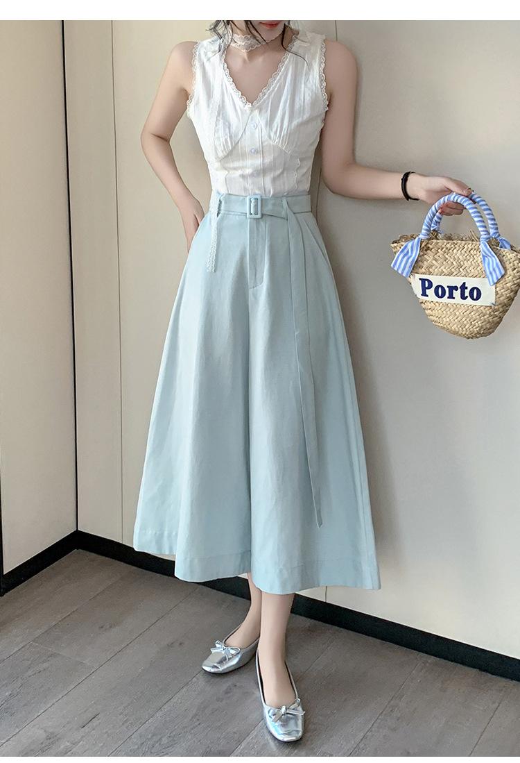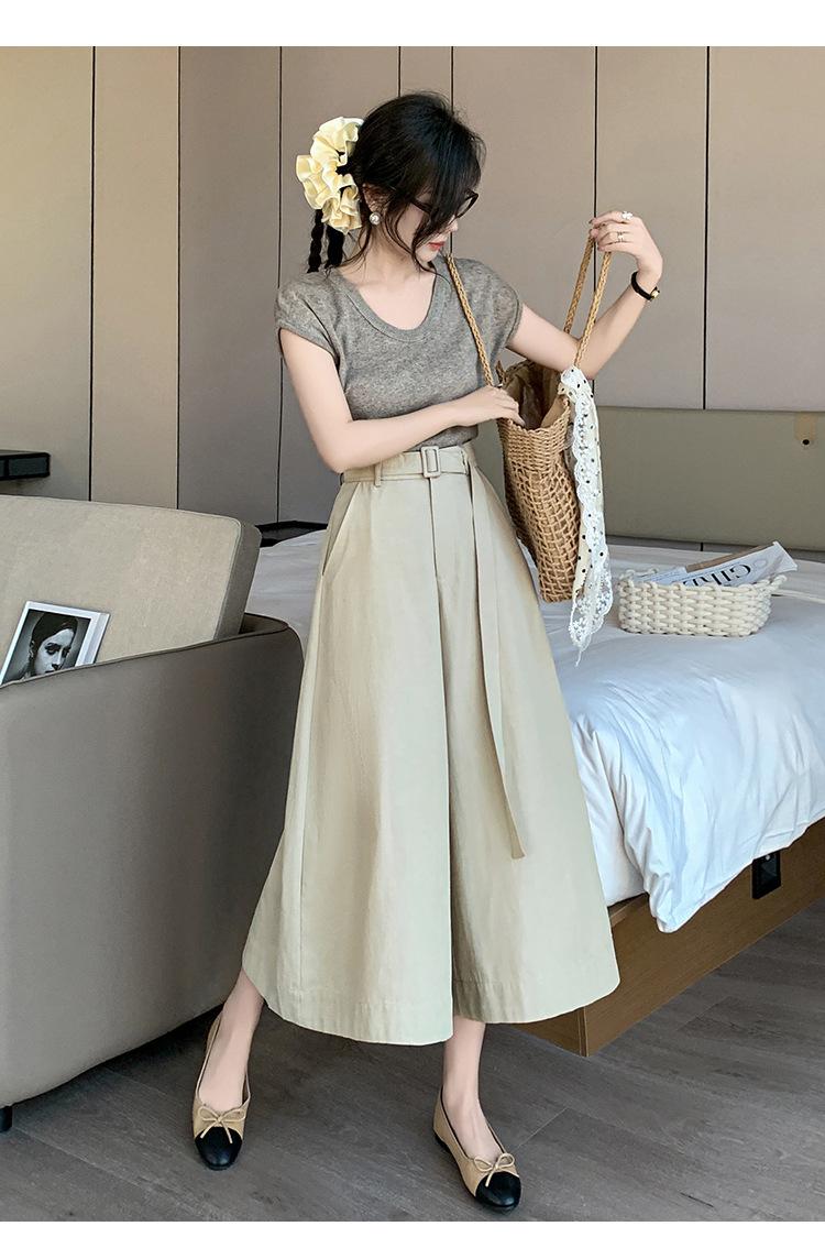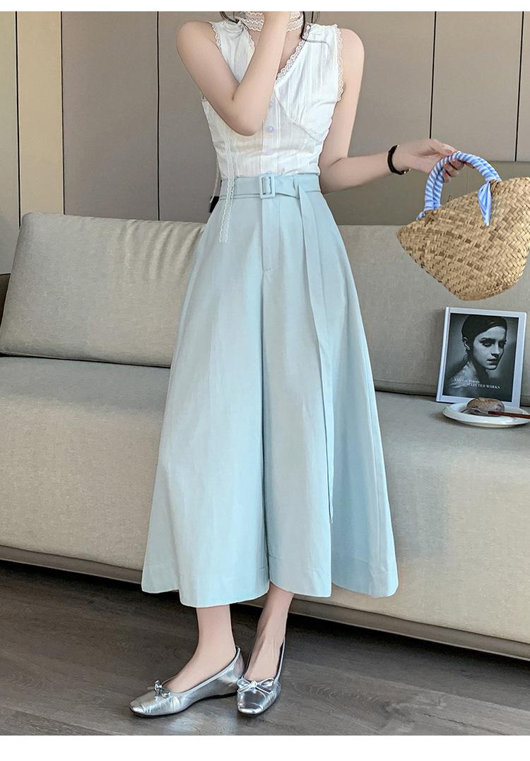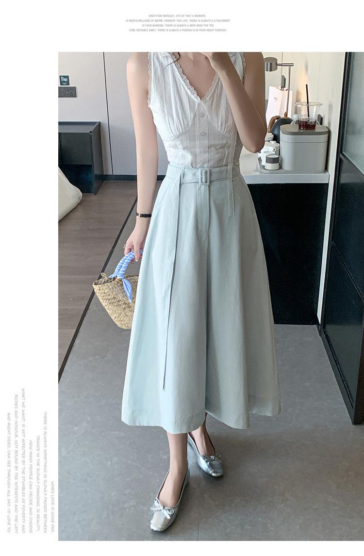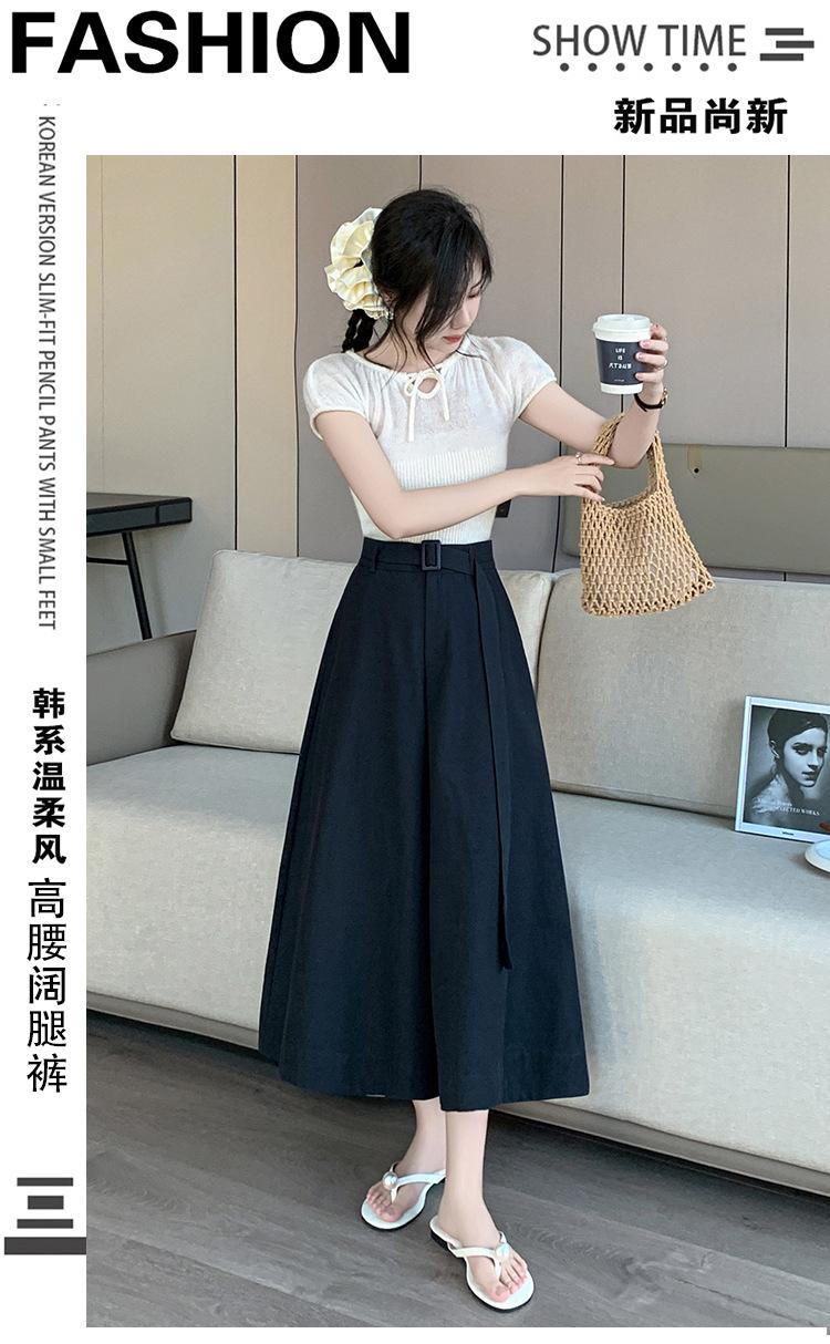 Foto Real Verano 2025 Pantalones Casuales Nuevos Diseño Adelgazante Sentido Cintura Alta Pantalones 7/8 Sueltos Gran Vuelo Pierna Ancha Falda Pantalón Línea A para Mujer