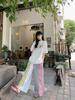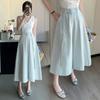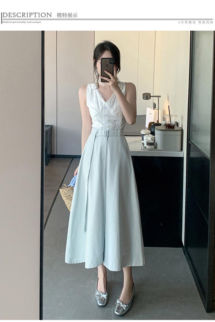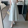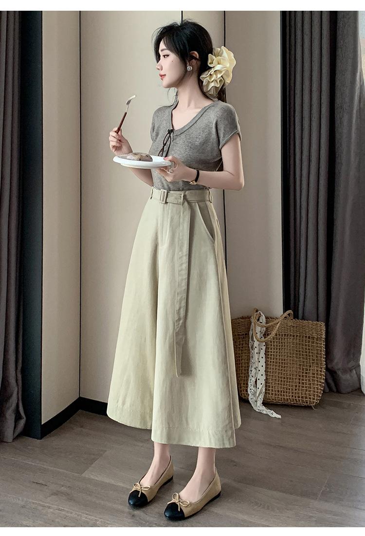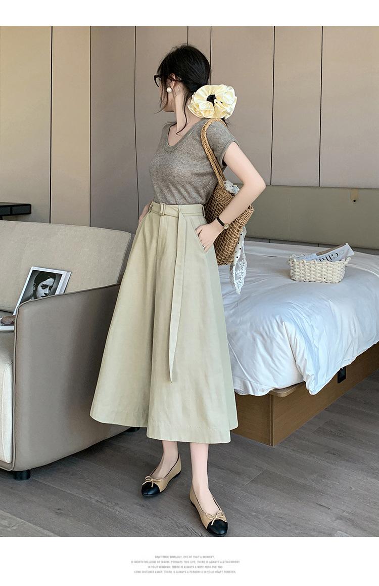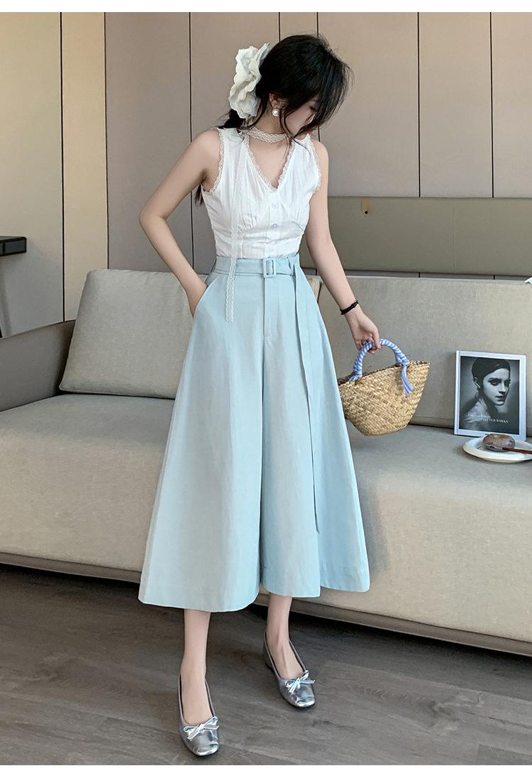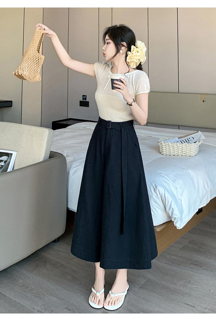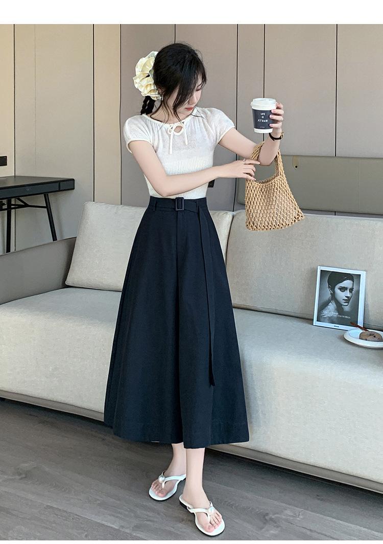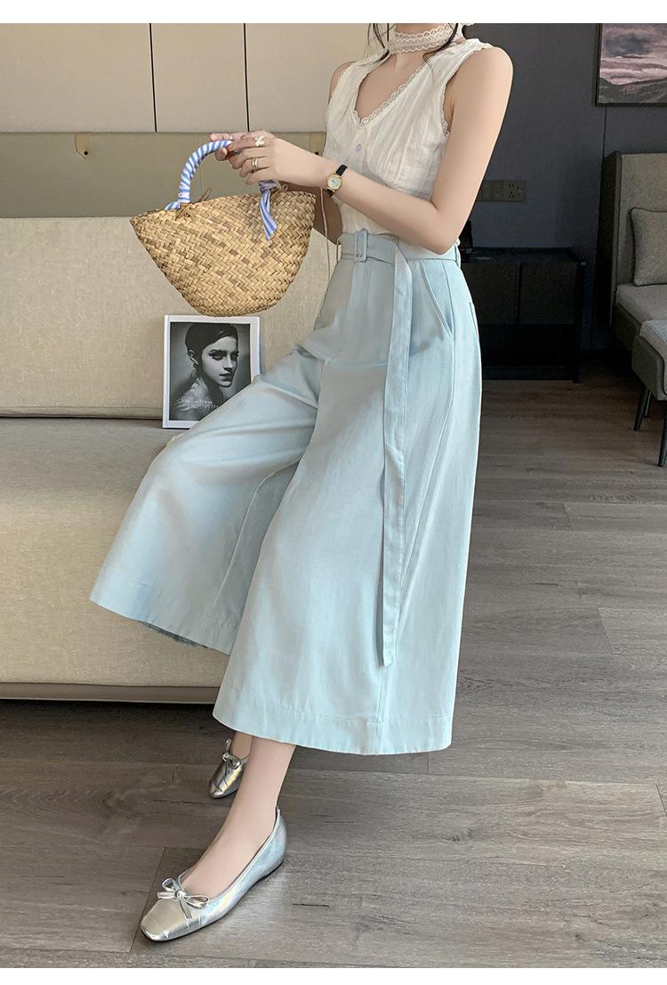 Foto Real Verano 2025 Pantalones Casuales Nuevos Diseño Adelgazante Sentido Cintura Alta Pantalones 7/8 Sueltos Gran Vuelo Pierna Ancha Falda Pantalón Línea A para Mujer