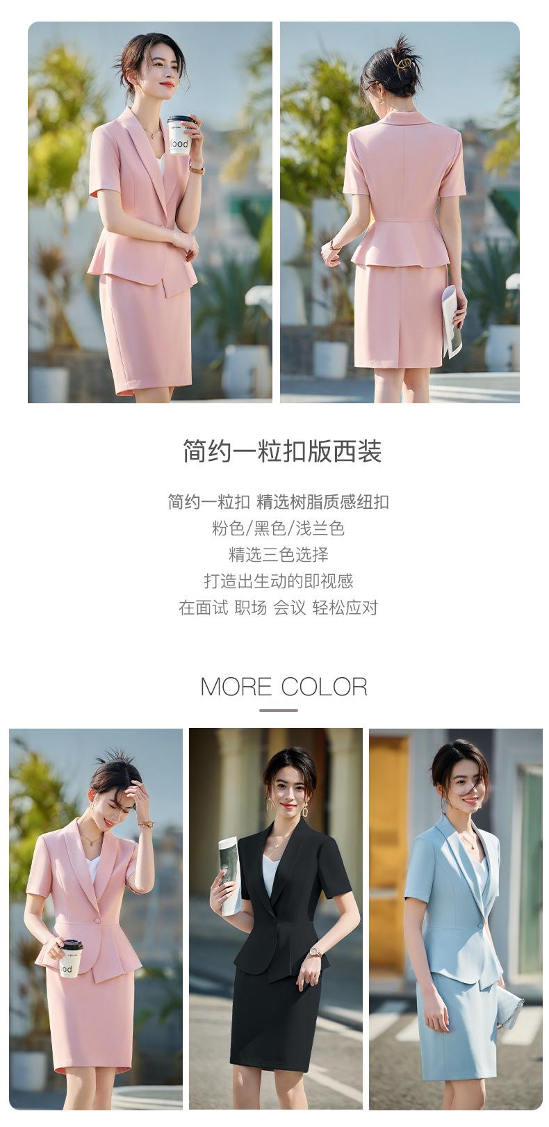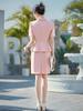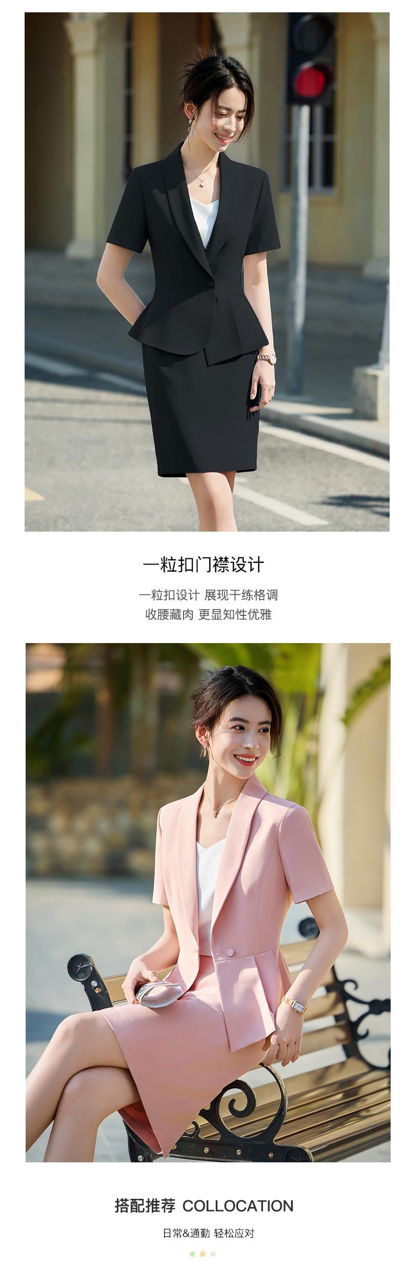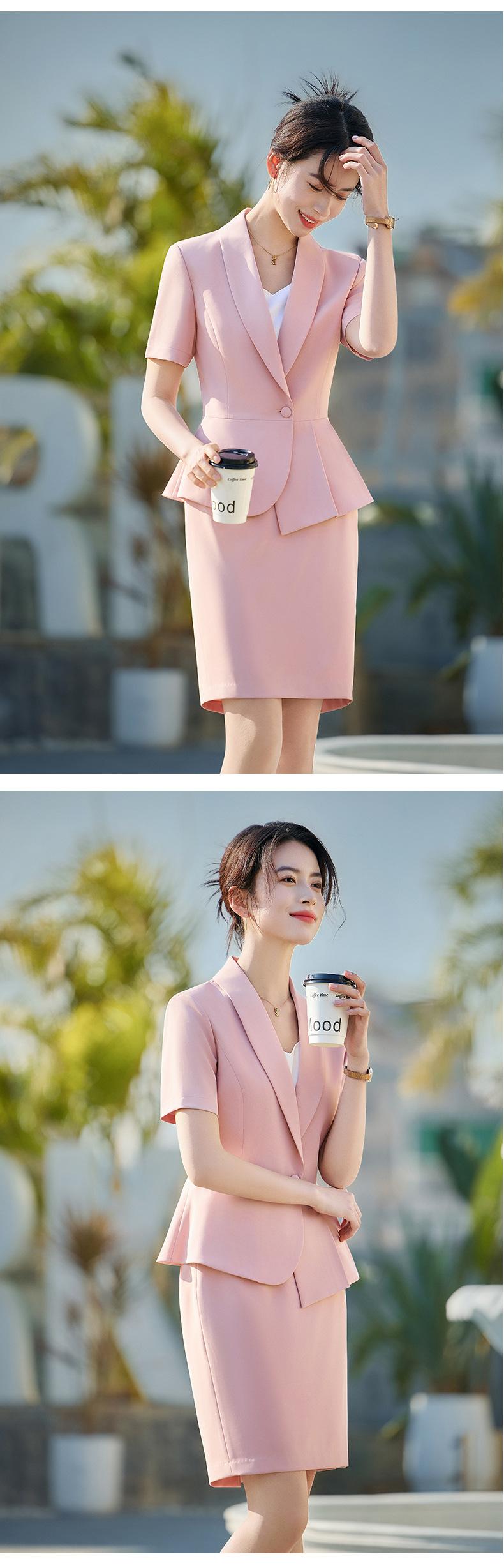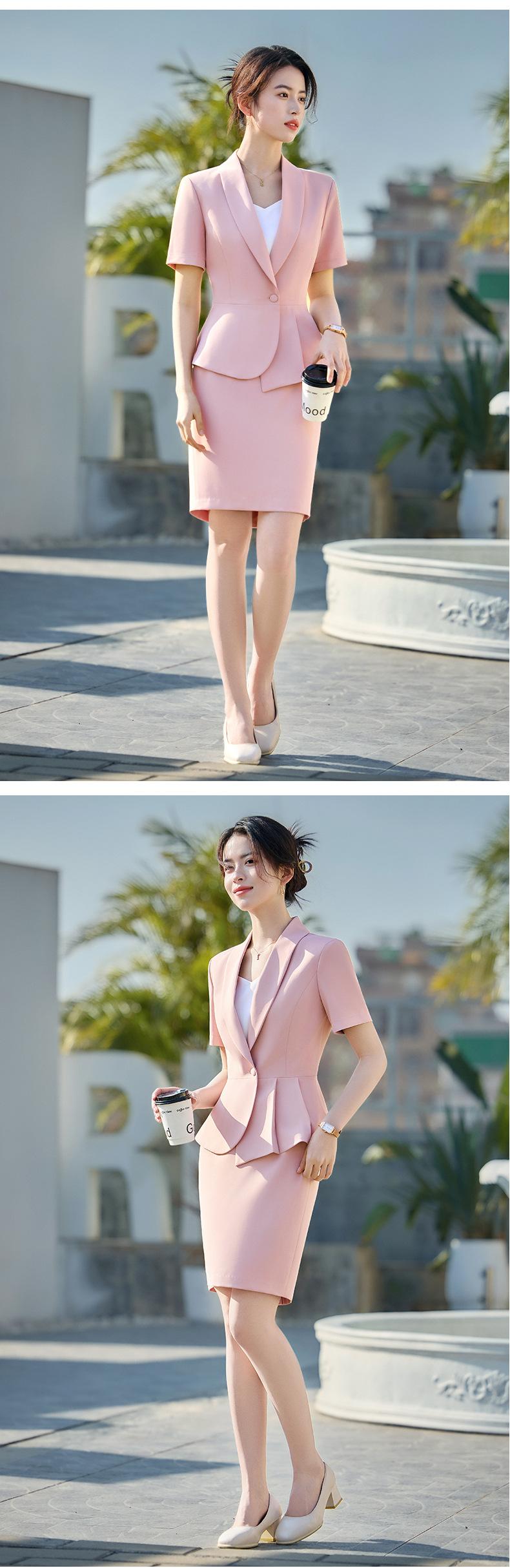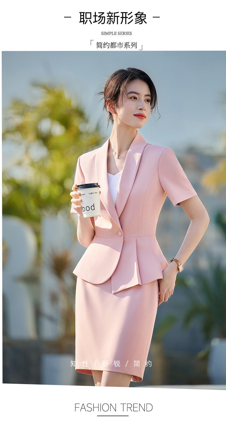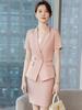 Chaqueta de traje pequeña de manga corta de verano profesional rosa para mujer, falda de verano, elegante y de moda, traje elegante de dos piezas para viajeros