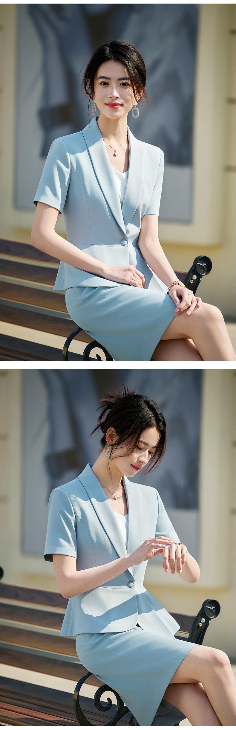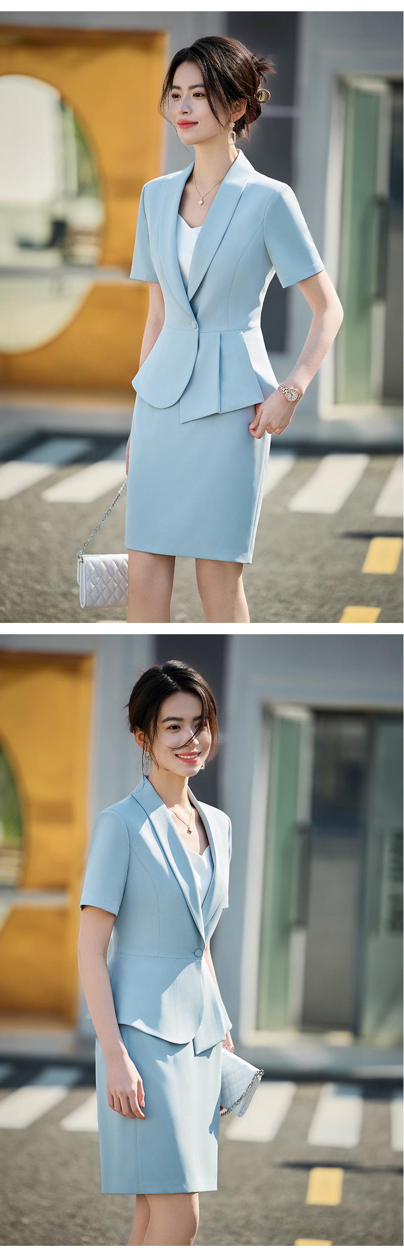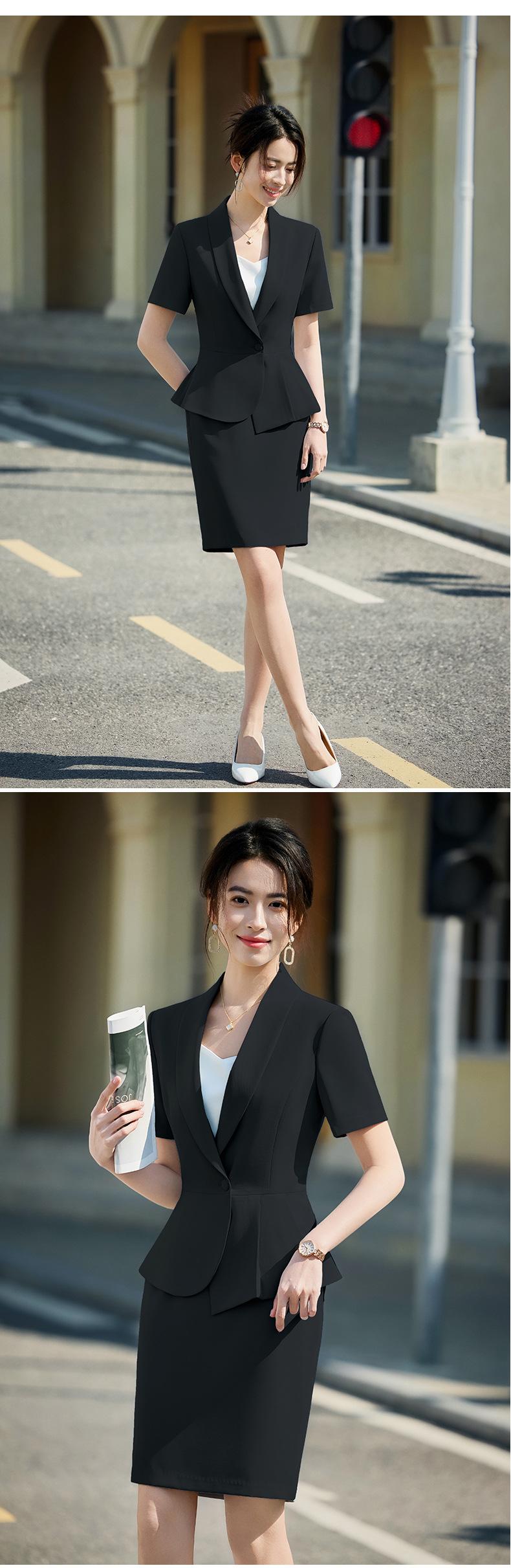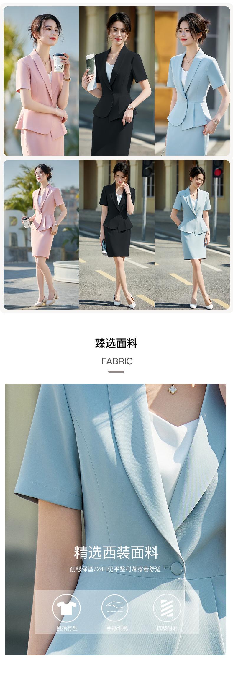 Chaqueta de traje pequeña de manga corta de verano profesional rosa para mujer, falda de verano, elegante y de moda, traje elegante de dos piezas para viajeros
