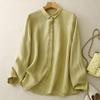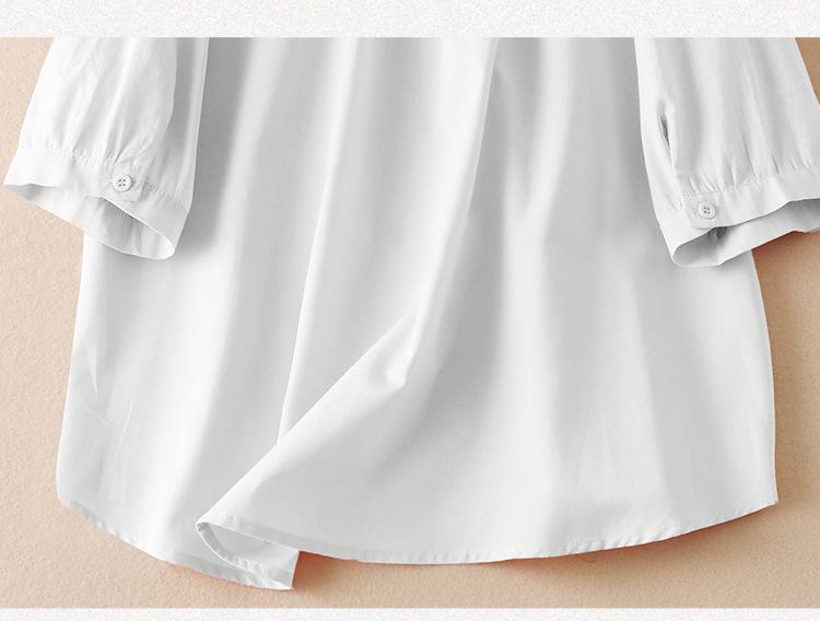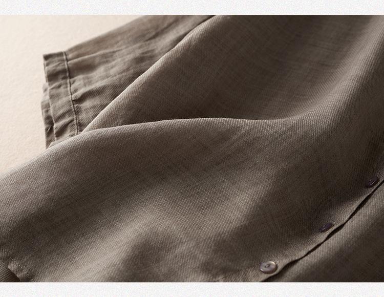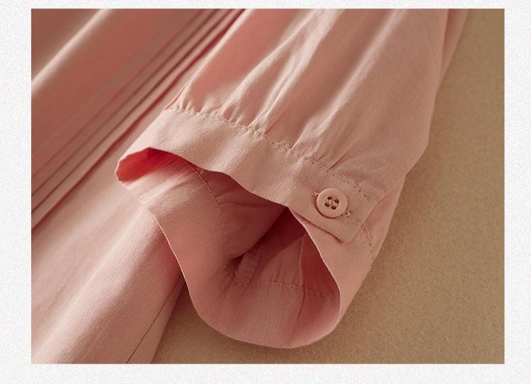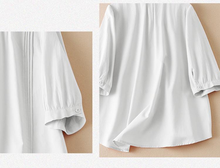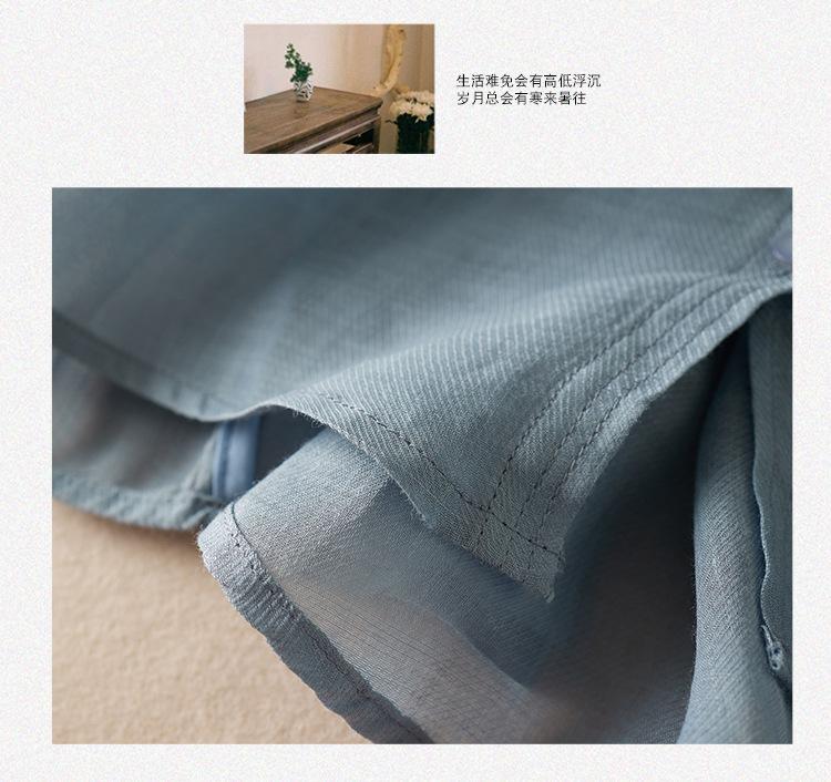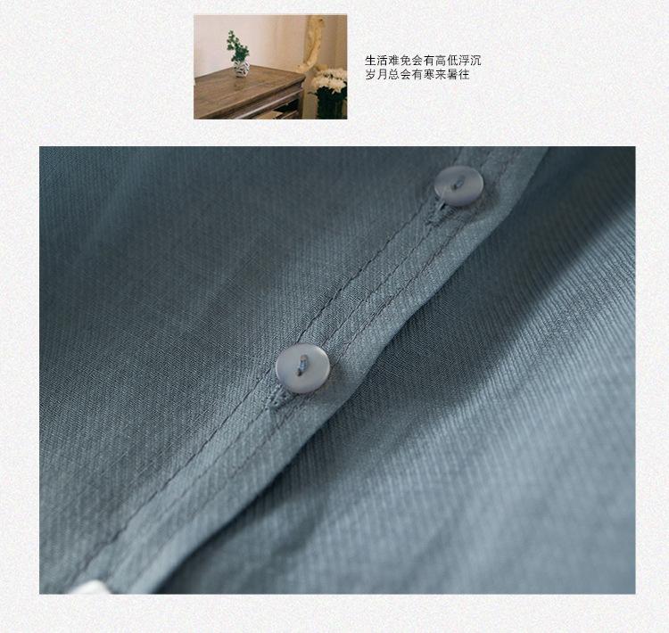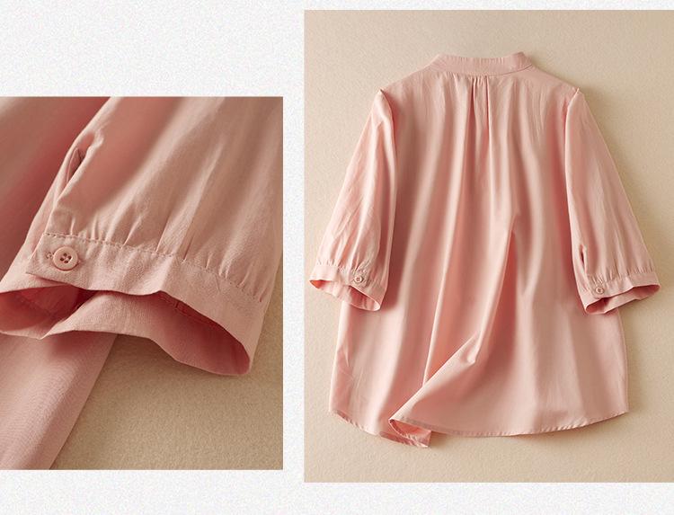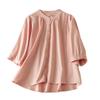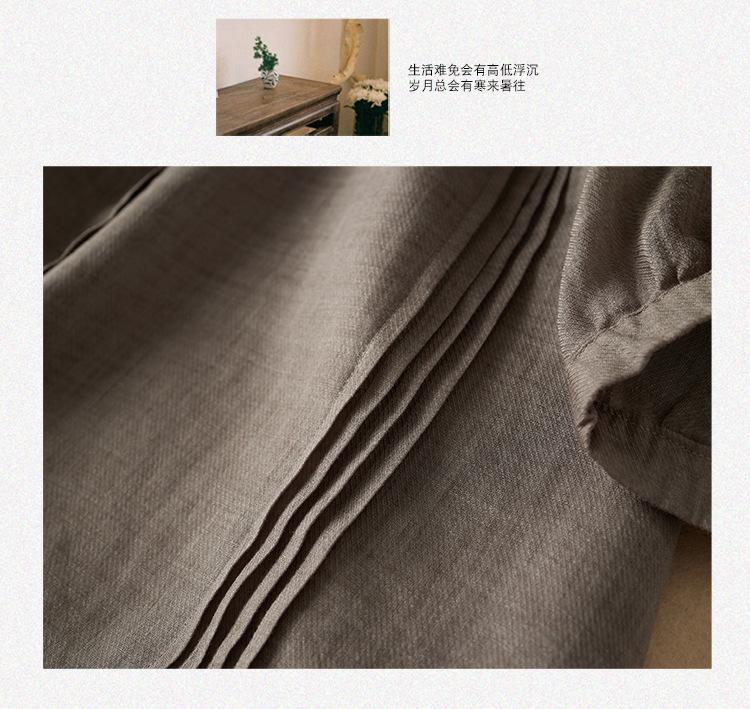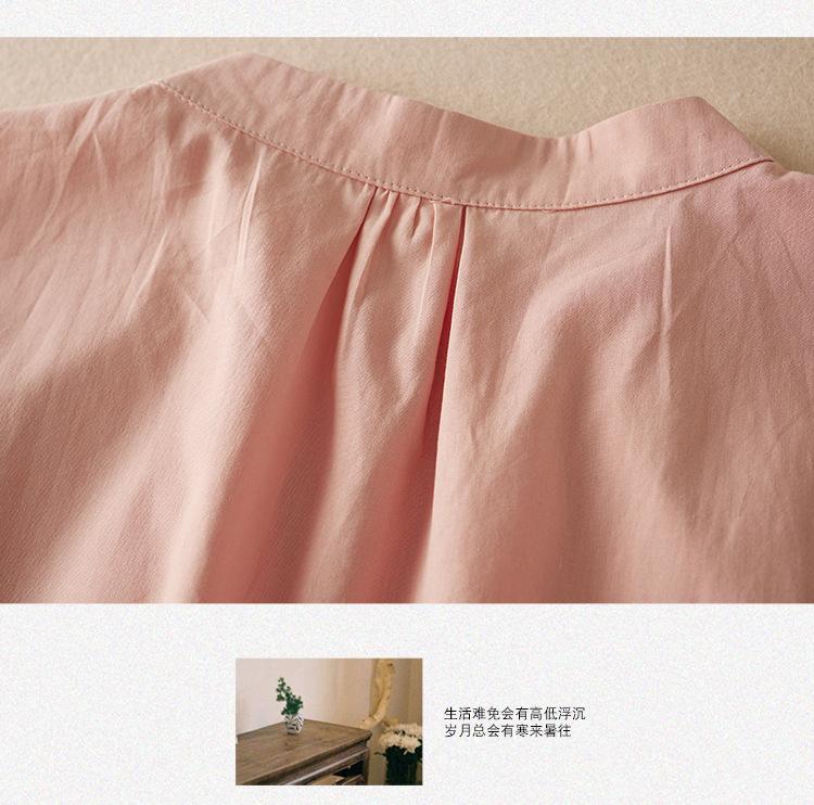 Foto real 2024 verano nuevo arte de algodón y lino suelto cuello alto plisado de órgano camisa top mujer #7178