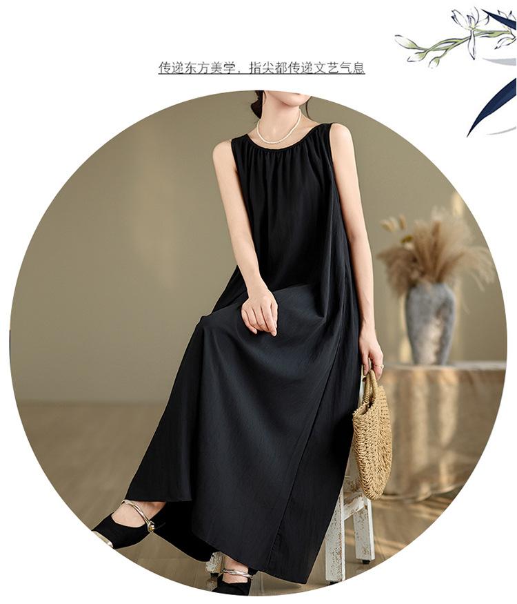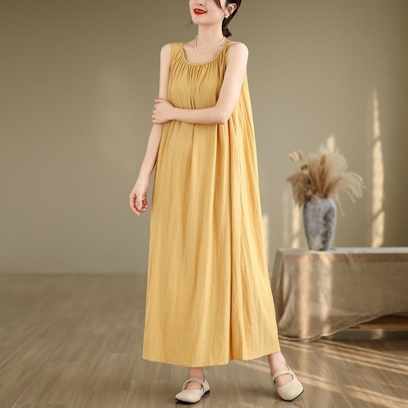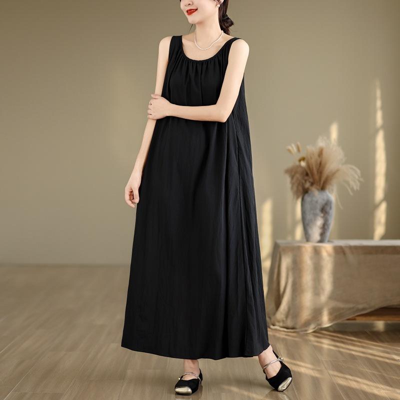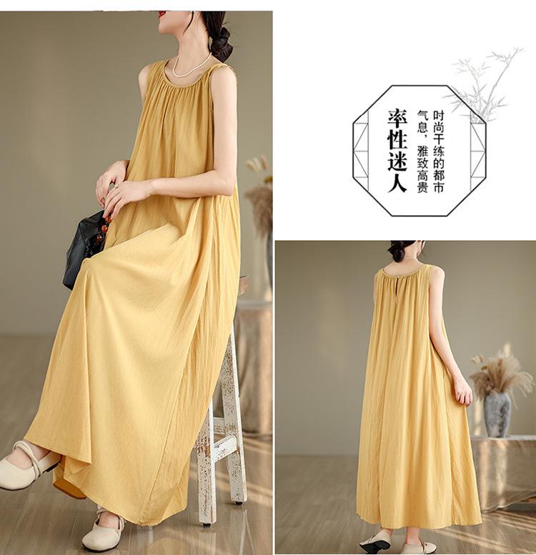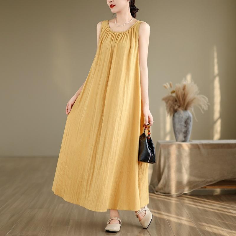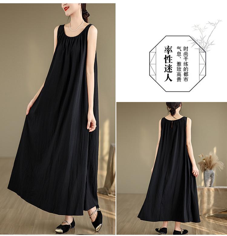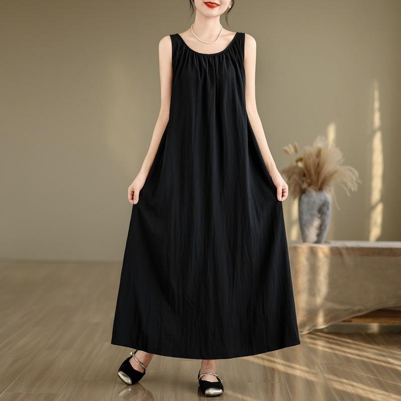 2024 Verano Nueva Serie Libre Falda Suelta Minimalista Sin Mangas Vestido de Longitud Media Mujer