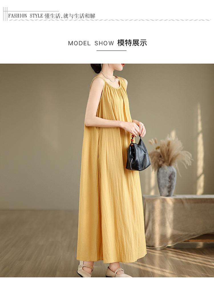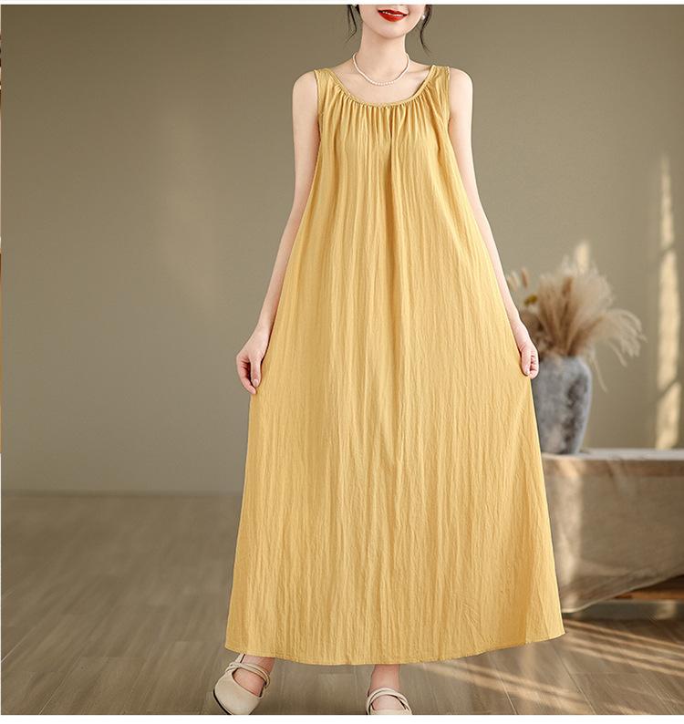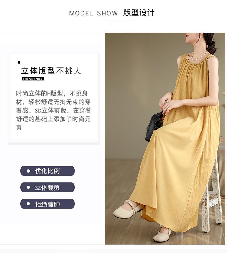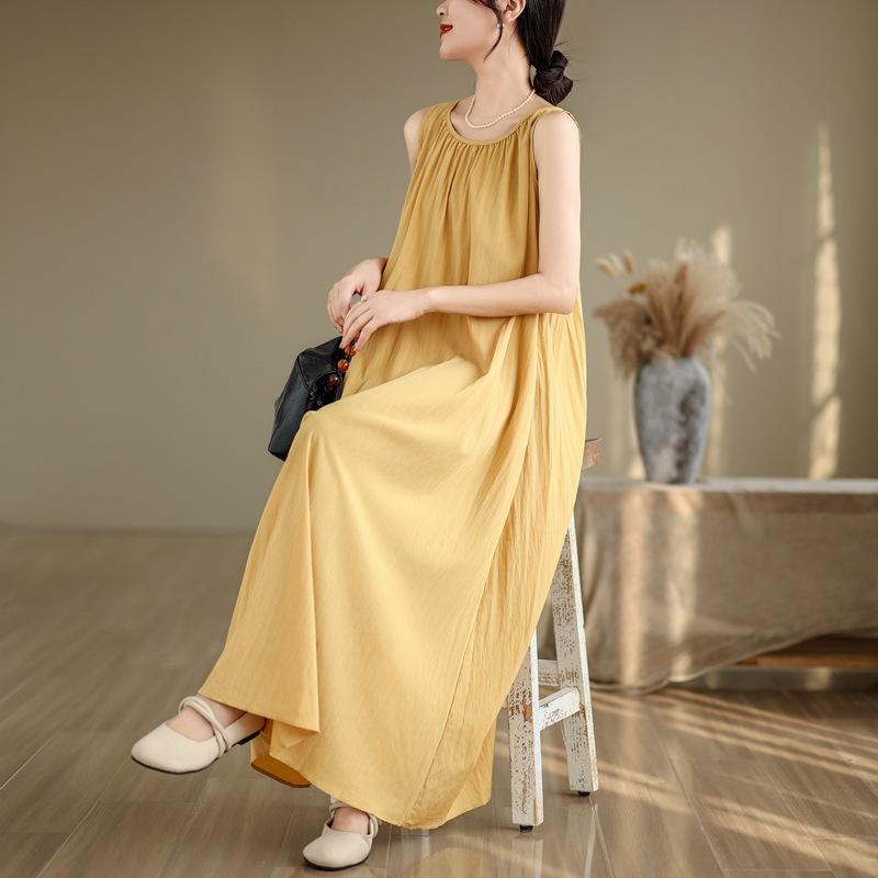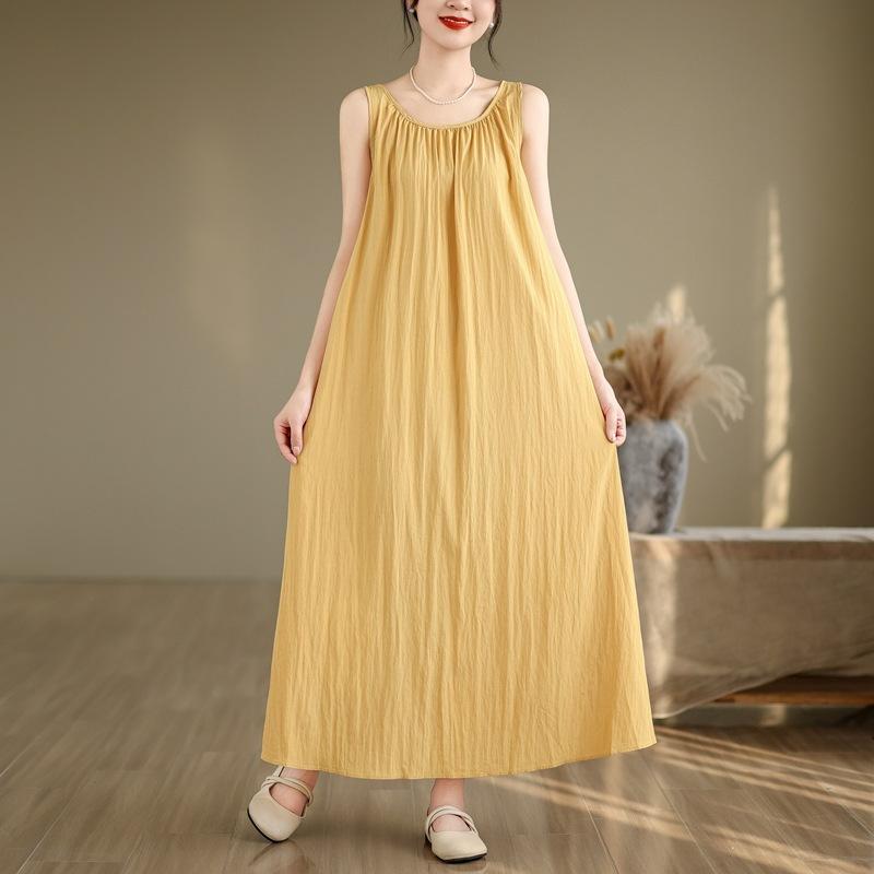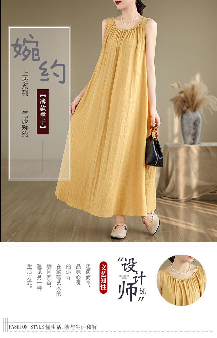 2024 Verano Nueva Serie Libre Falda Suelta Minimalista Sin Mangas Vestido de Longitud Media Mujer
