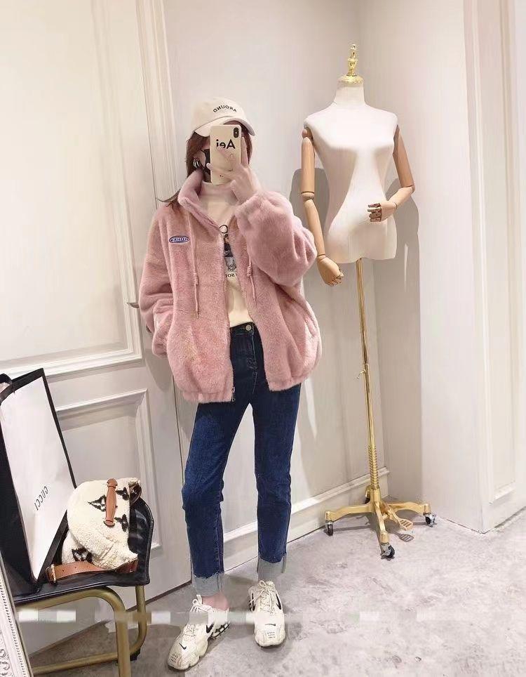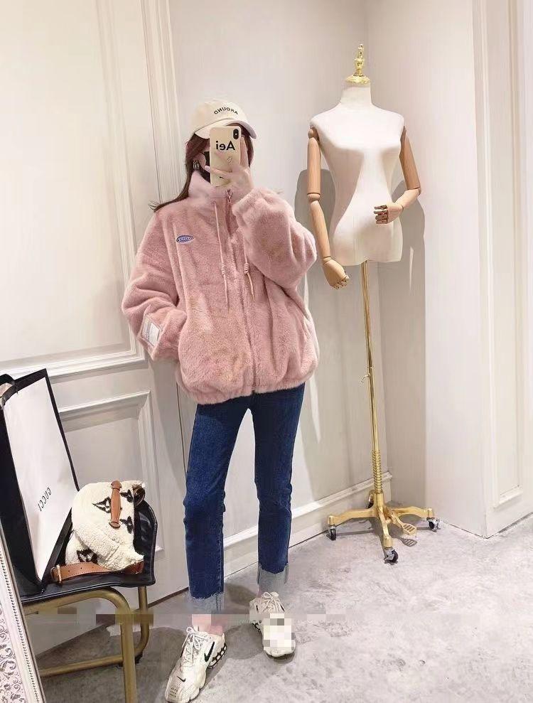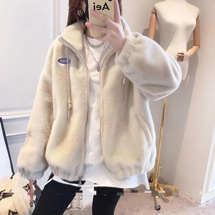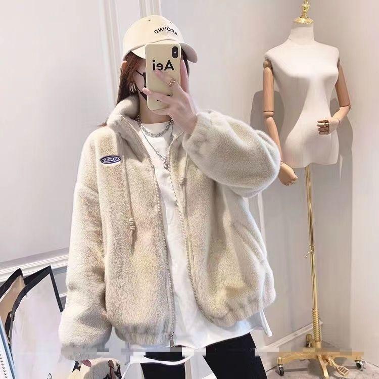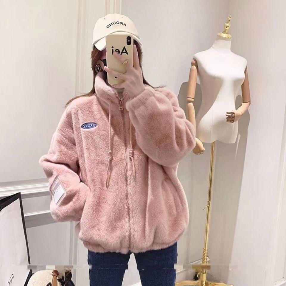 Abrigo de piel sintética transfronterizo para mujer, largo medio, invierno 2024, nuevo, imitación de visón, cuello de felpa, tendencia de piel de visón sintética