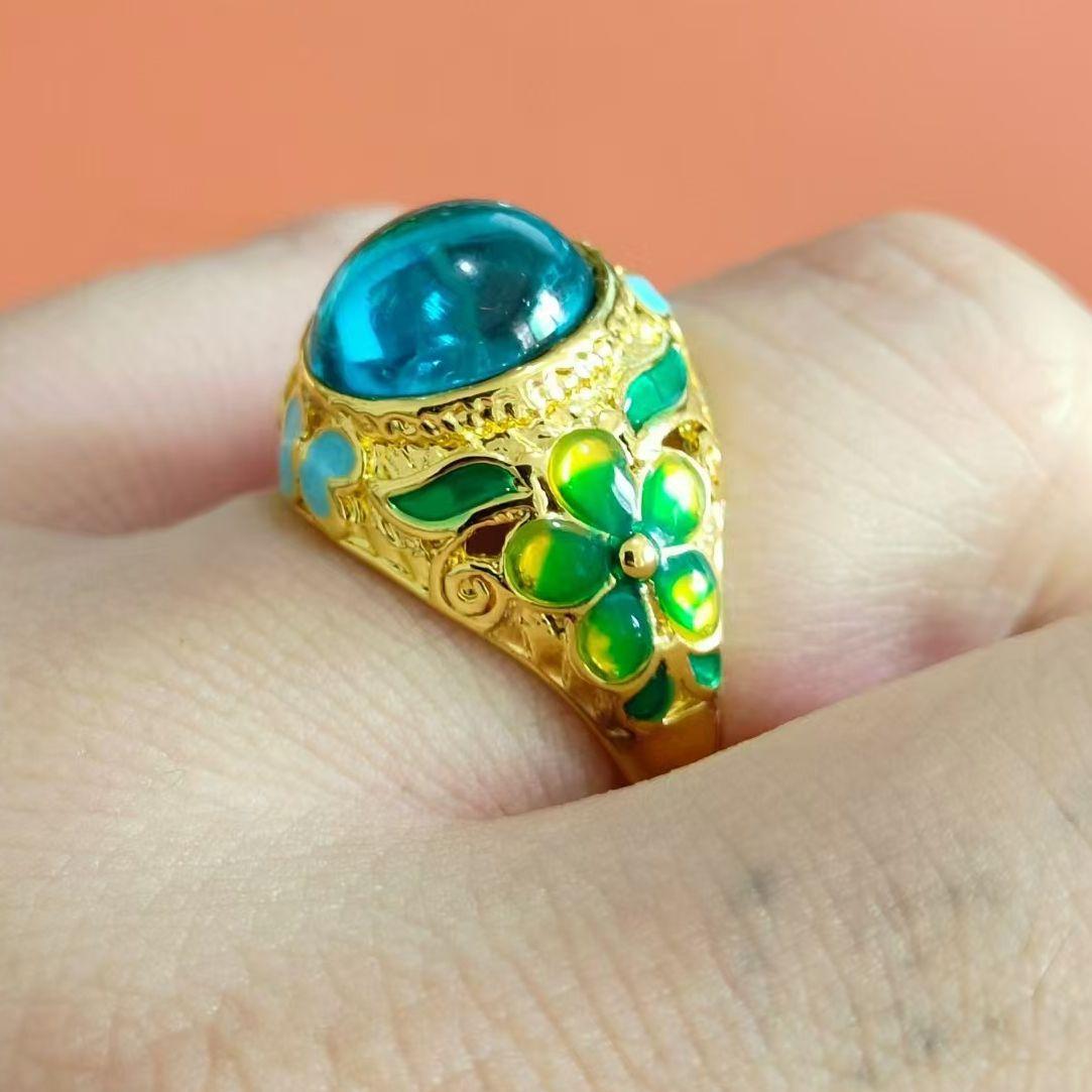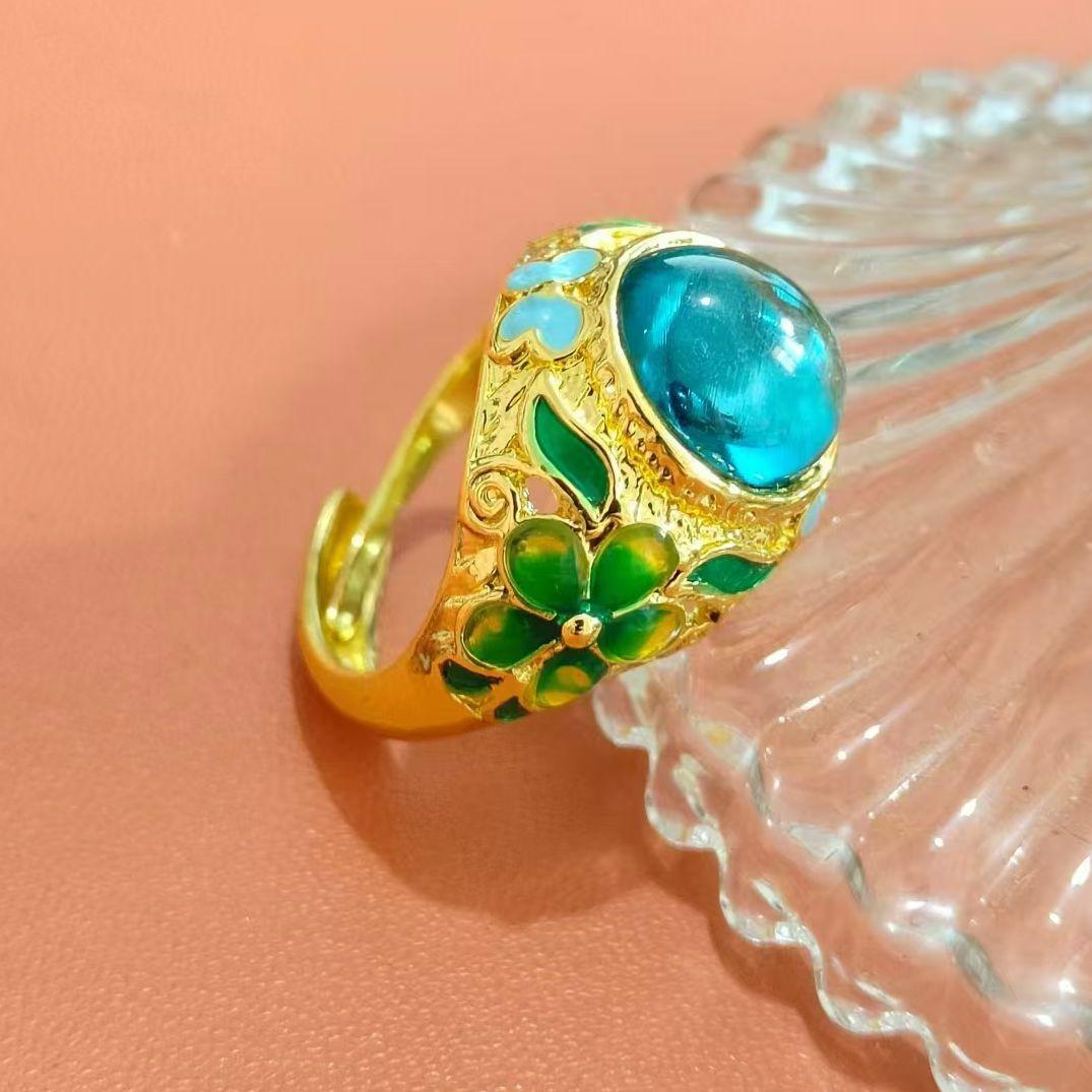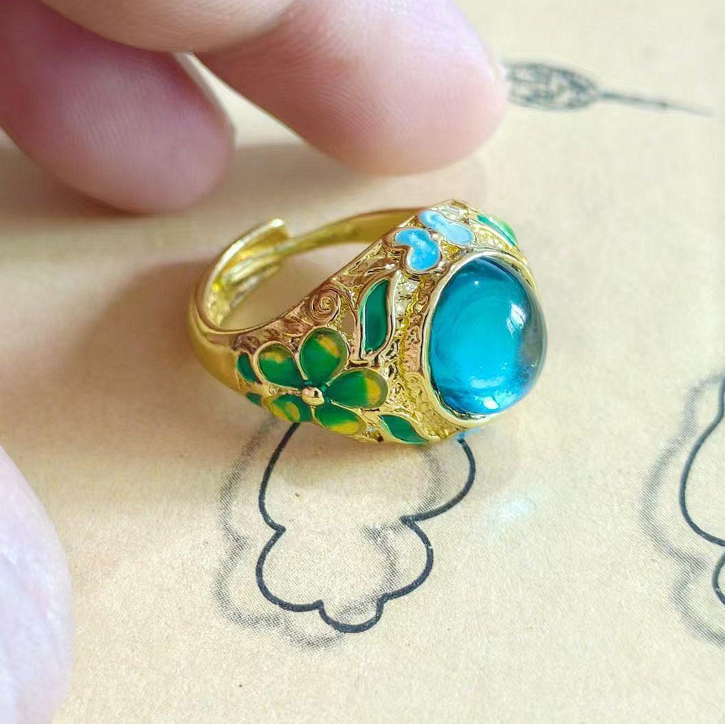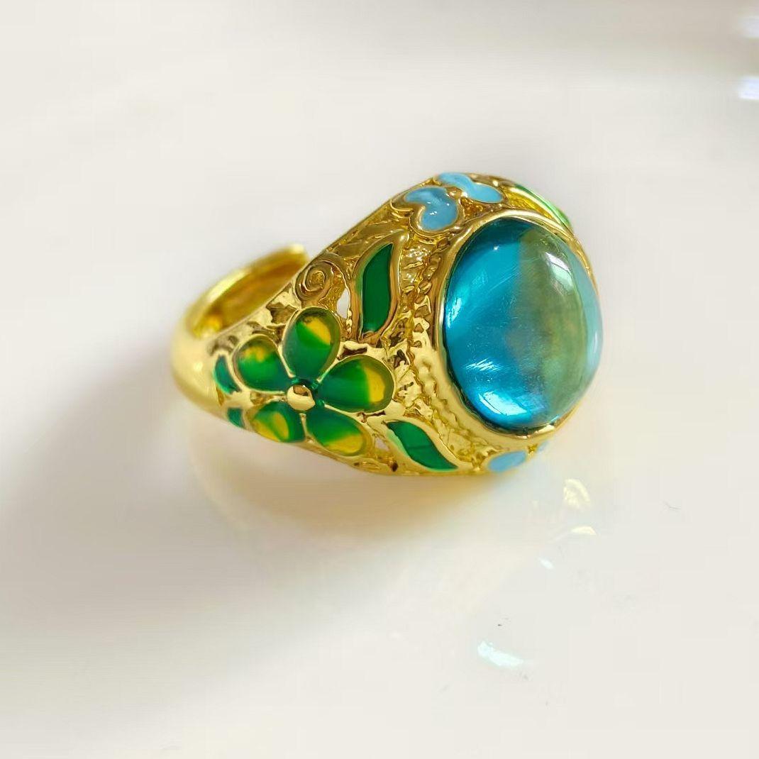 Nuevo Vietnam Oro Arena Mariposa Antigua Amor Flor Elegante Retro Anillo de Dedo de Palacio para Mujer Dorado Elegante Color Esmalte de Alta Gama