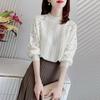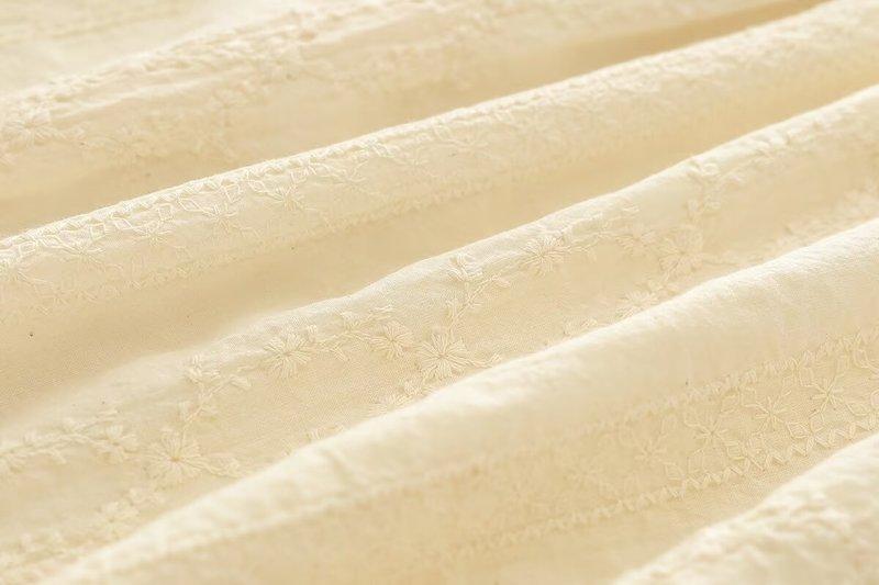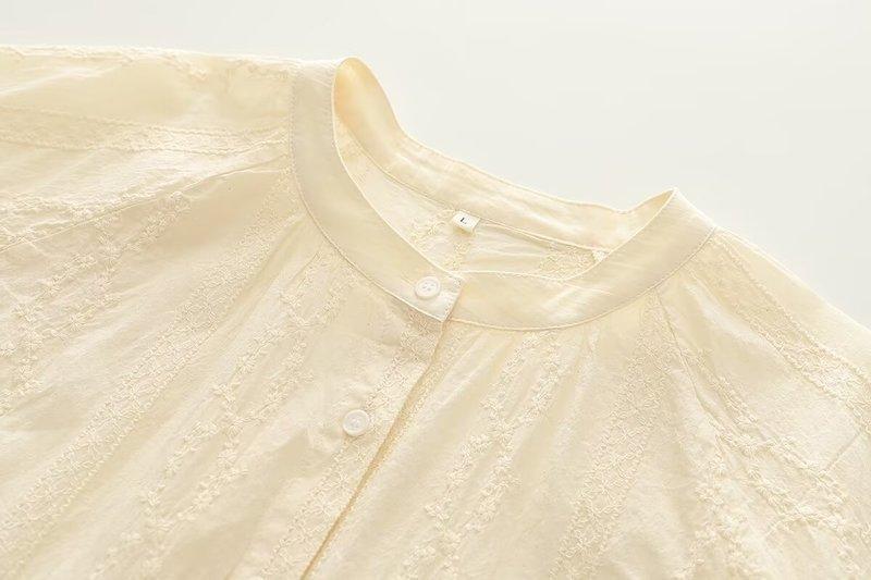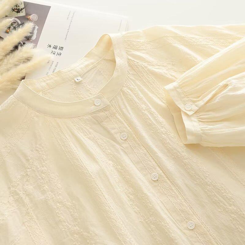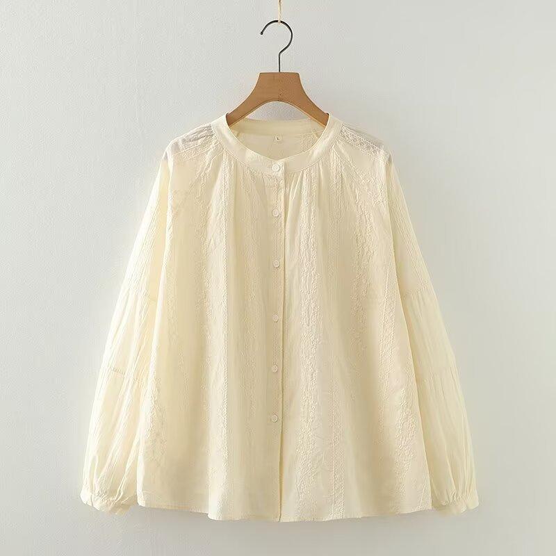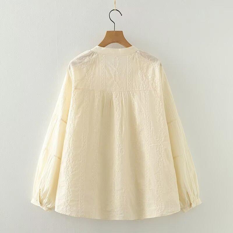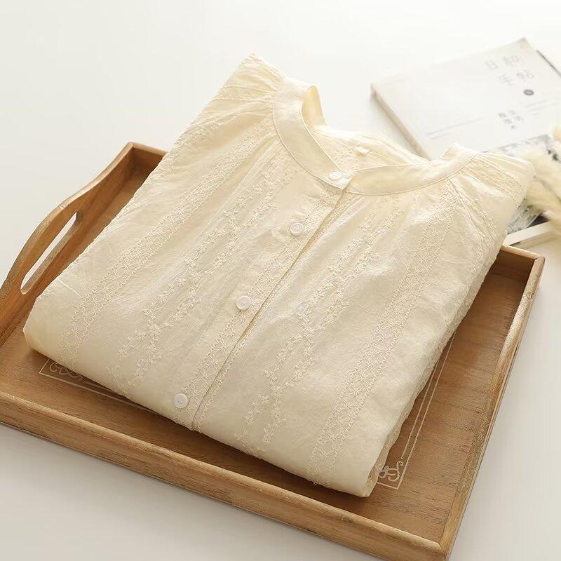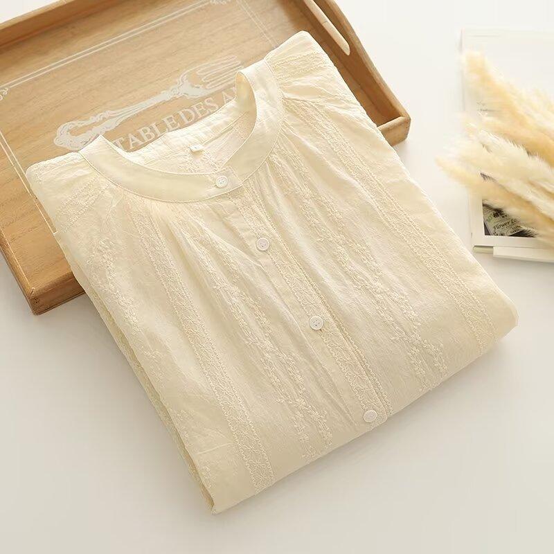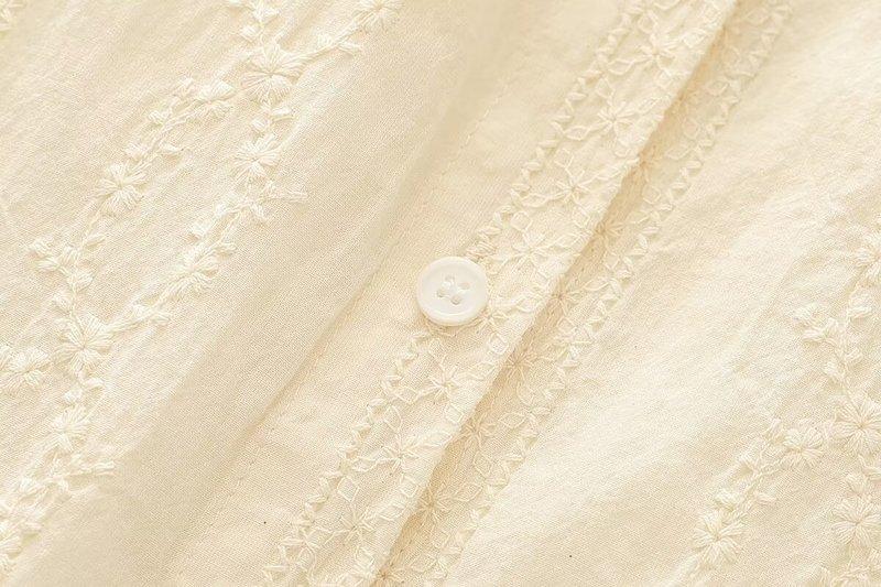 Camisa tipo cárdigan de manga larga con cuello redondo beige bordado para mujer, otoño 2024, venta al por mayor