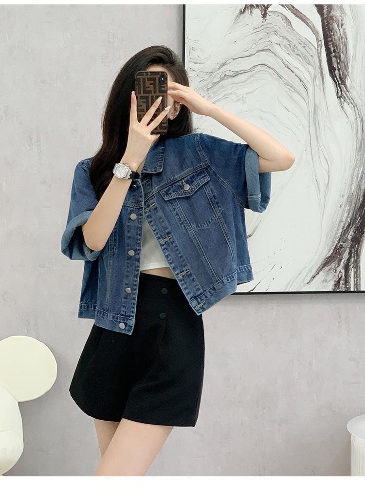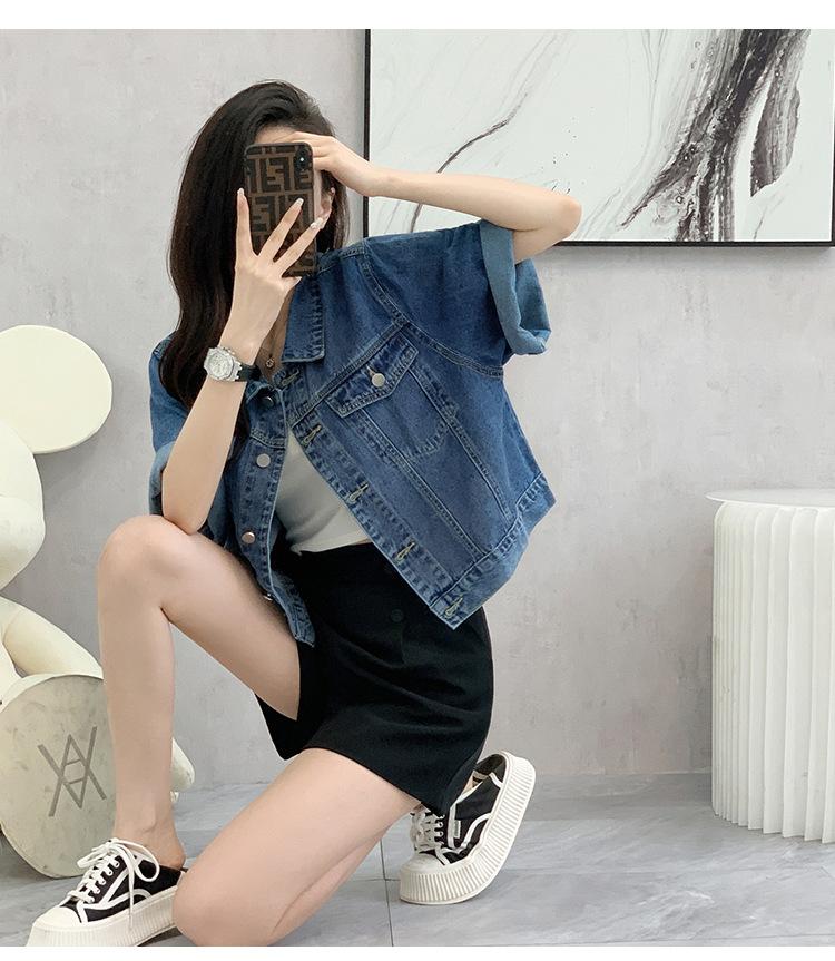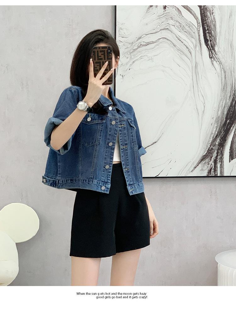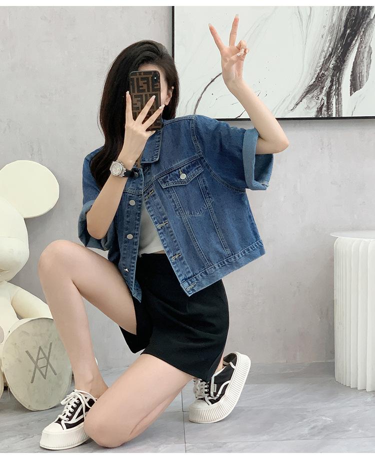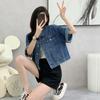 Primavera y Verano 2025 Nueva Chaqueta de Mezclilla para Mujer Diseño Nicho Ins Suelta Manga Corta Top Mezclilla Suave