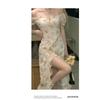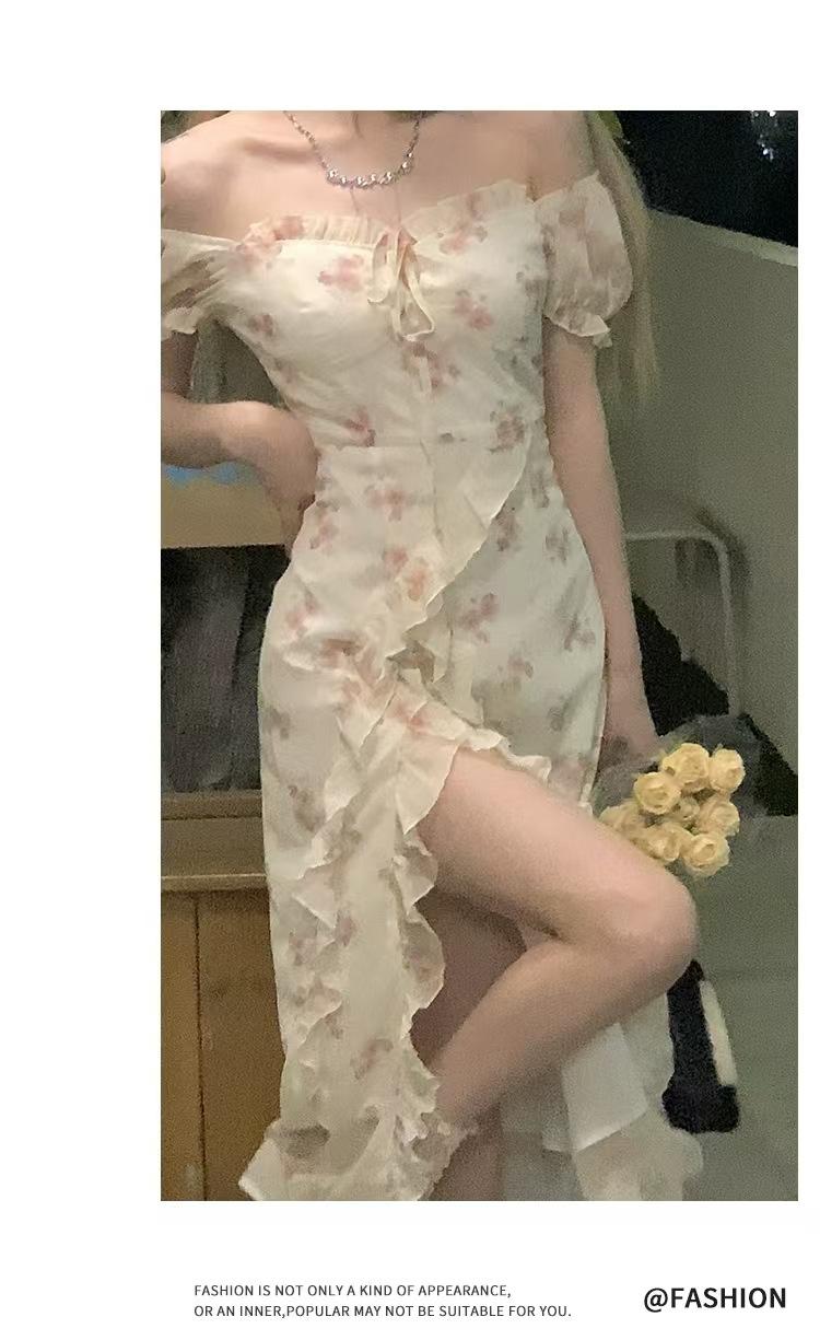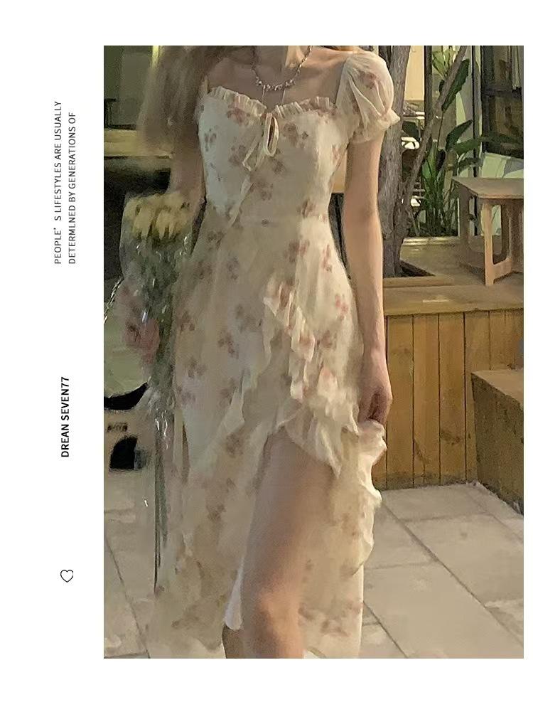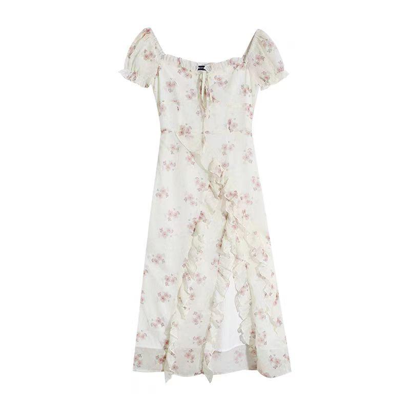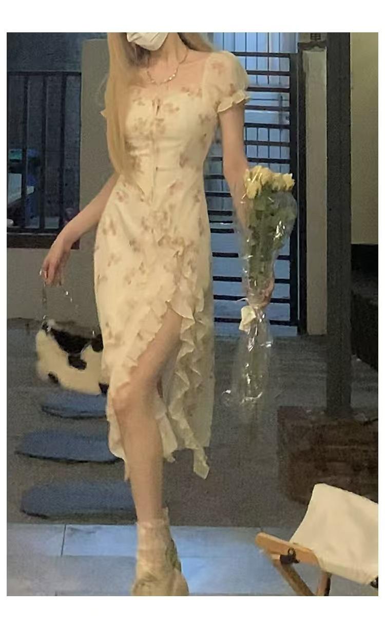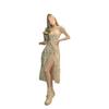 Vestido floral con tirantes, primavera 2025, nuevo vestido con volantes y abertura.
