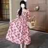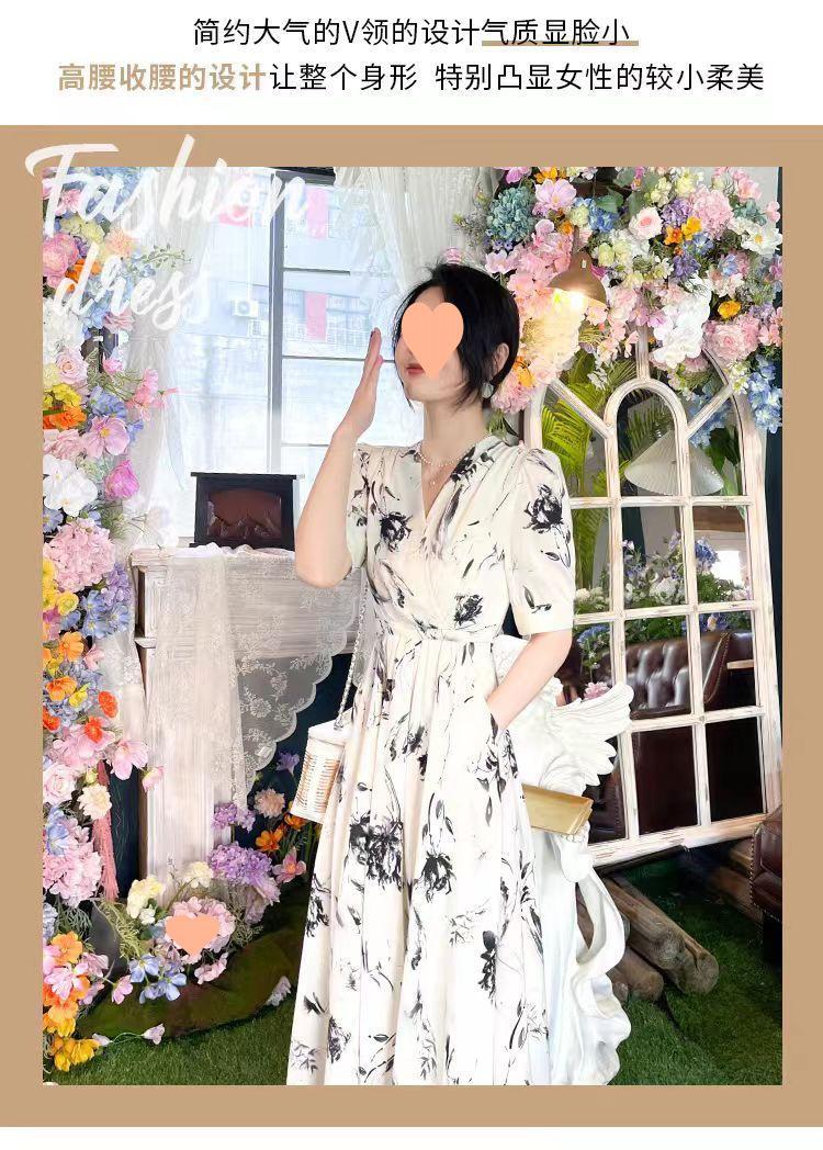 Vestido Floral Blanco para Mujer 2025 Verano Nuevo Estilo Elegante Cintura Ajustada Exquisito Estilo Francés Hora del Té Vestido Corto