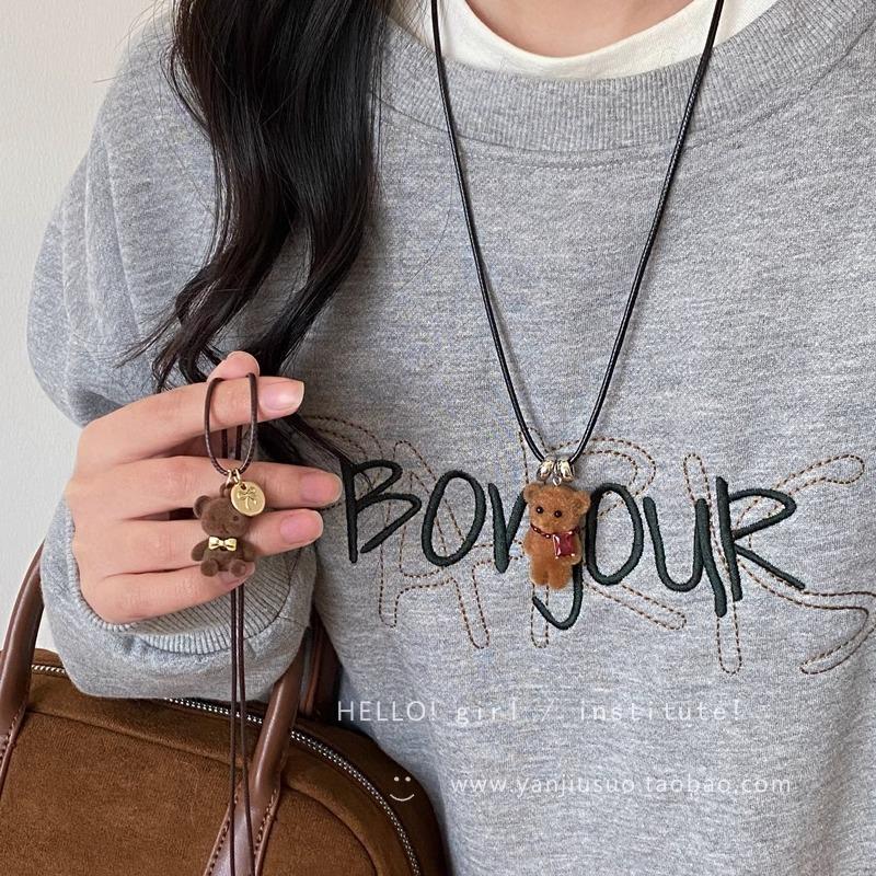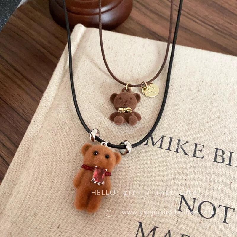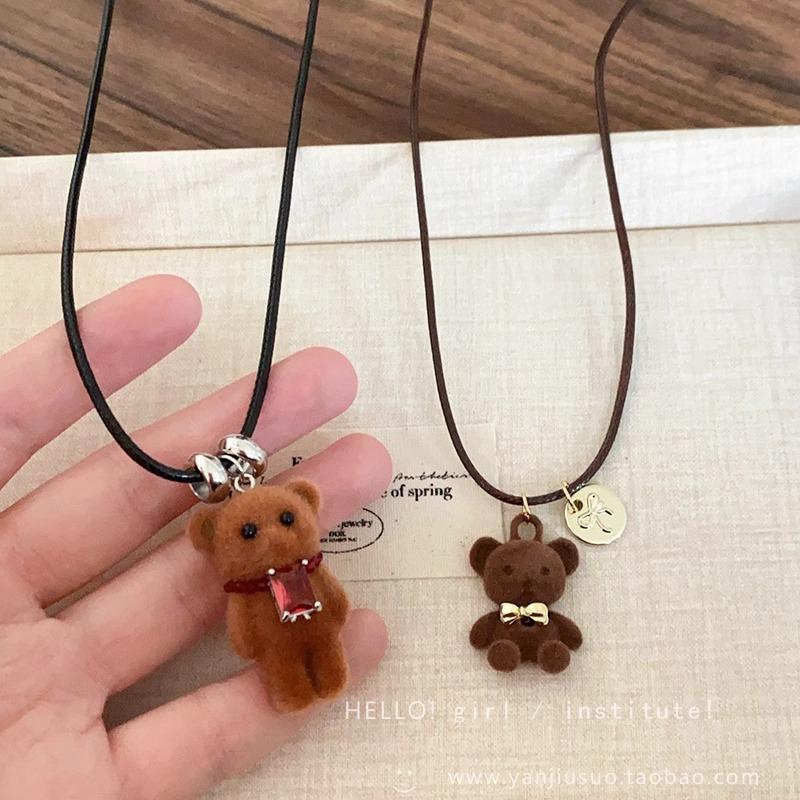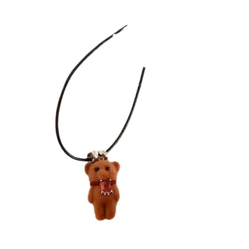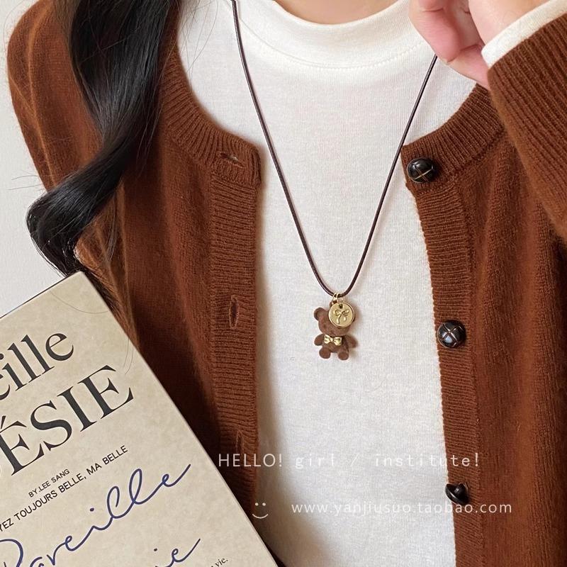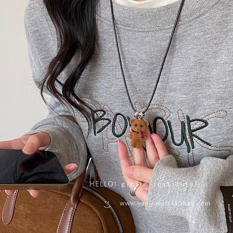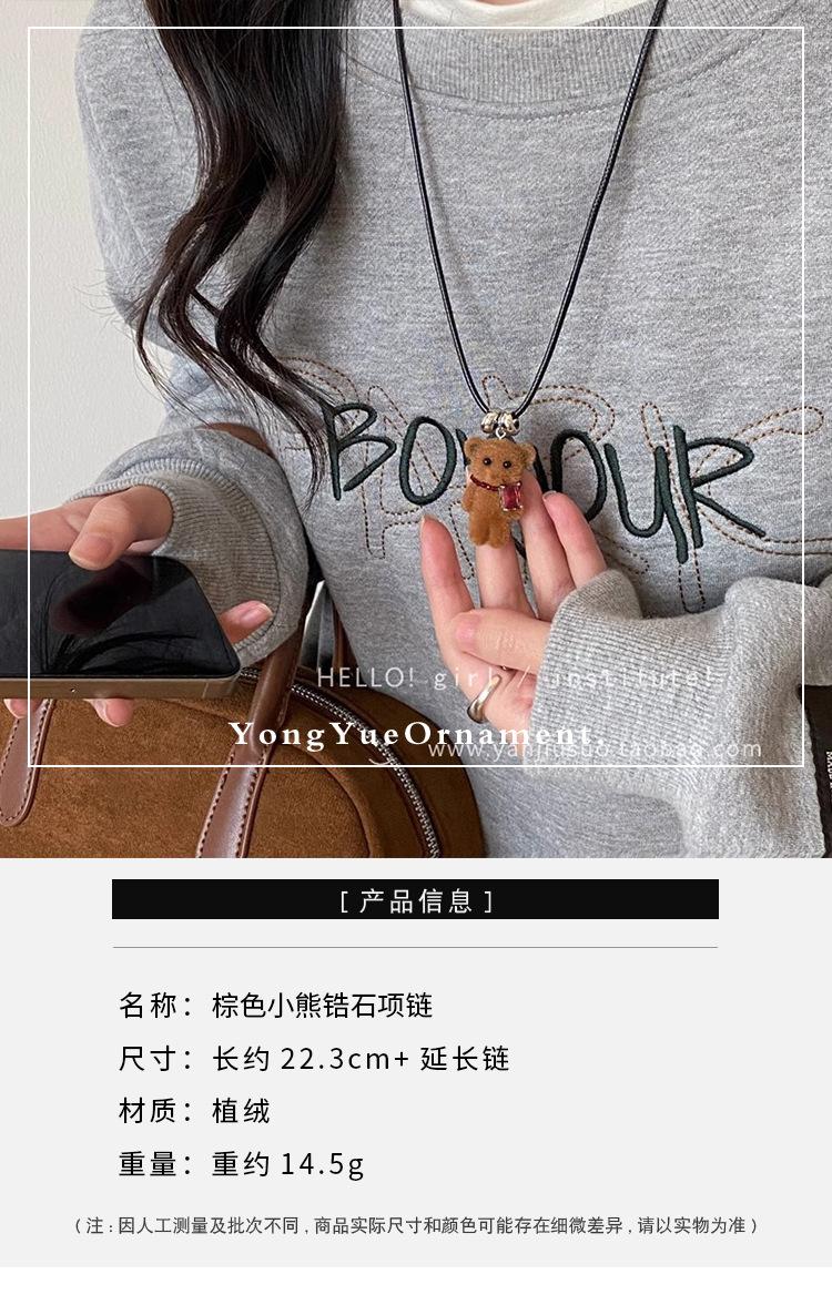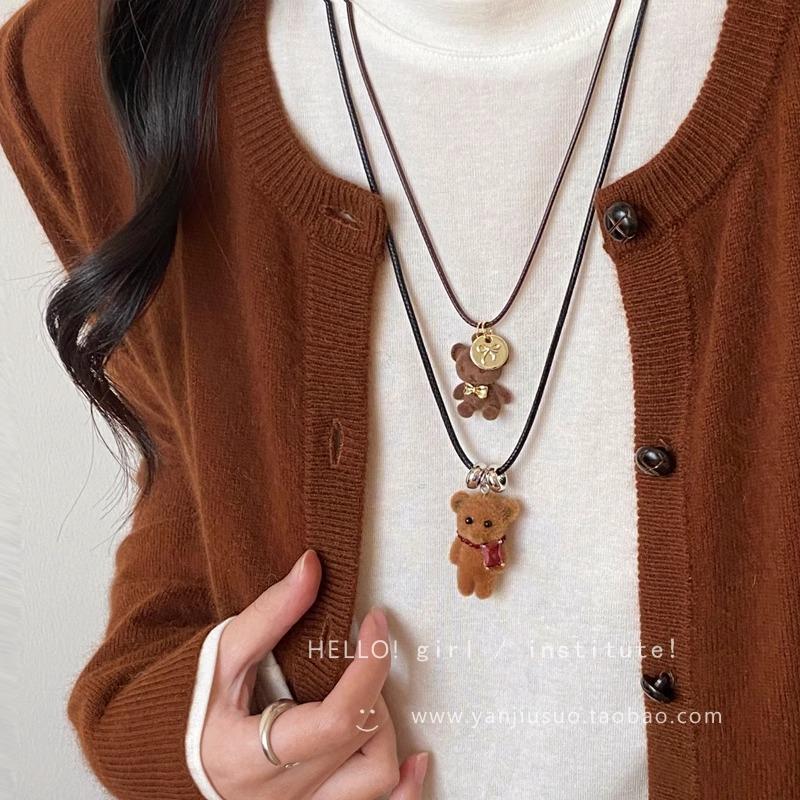 Bonito collar de oso de peluche marrón para niñas, otoño e invierno 2025, nuevo, cadena de sudor combinable, divertido accesorio para fiestas de estudiantes.