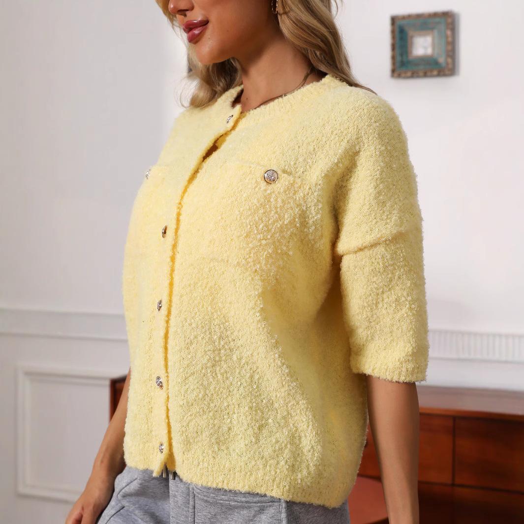 Cárdigan de Punto para Mujer Europeo y Americano Amazon Cárdigan de Manga Tres Cuartos para Mujer Suéter Casual de Color Sólido Casual y Versátil
