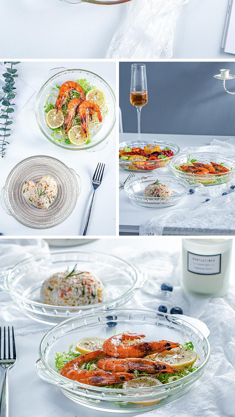 Plato de Vidrio Resistente a Altas Temperaturas Plato Transparente Plato para Cena Plato para Cena Hogar Horno Microondas Plato para Hornear Binaural Plato para Pescado al Vapor